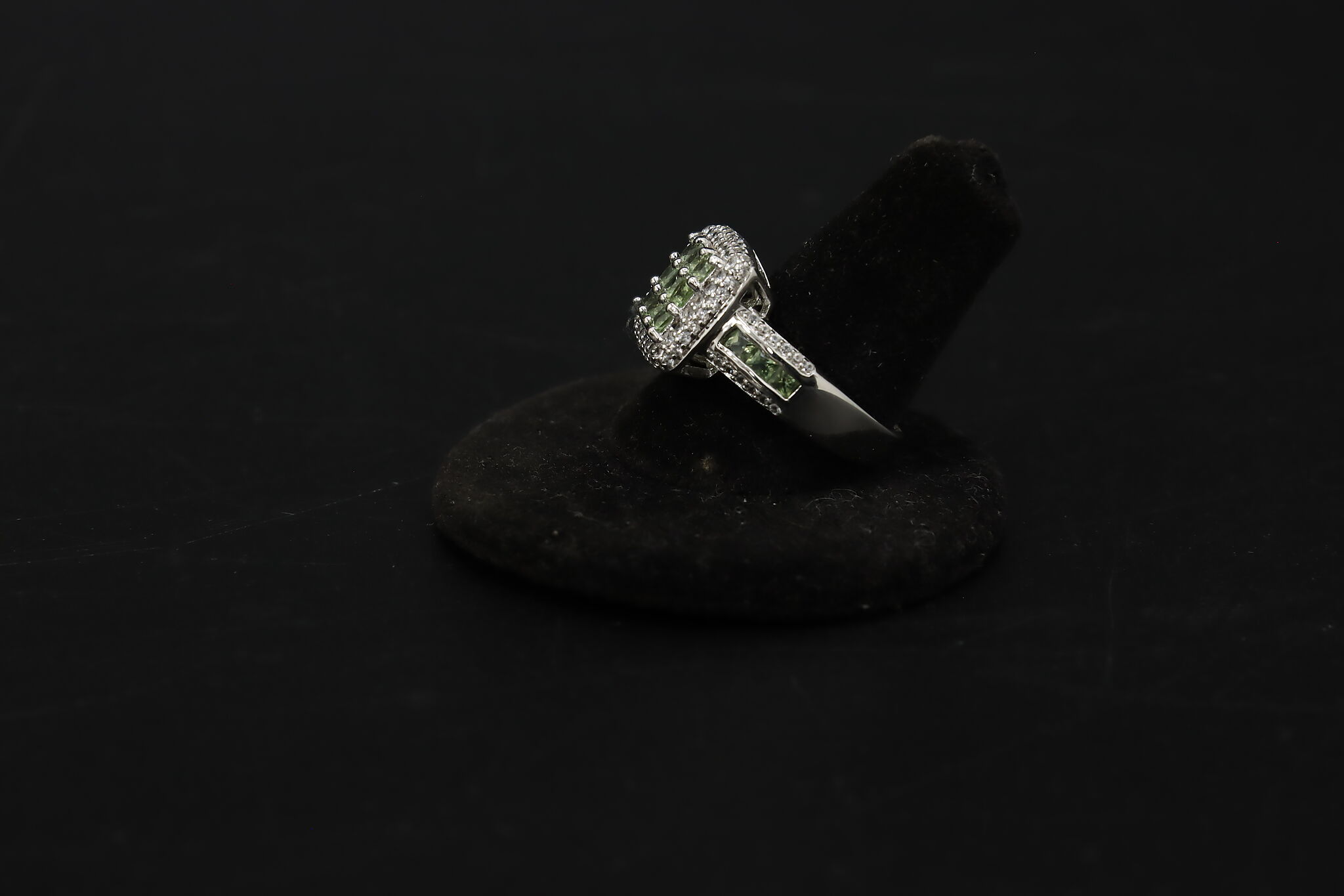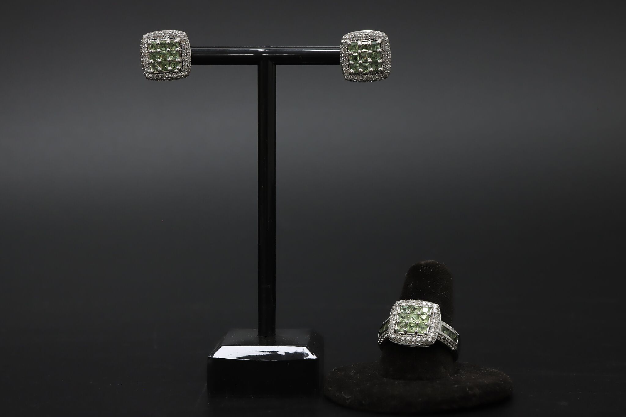The beautiful prasiolite gemstones on this three piece set is wonderful for a lady who loves green!