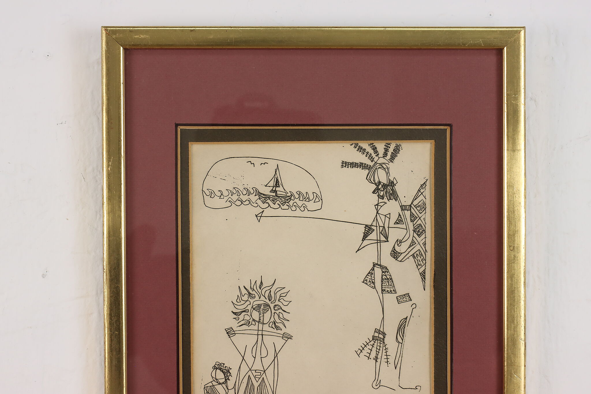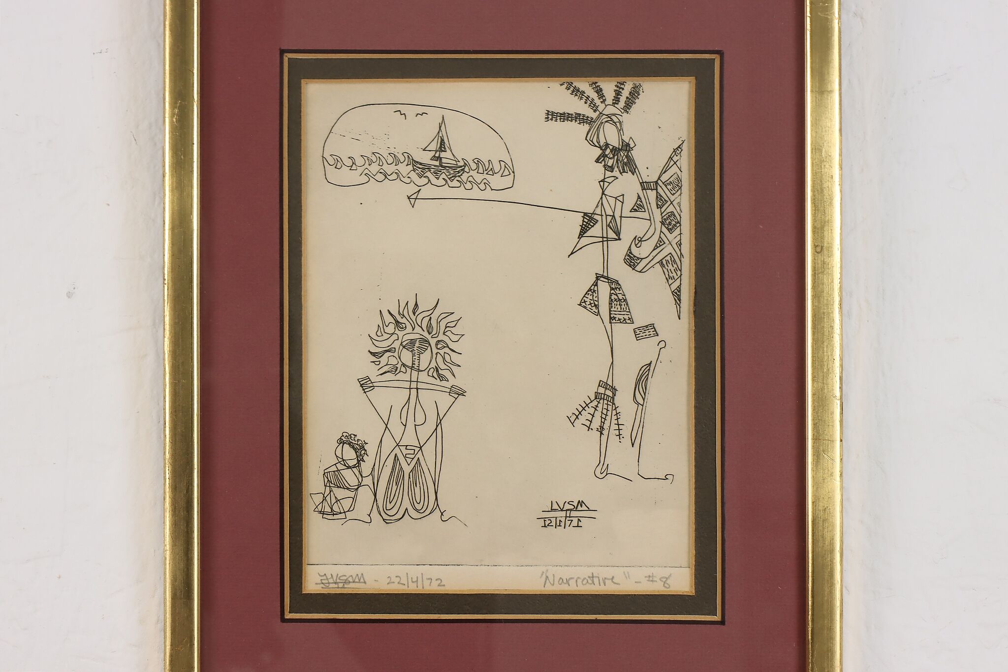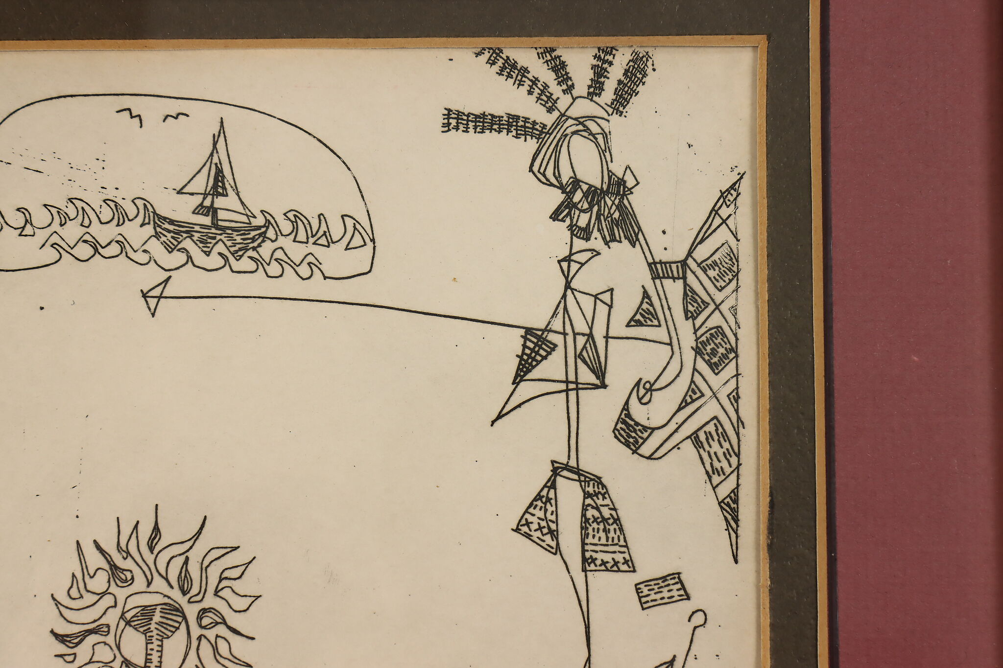 The artist of this abstract island life drawing has a unique approach to her art and experiments with different mediums in her Montana home.