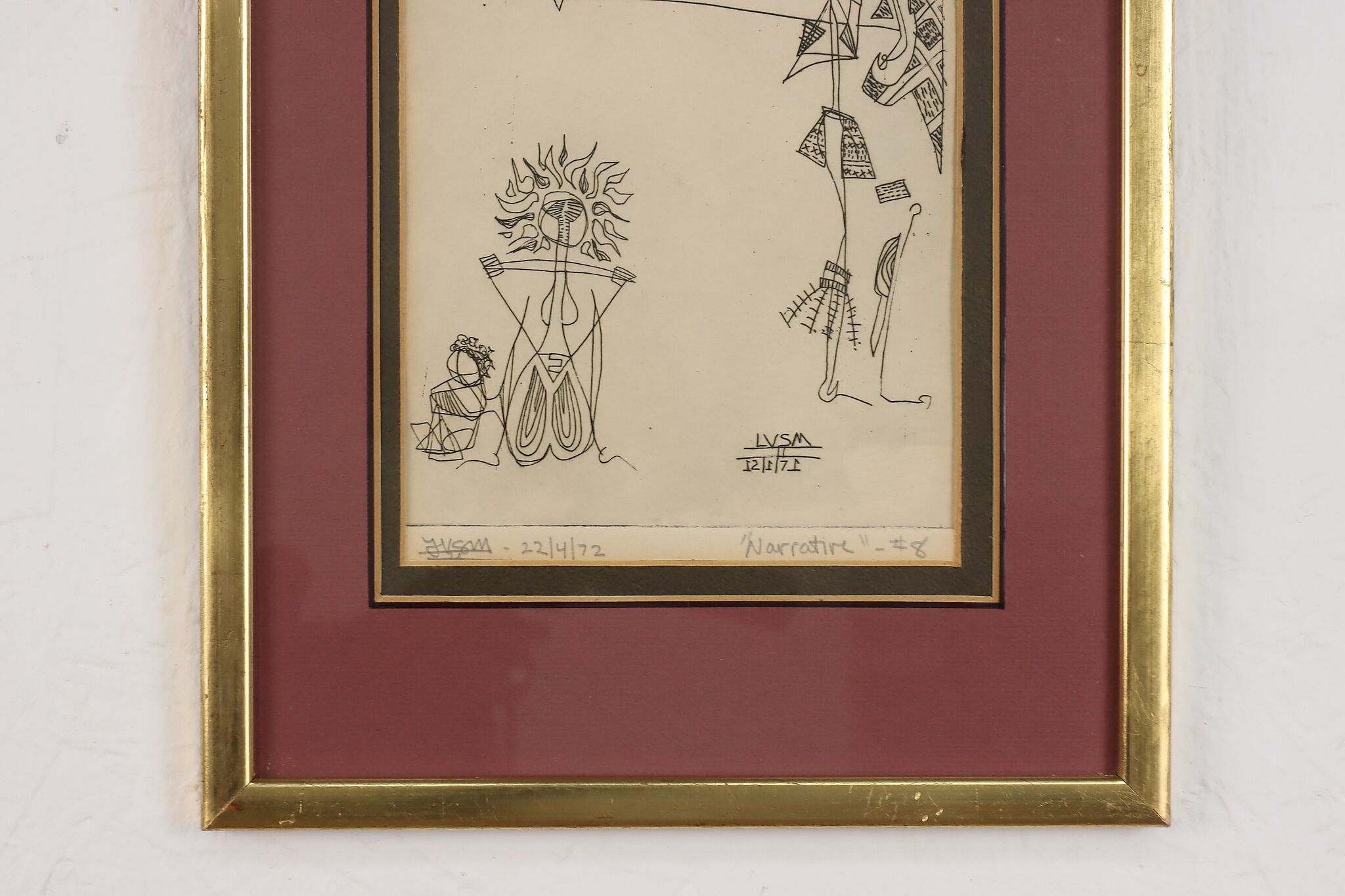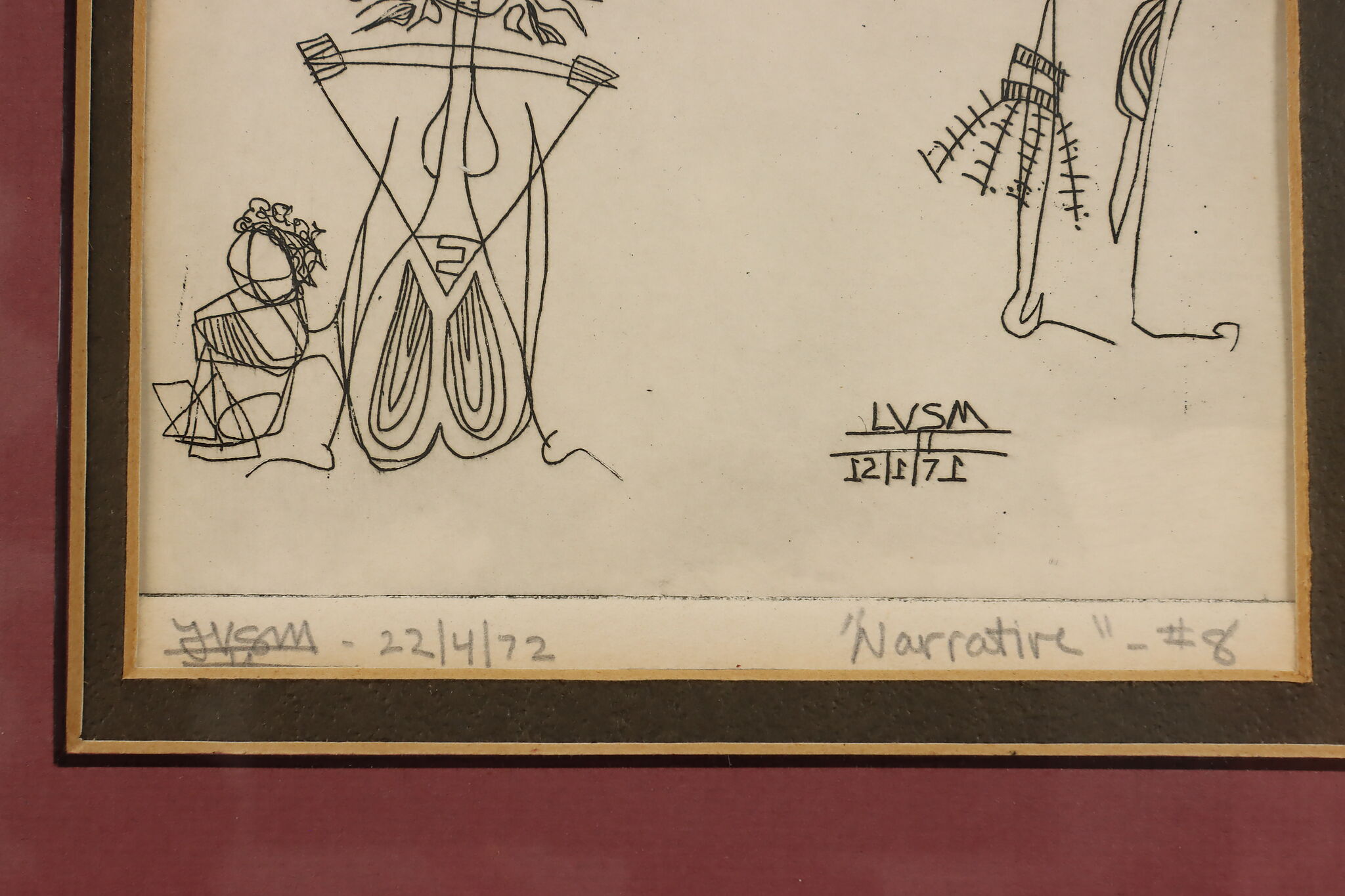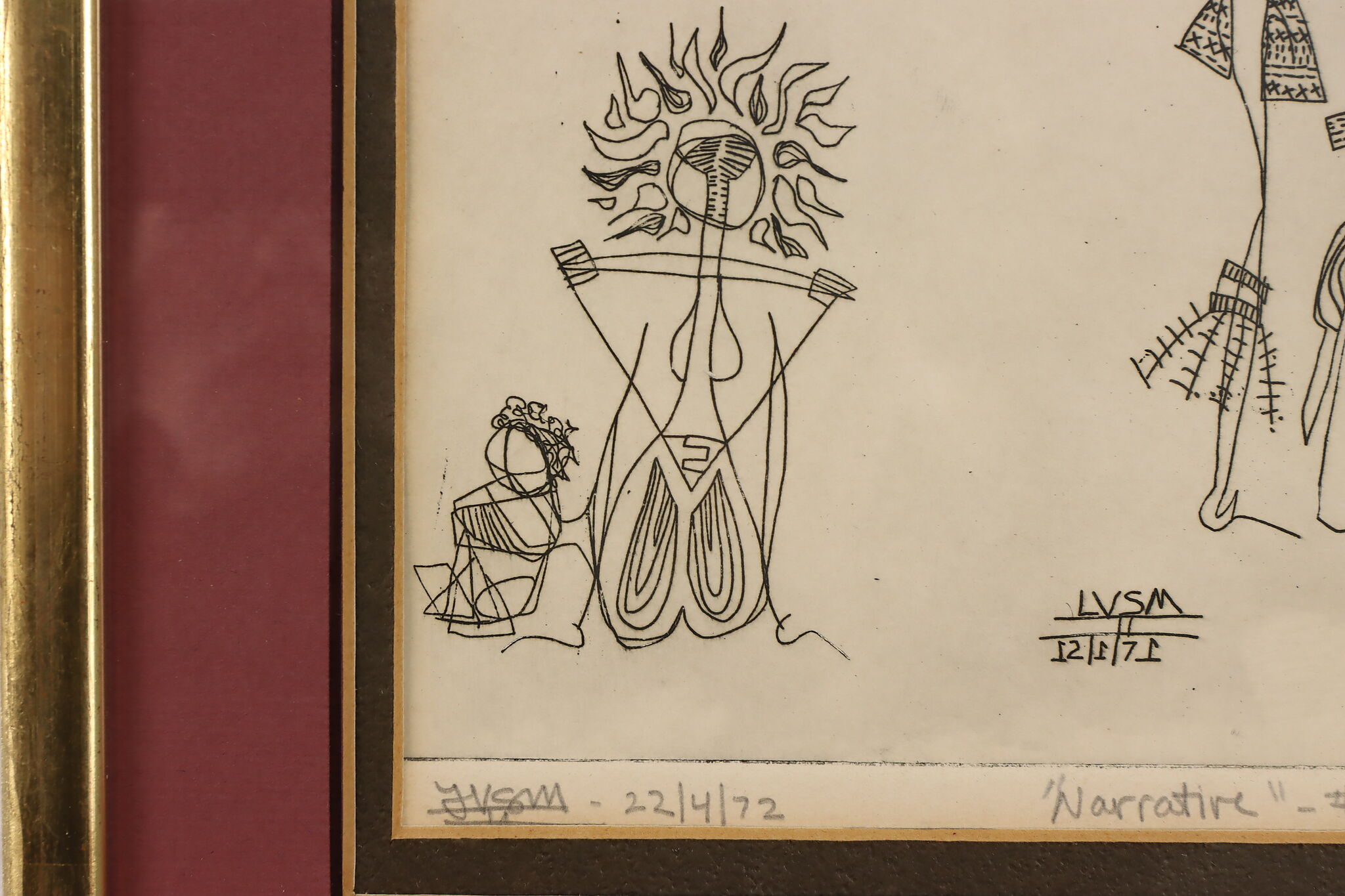 The artist of this abstract island life drawing has a unique approach to her art and experiments with different mediums in her Montana home.