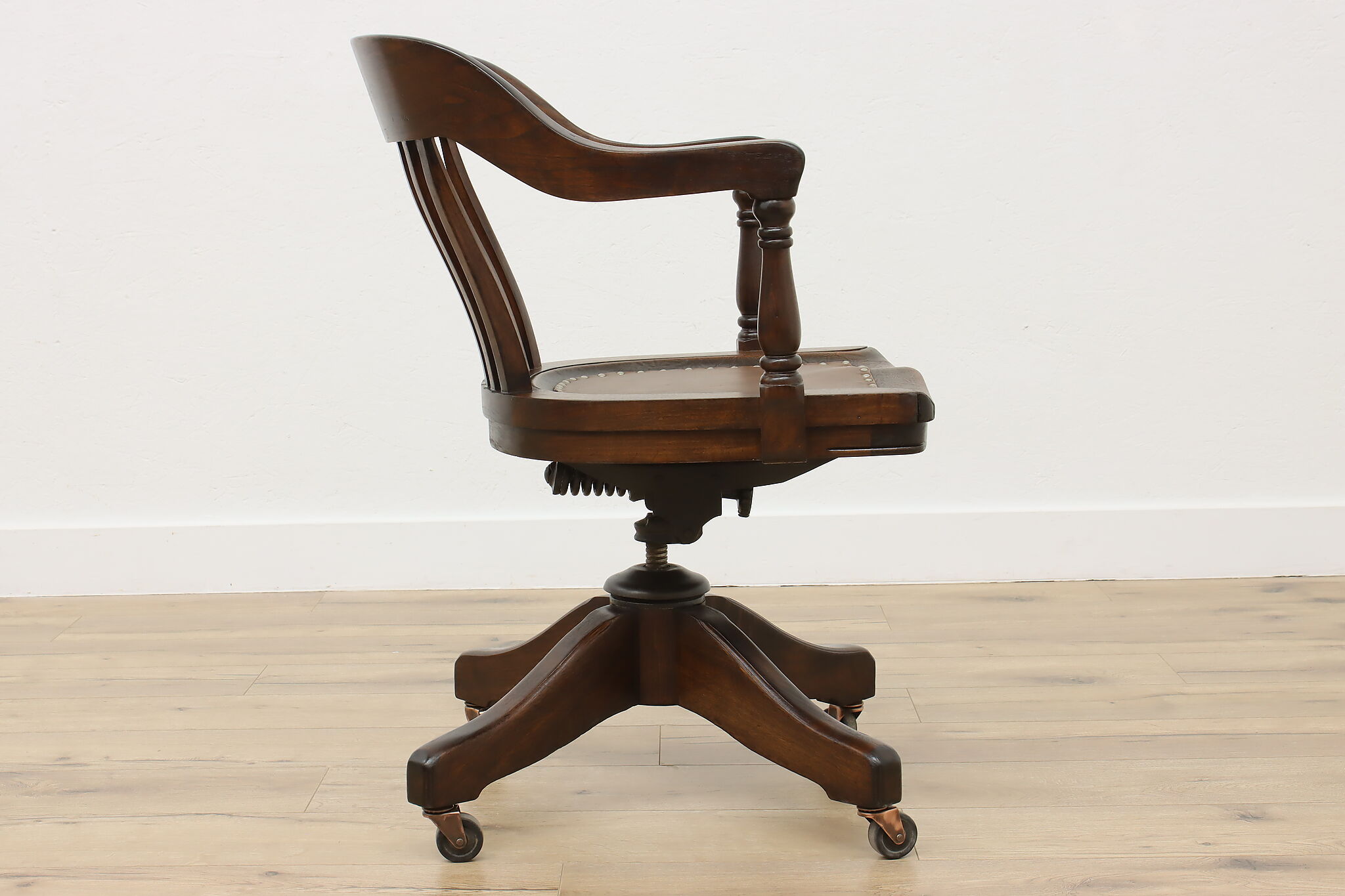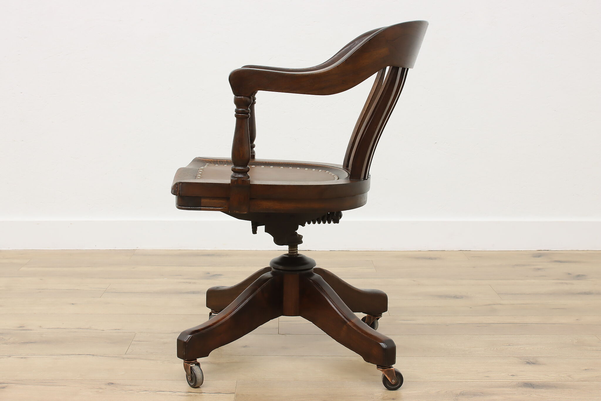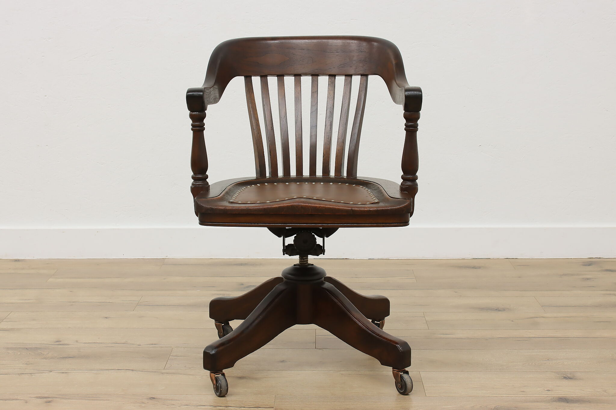 Enhance your daily seating with this traditional office or library desk chair that swivels and adjusts!