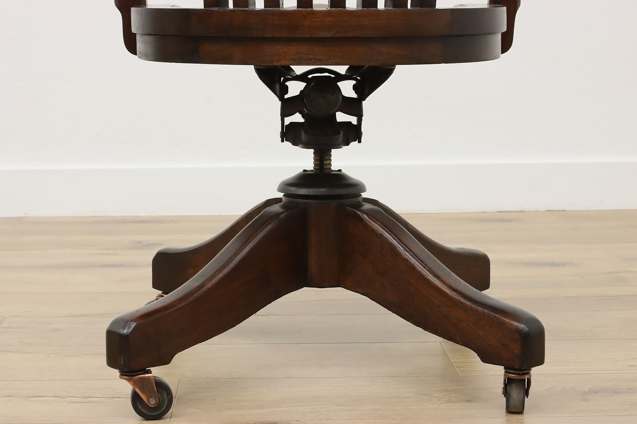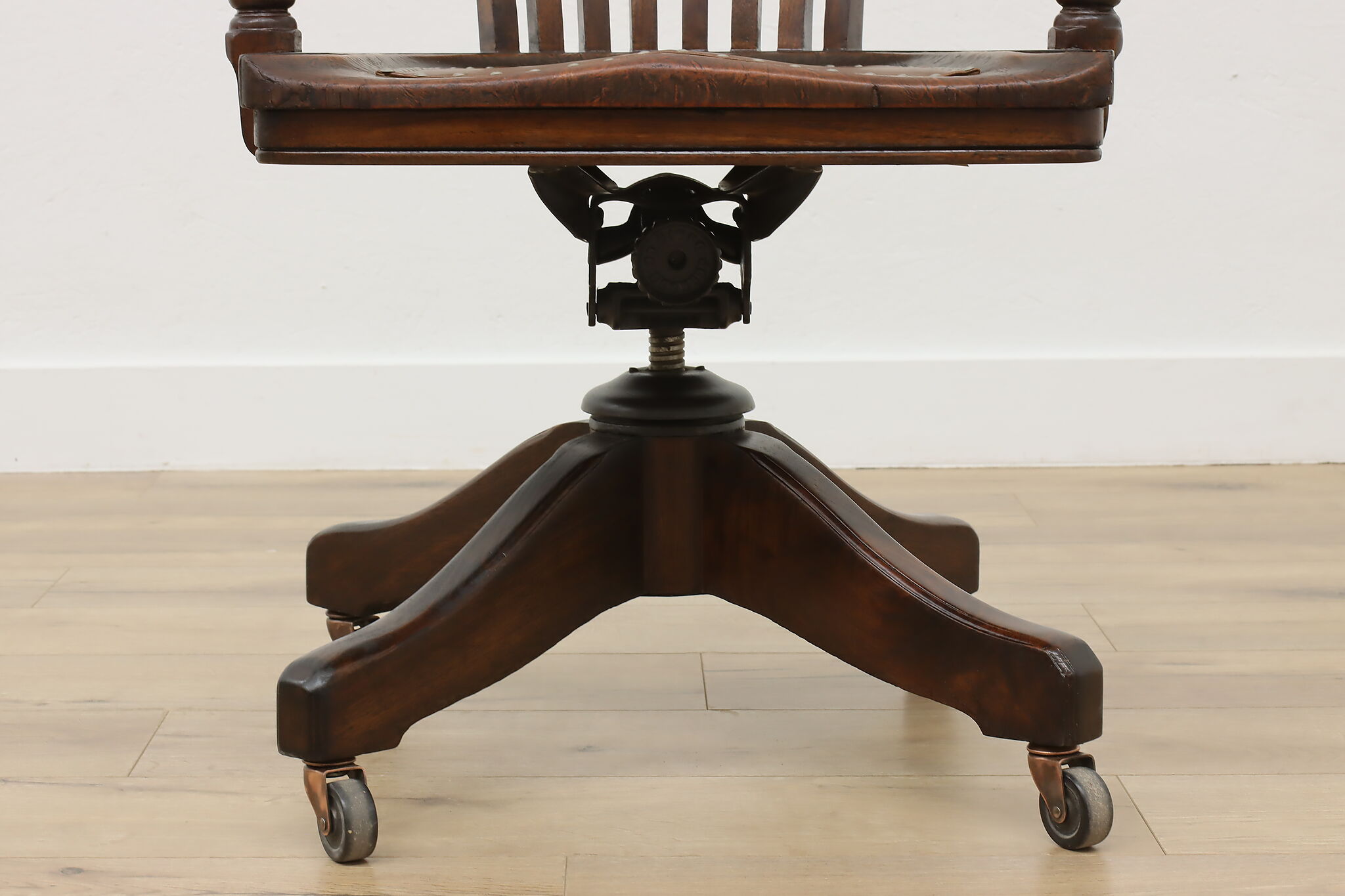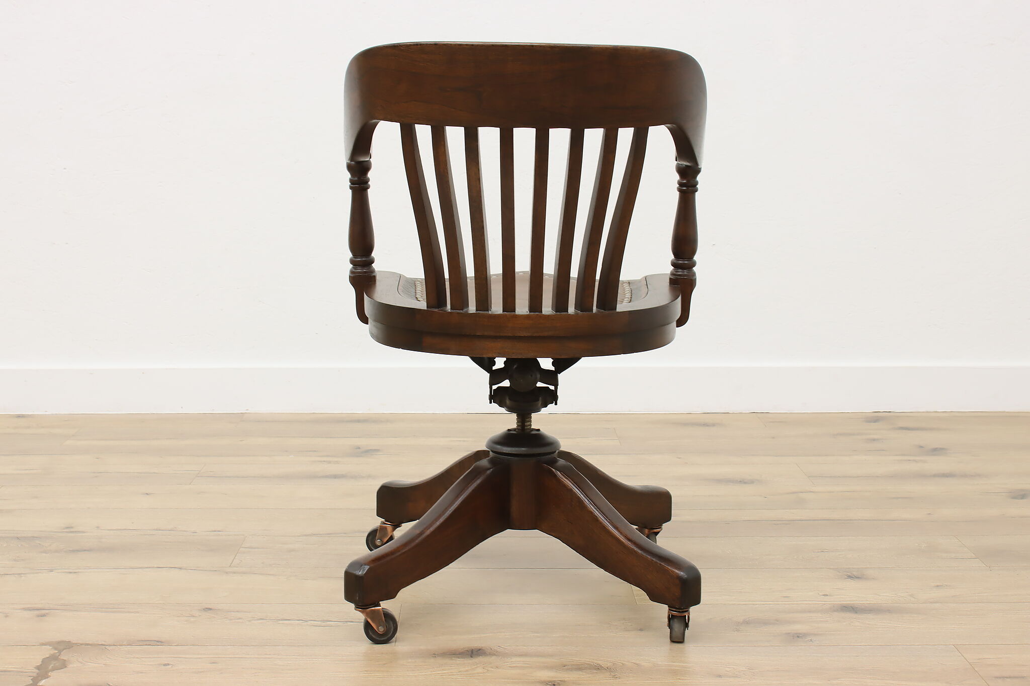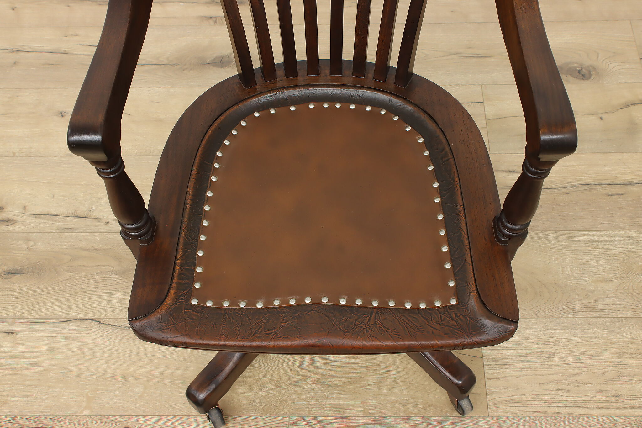 Enhance your daily seating with this traditional office or library desk chair that swivels and adjusts!