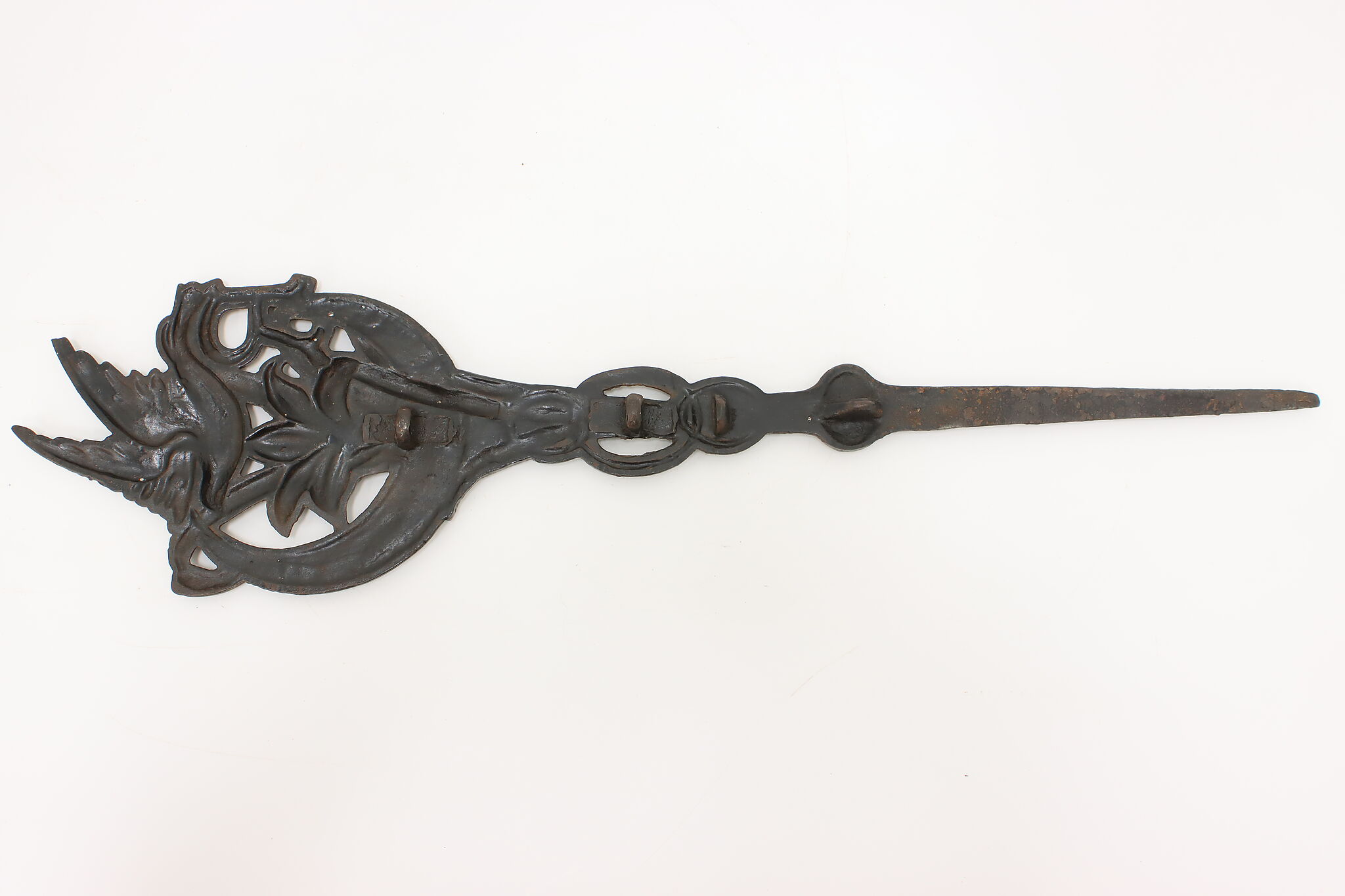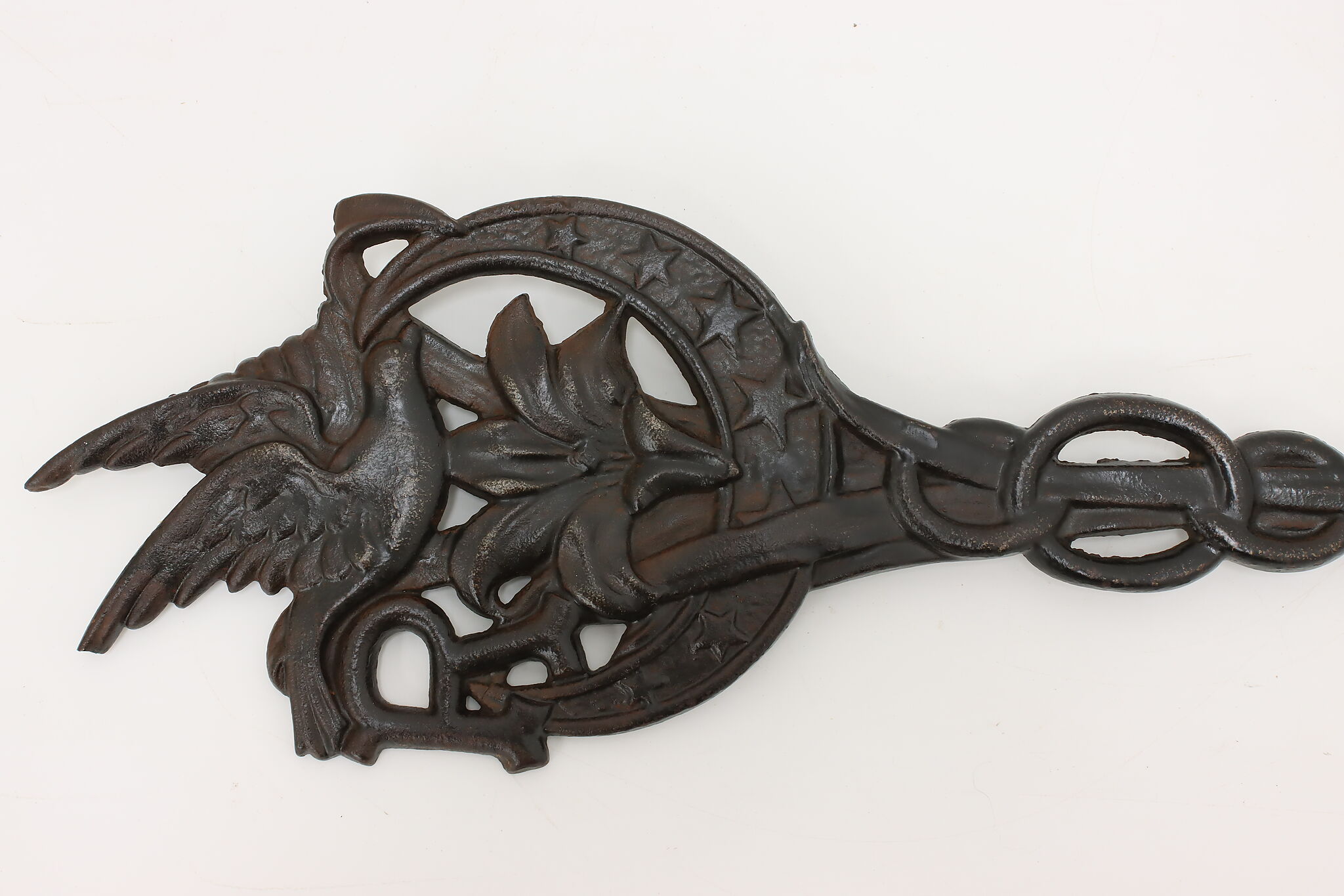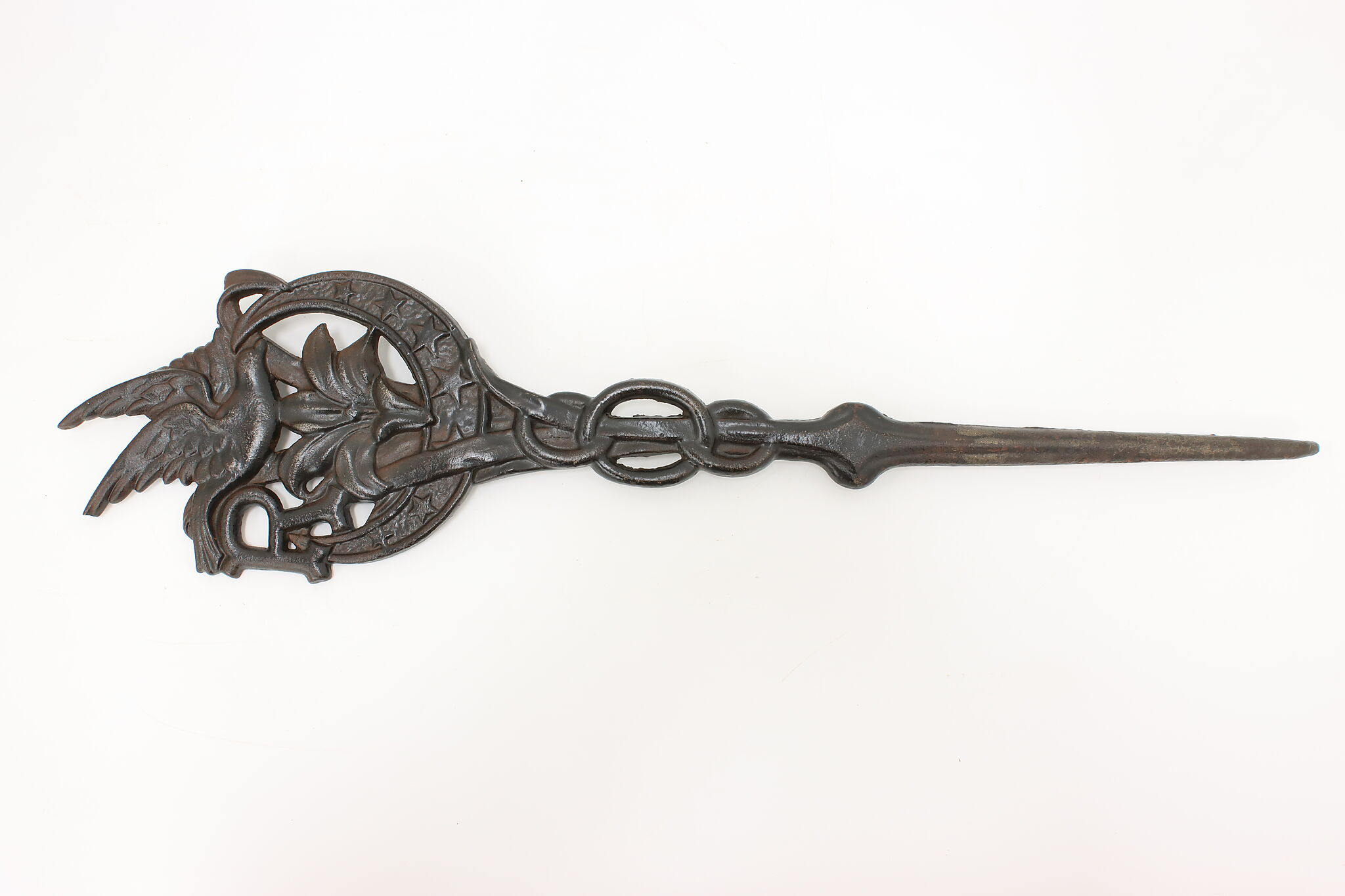 This beautiful garden stake, marker or flag holder has a bird and lily flower motifs.