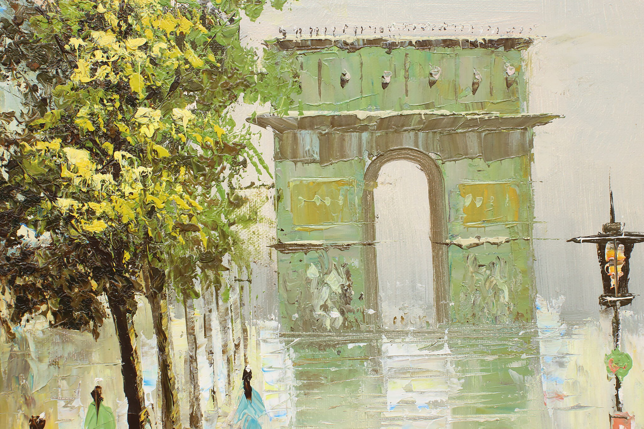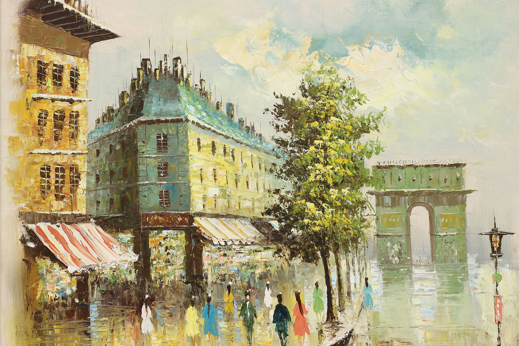 This fantastic painting is of the Arc de Triomphe in Paris, France. The first stone was laid in 1806 and took thirty years to complete the war memorial that is now a famous landmark in Paris.
