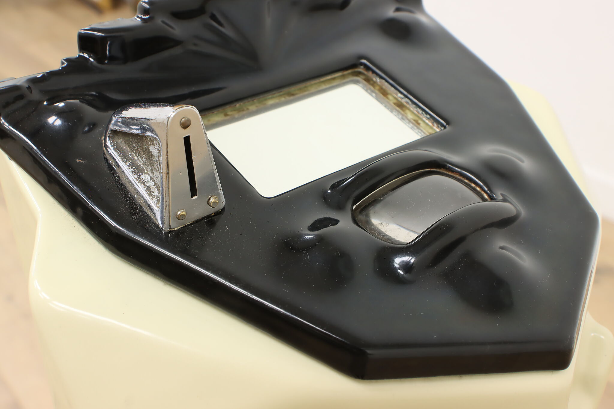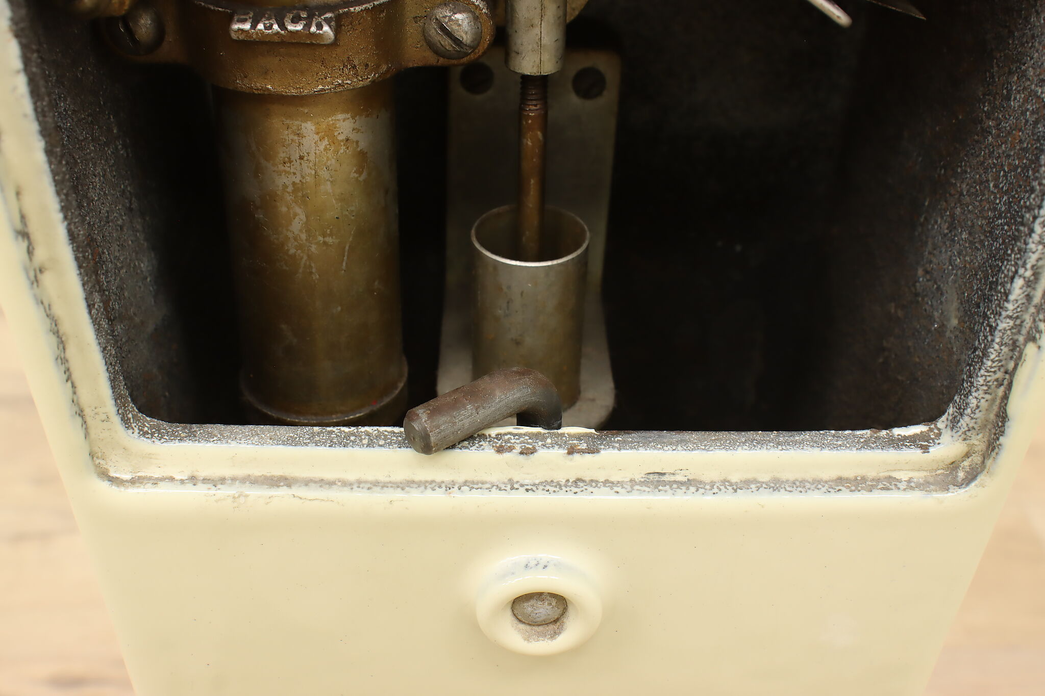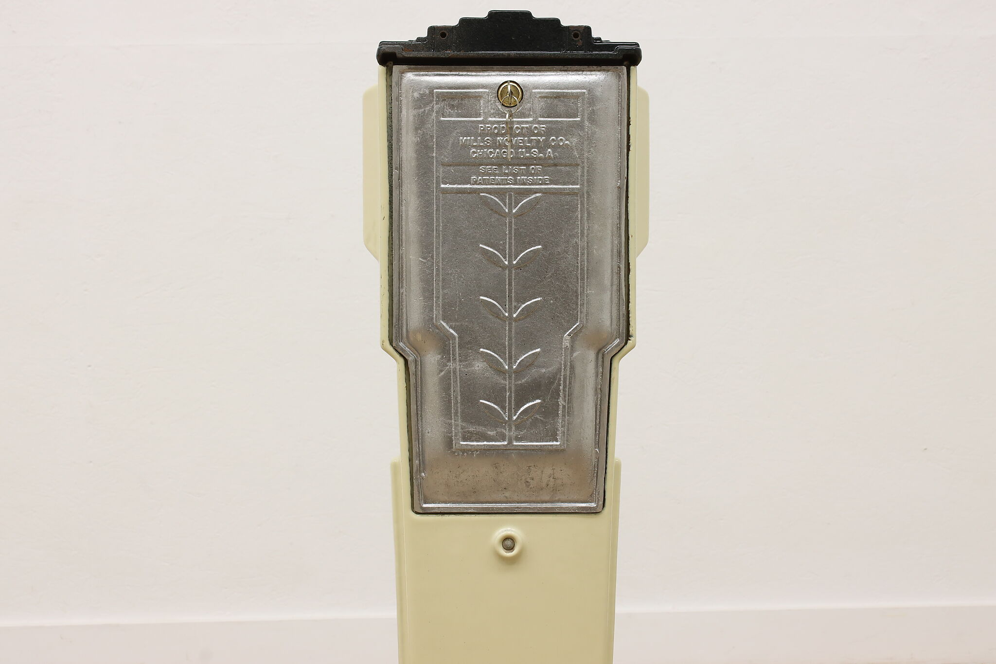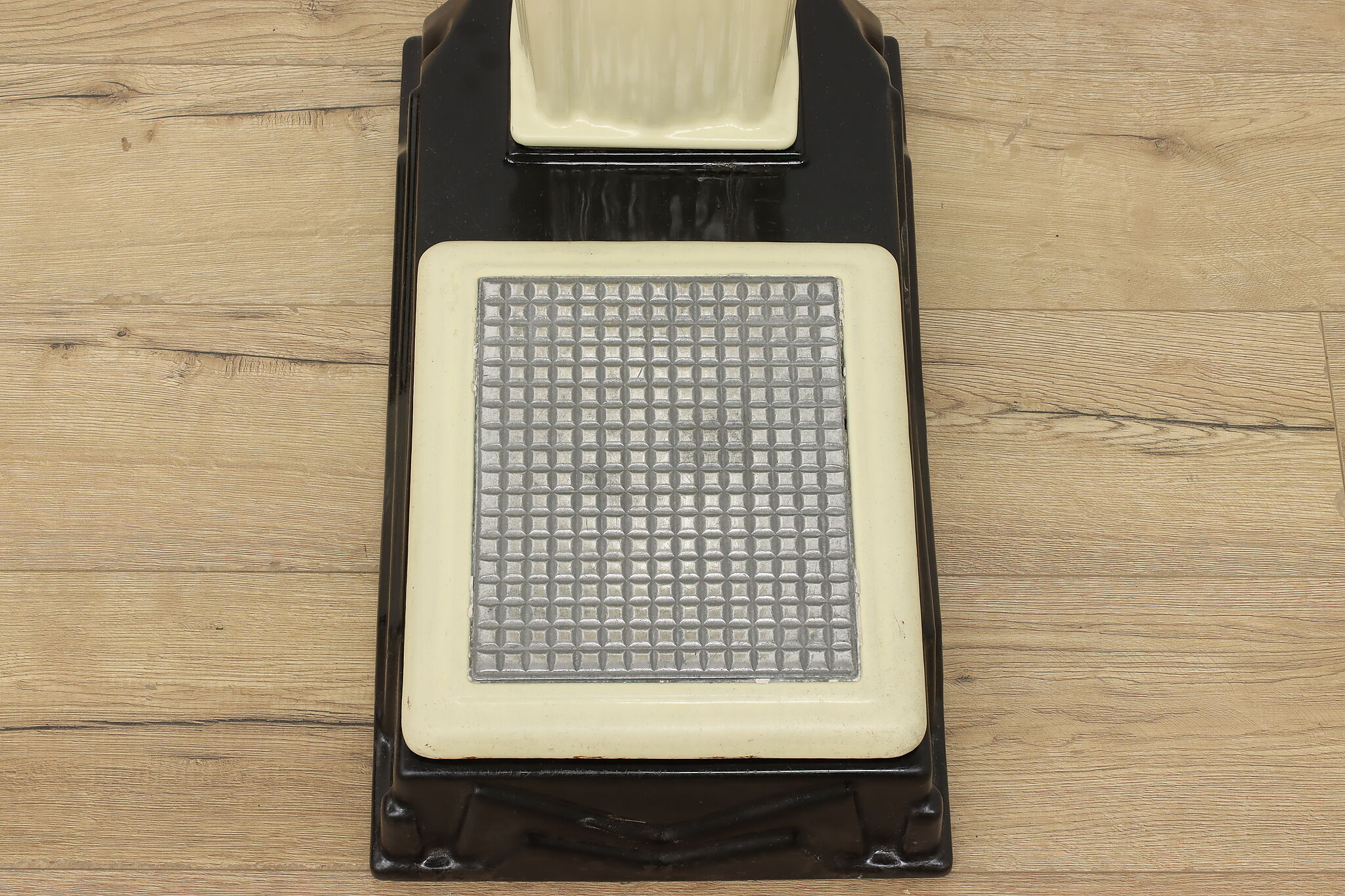 An Art Deco era coin-operated floor scale would've been found in amusement parks and outside of grocery stores for entertainment. Simply pop pennies into the coin deposit until your weight is reached!