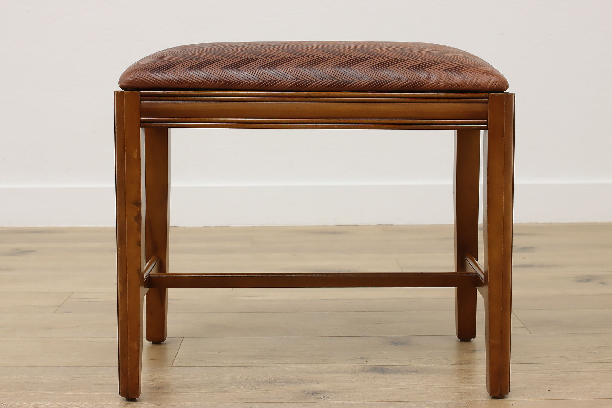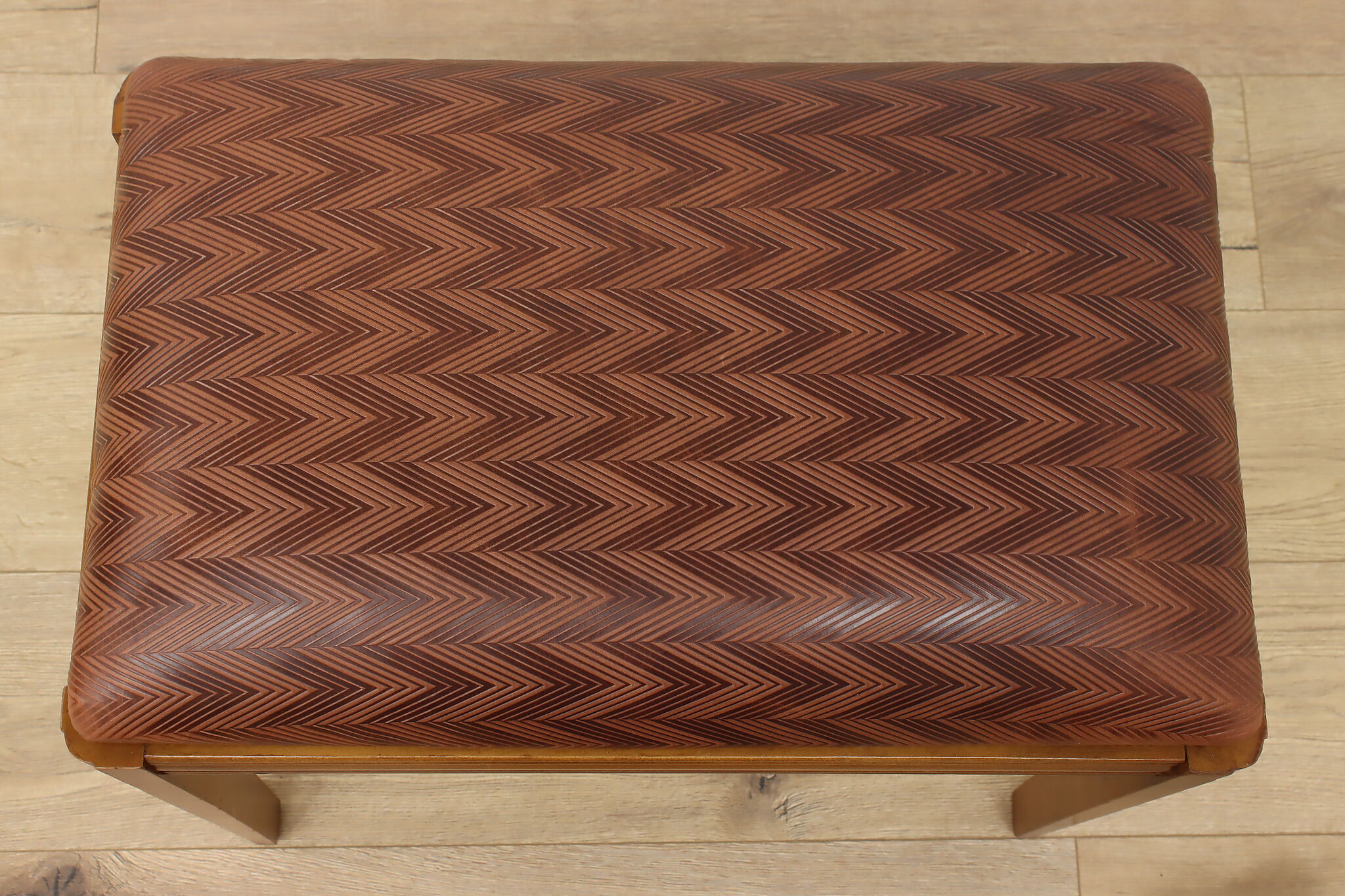 This Art Deco vanity or boudoir bench makes quite the splash with its new embossed leather upholstery.