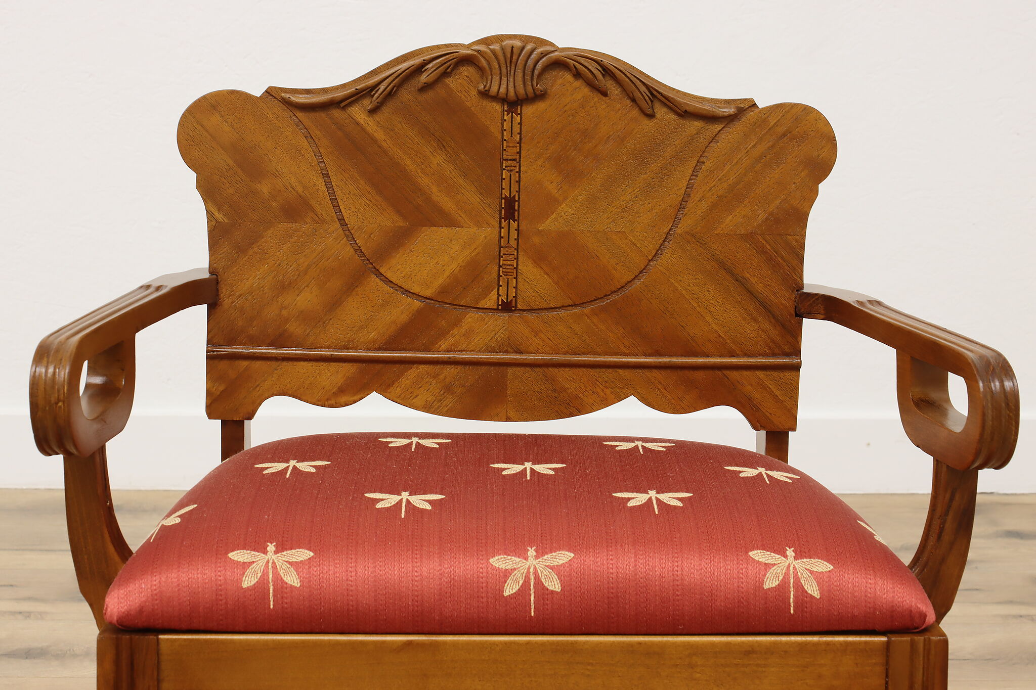 A classic vanity or dressing table bench dates from the Art Deco period.