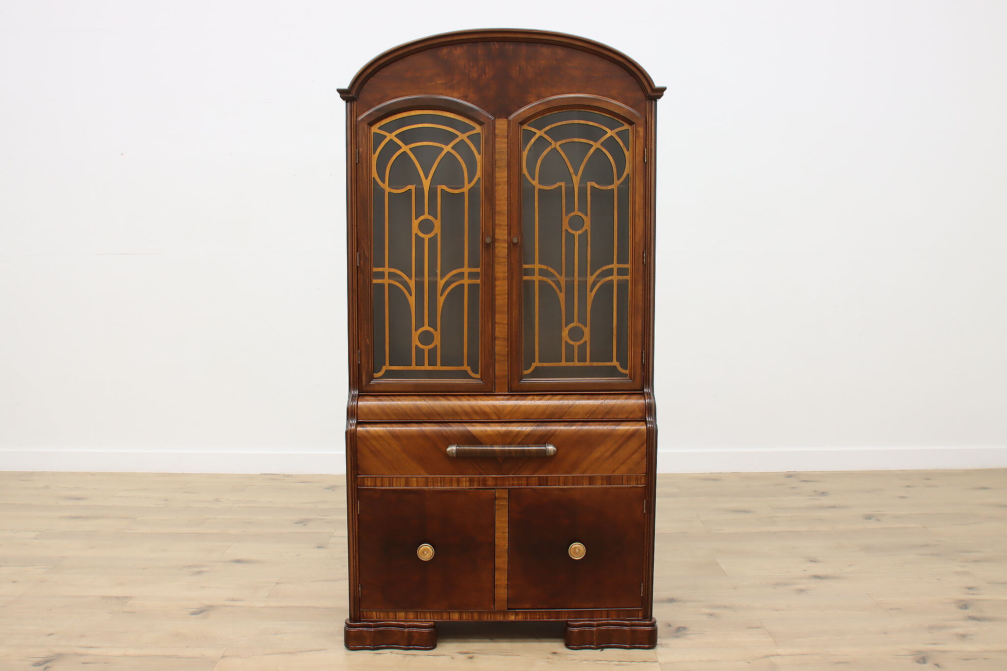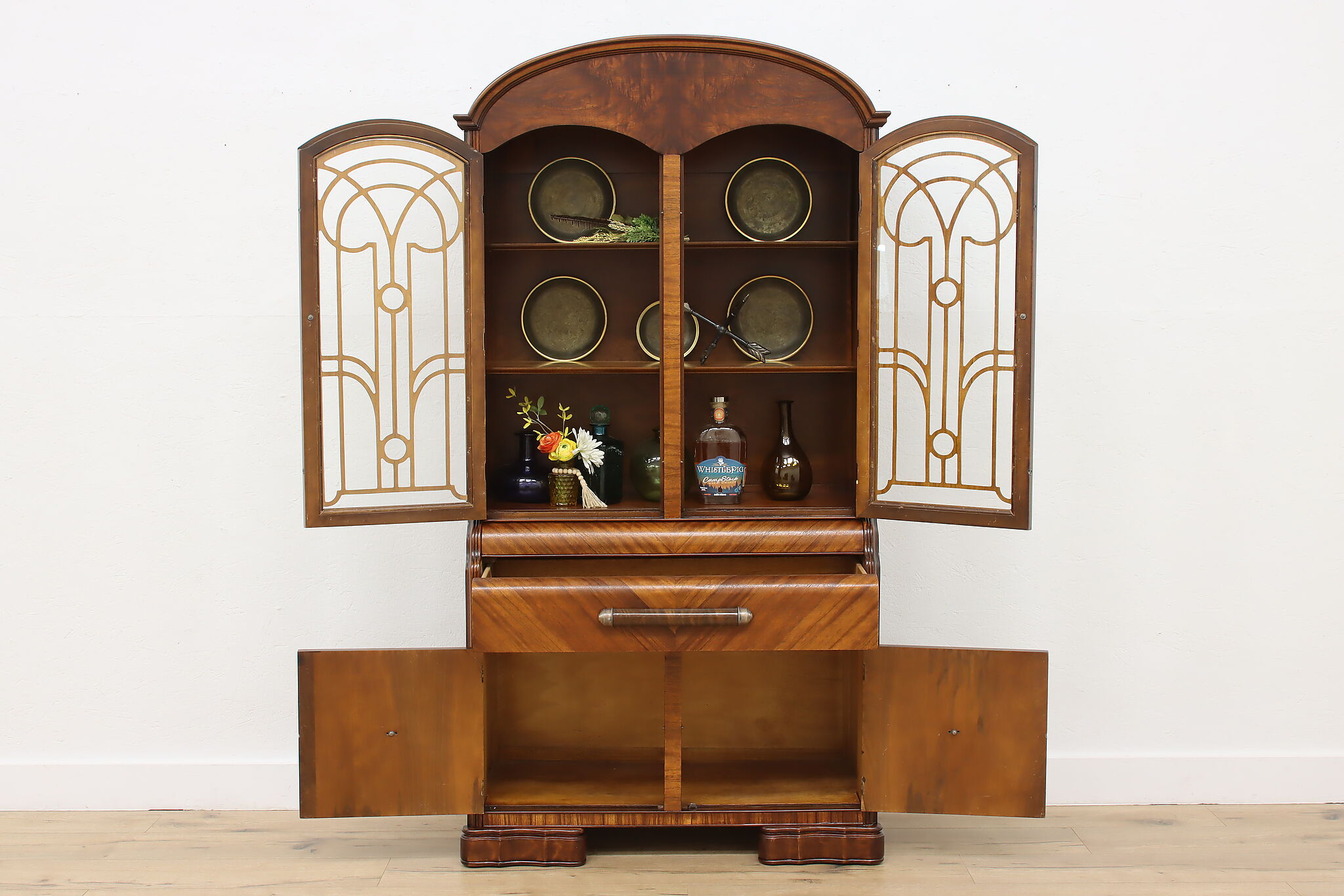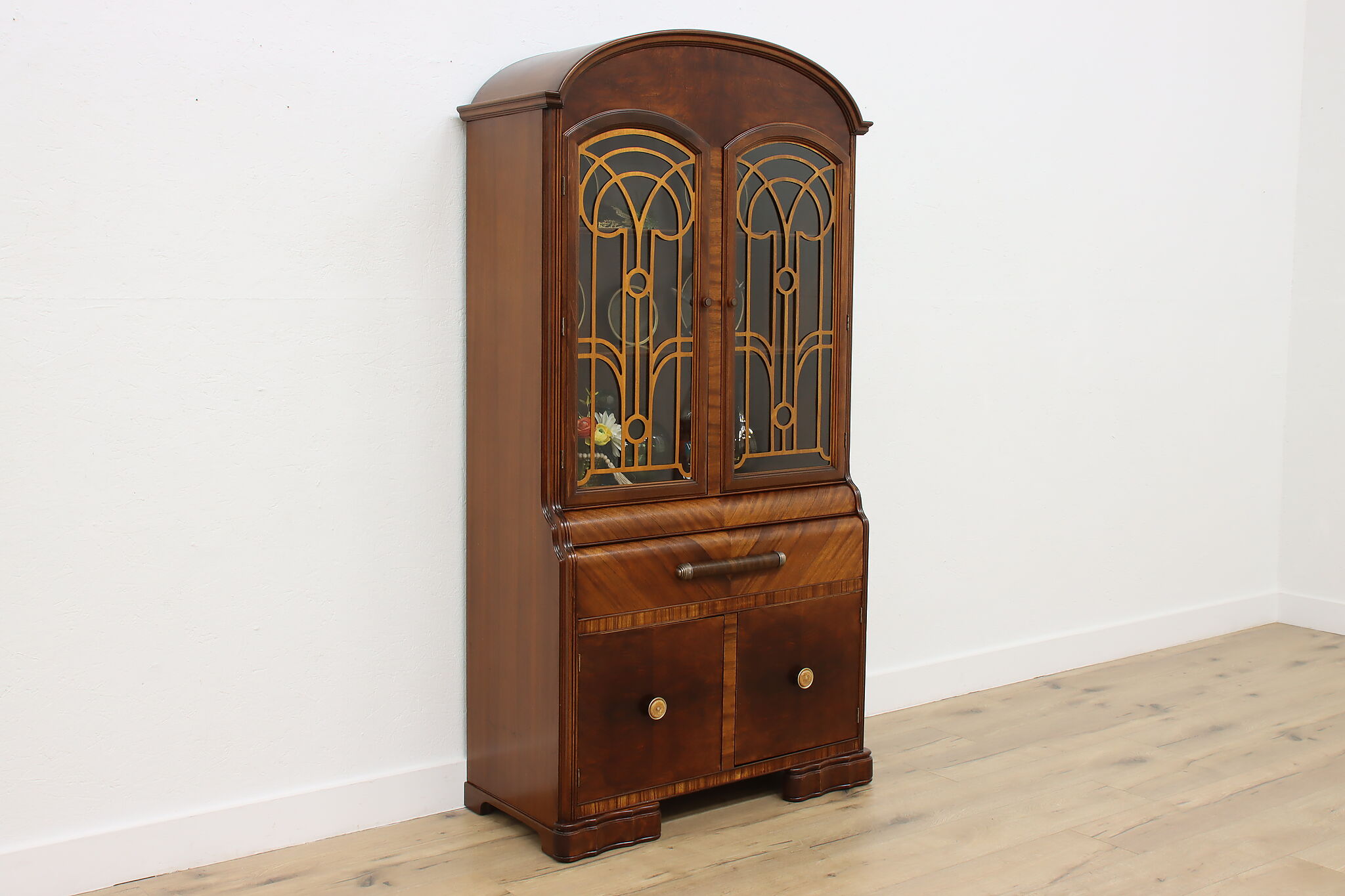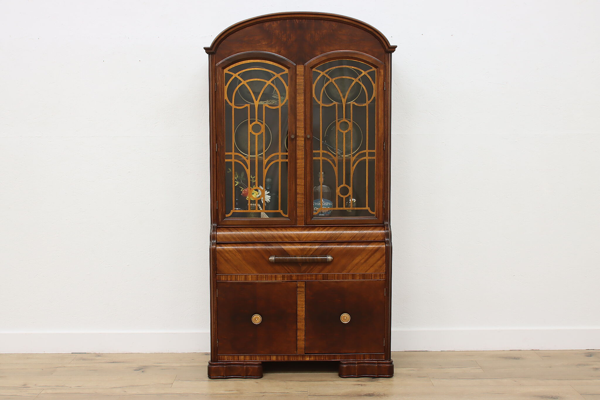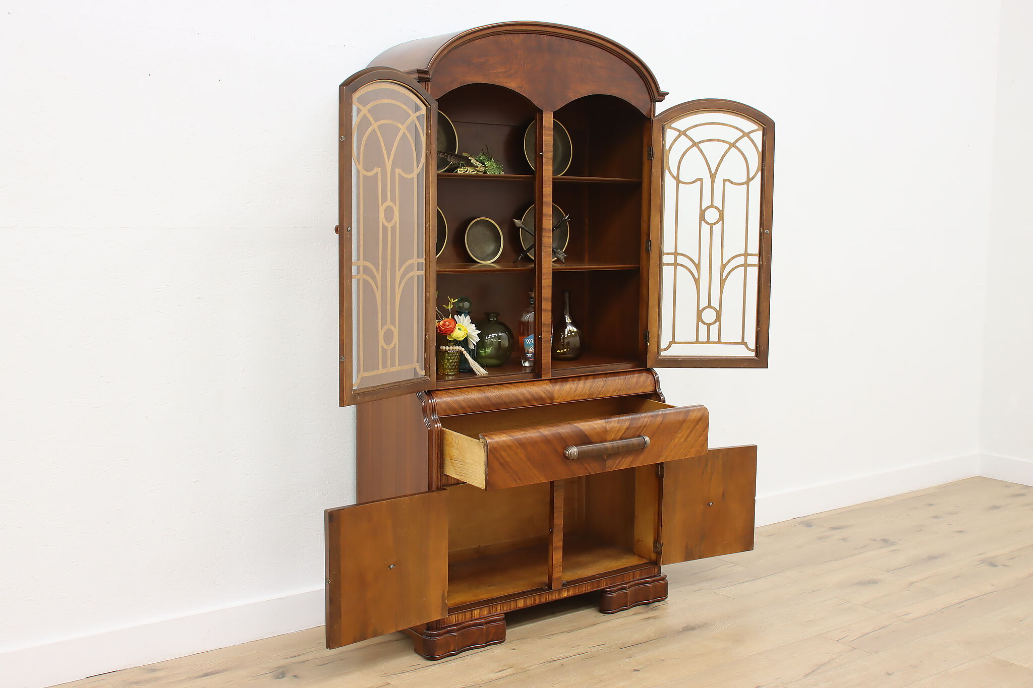 This lovely china, bar or display cabinet has classic "waterfall" design, which was extremely popular during the Art Deco period.