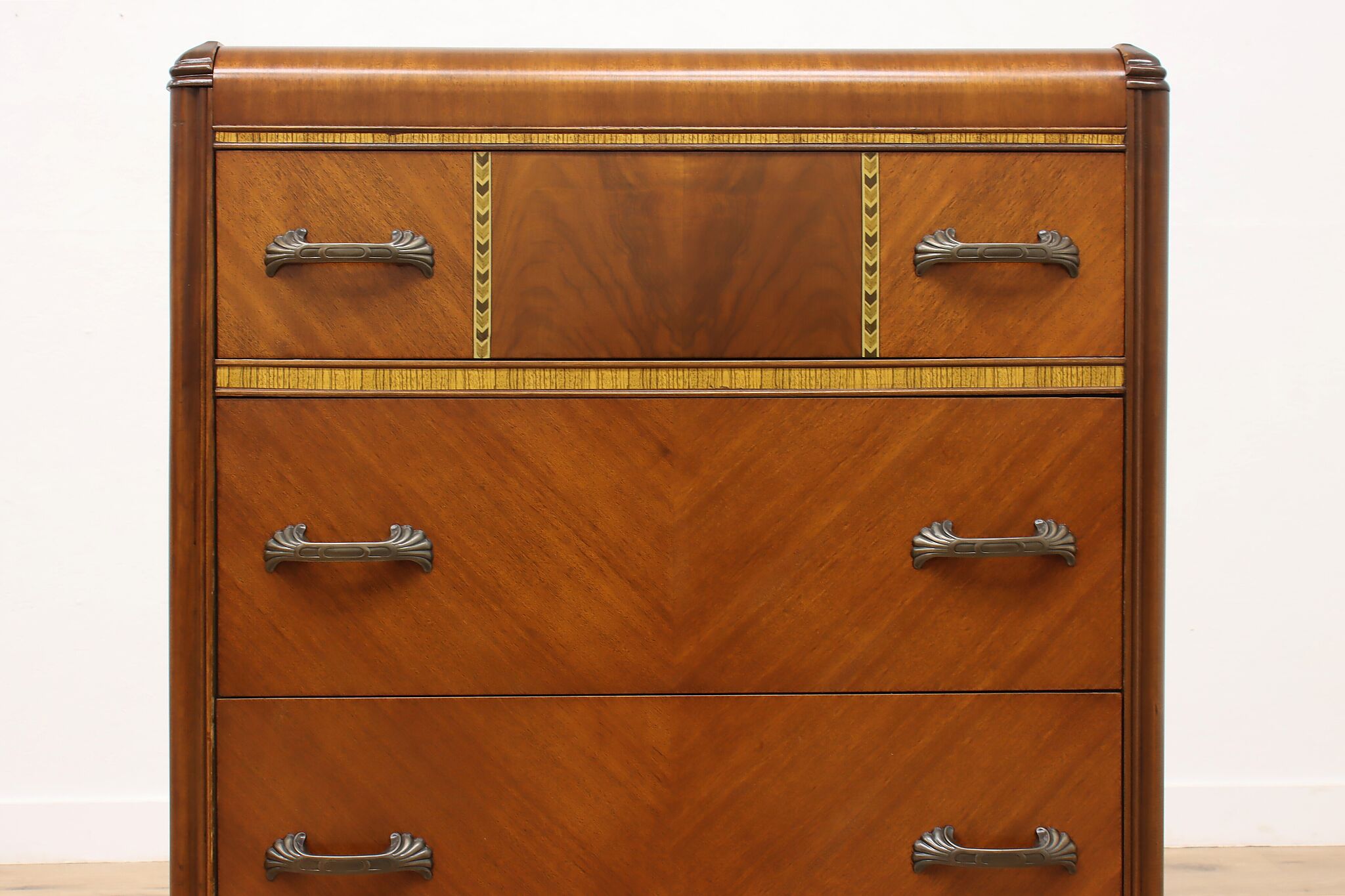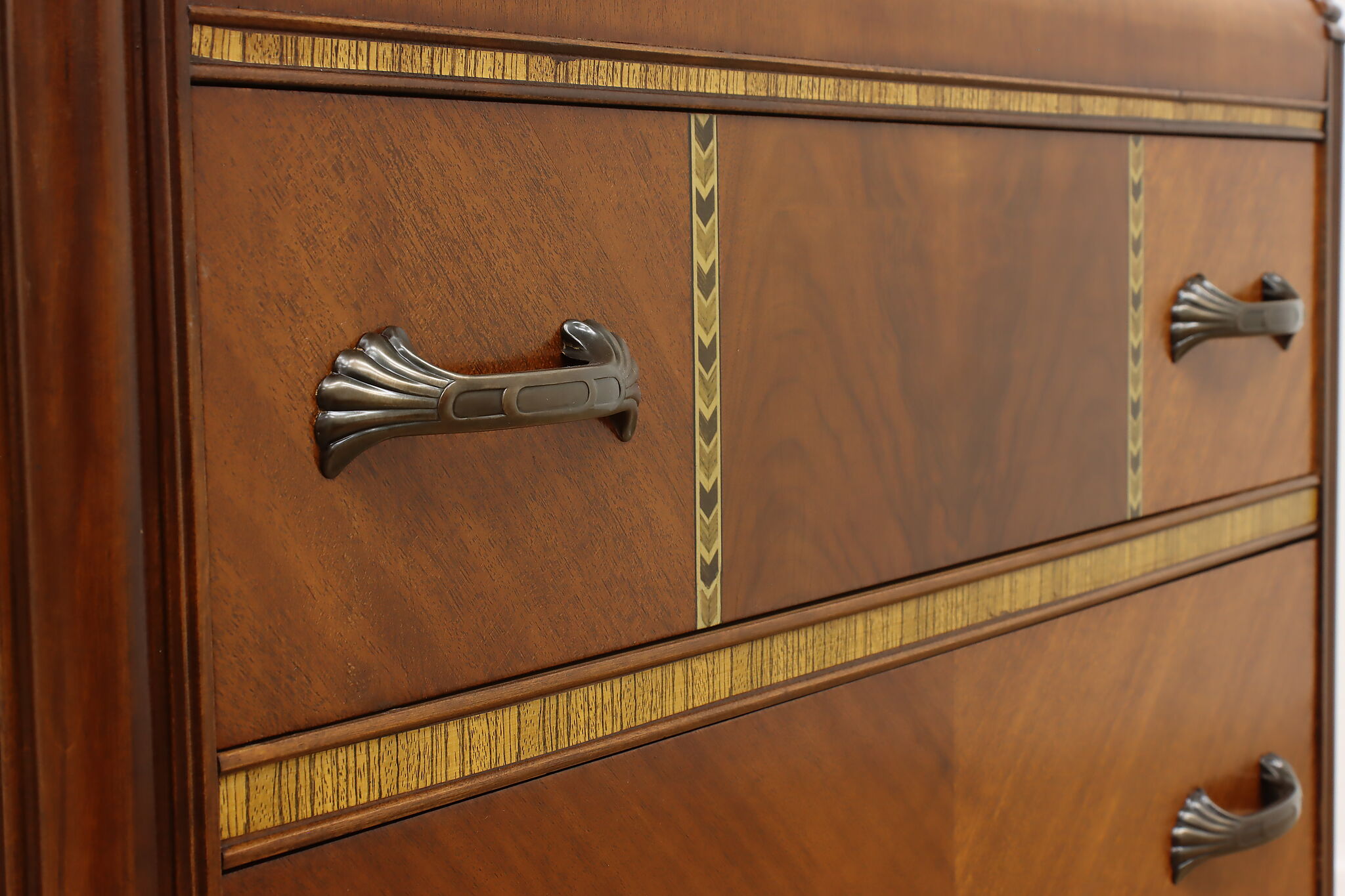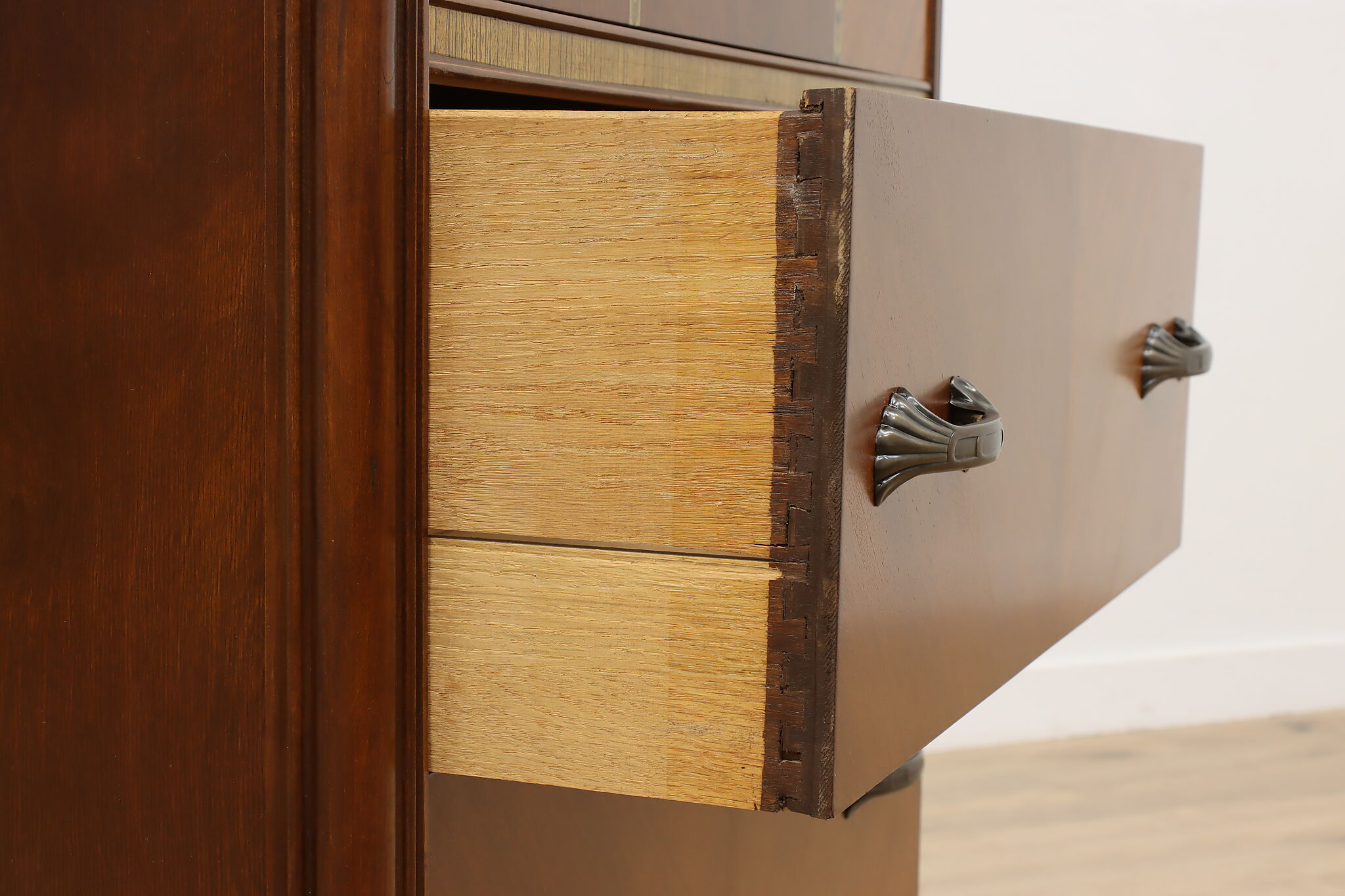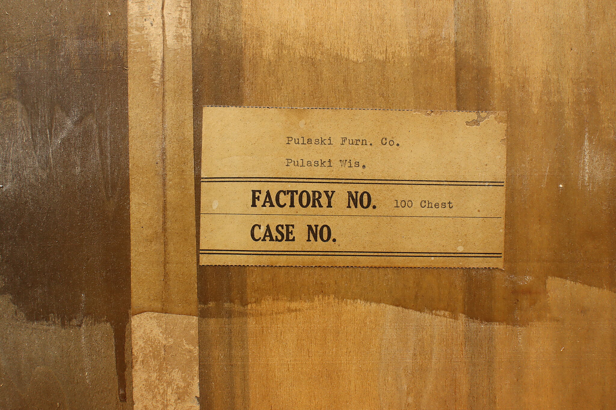 An Art Deco period tall dresser or chest was crafted in Pulaski, Wisconsin.