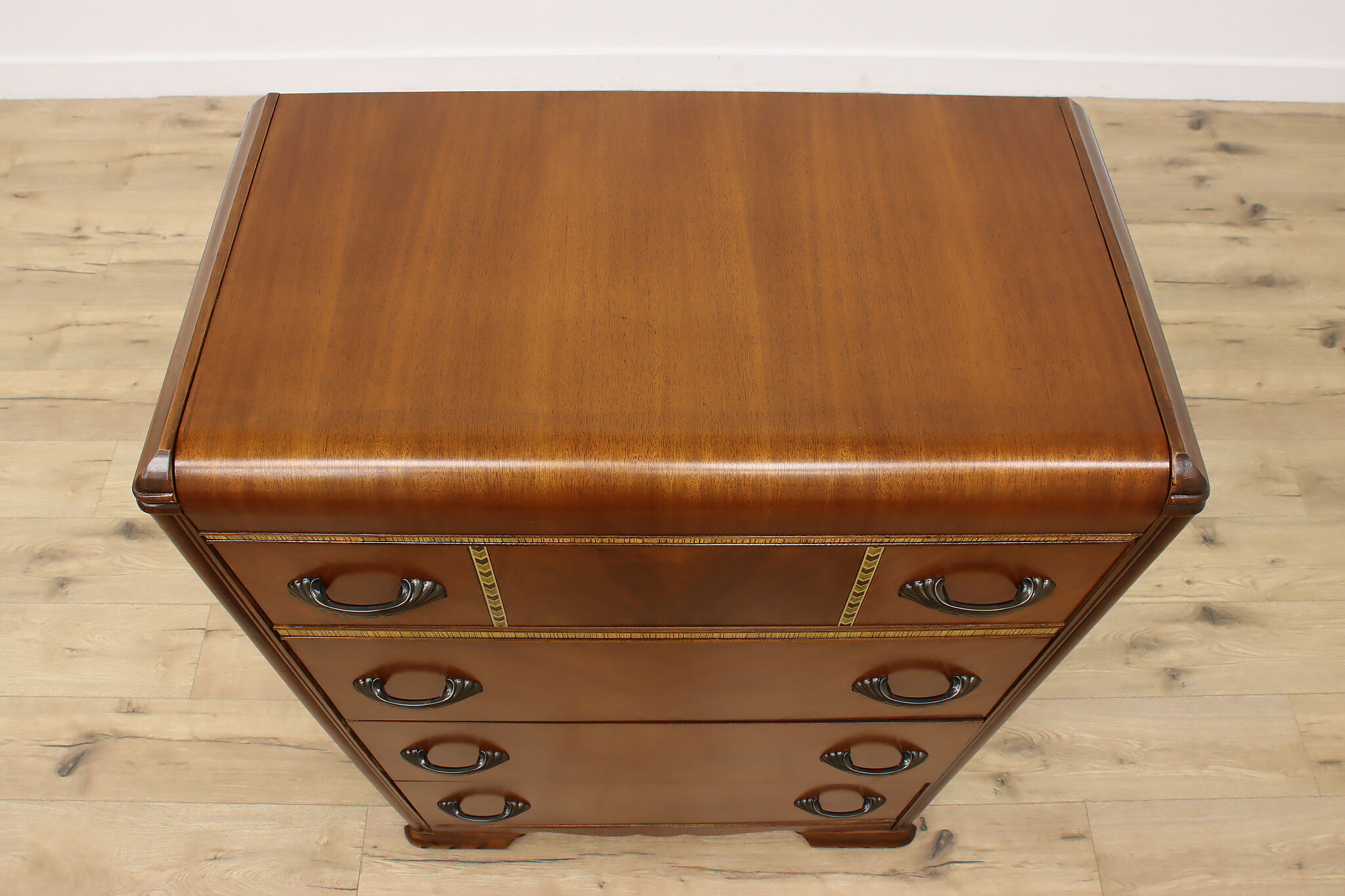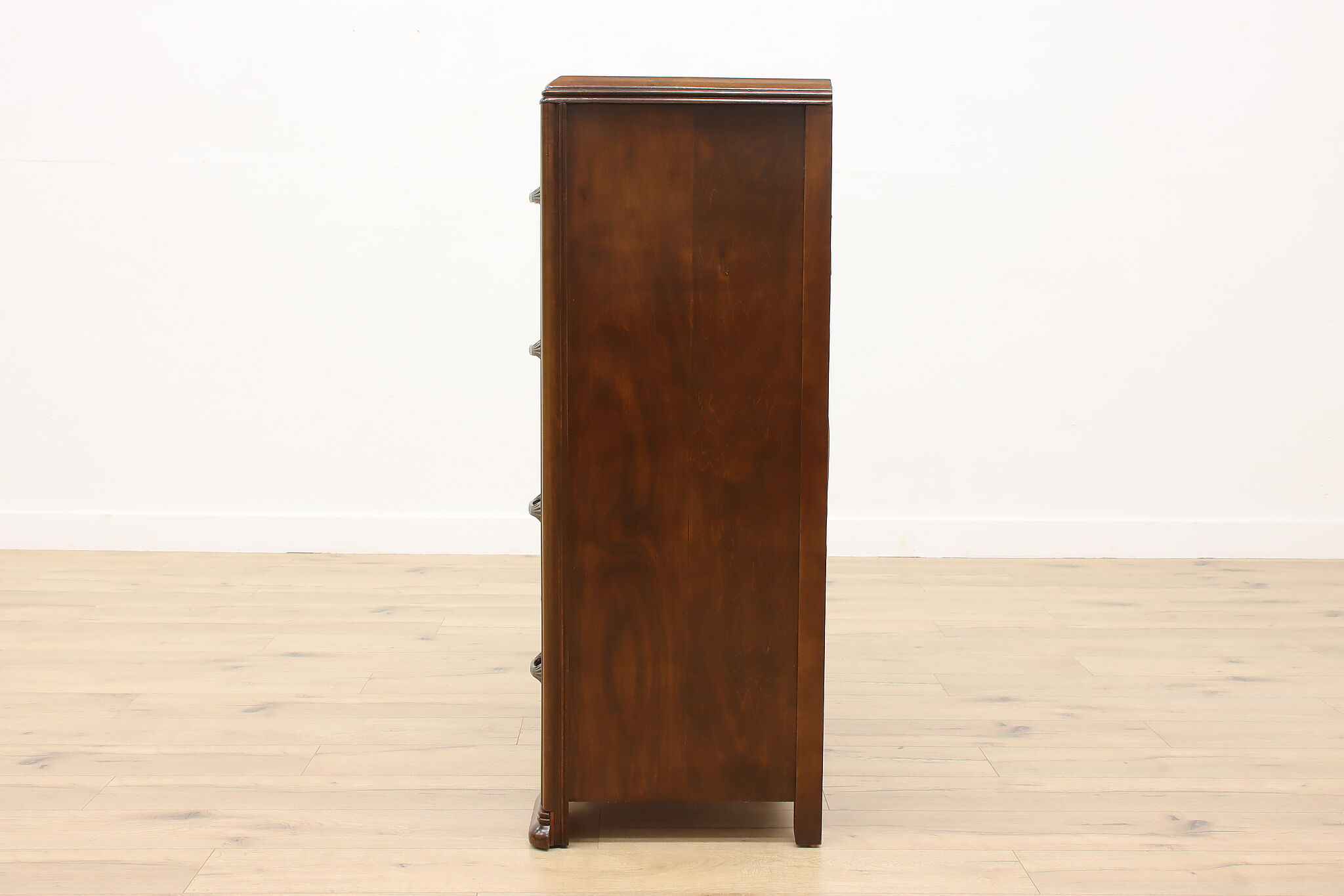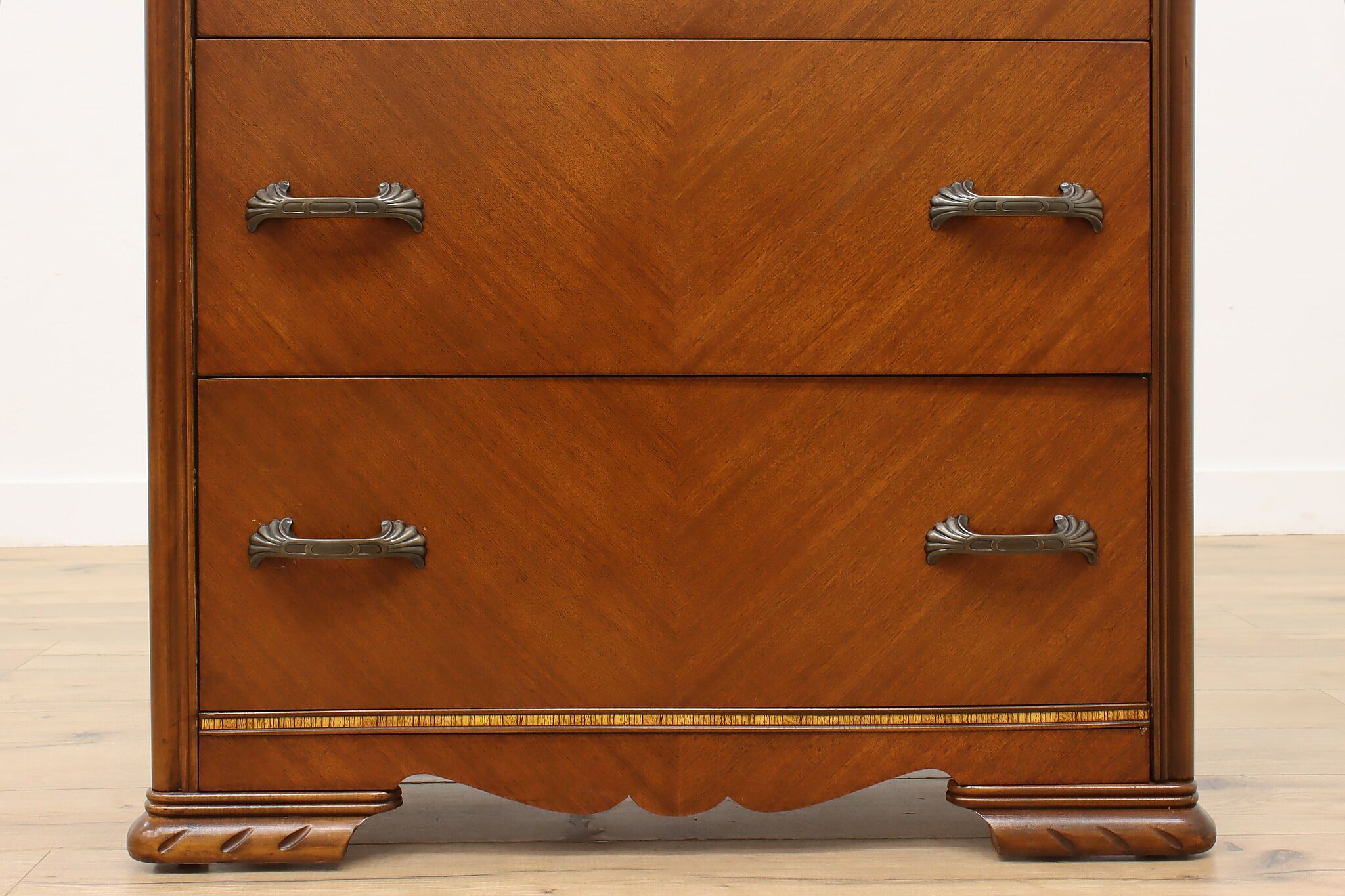 An Art Deco period tall dresser or chest was crafted in Pulaski, Wisconsin.
