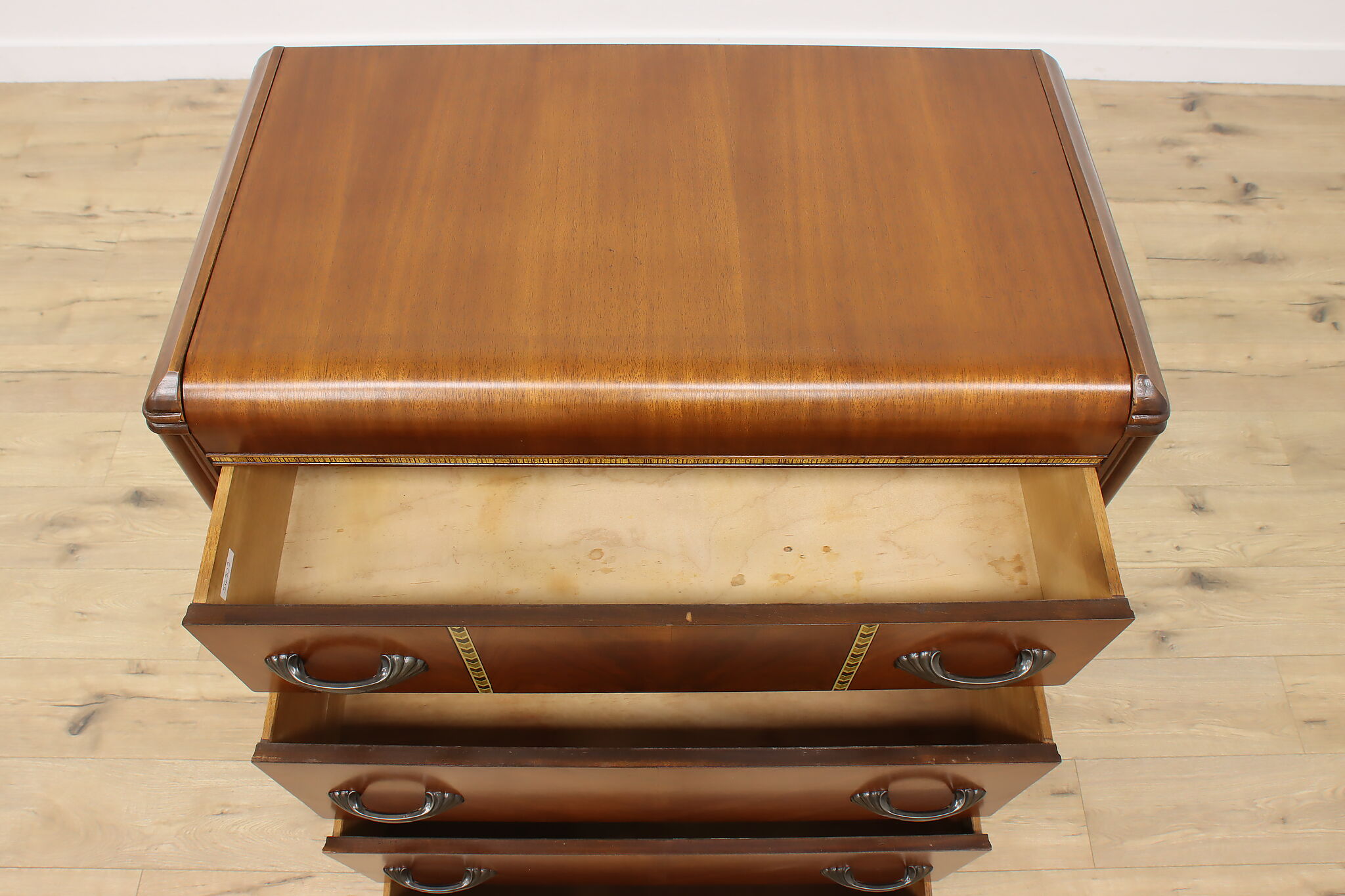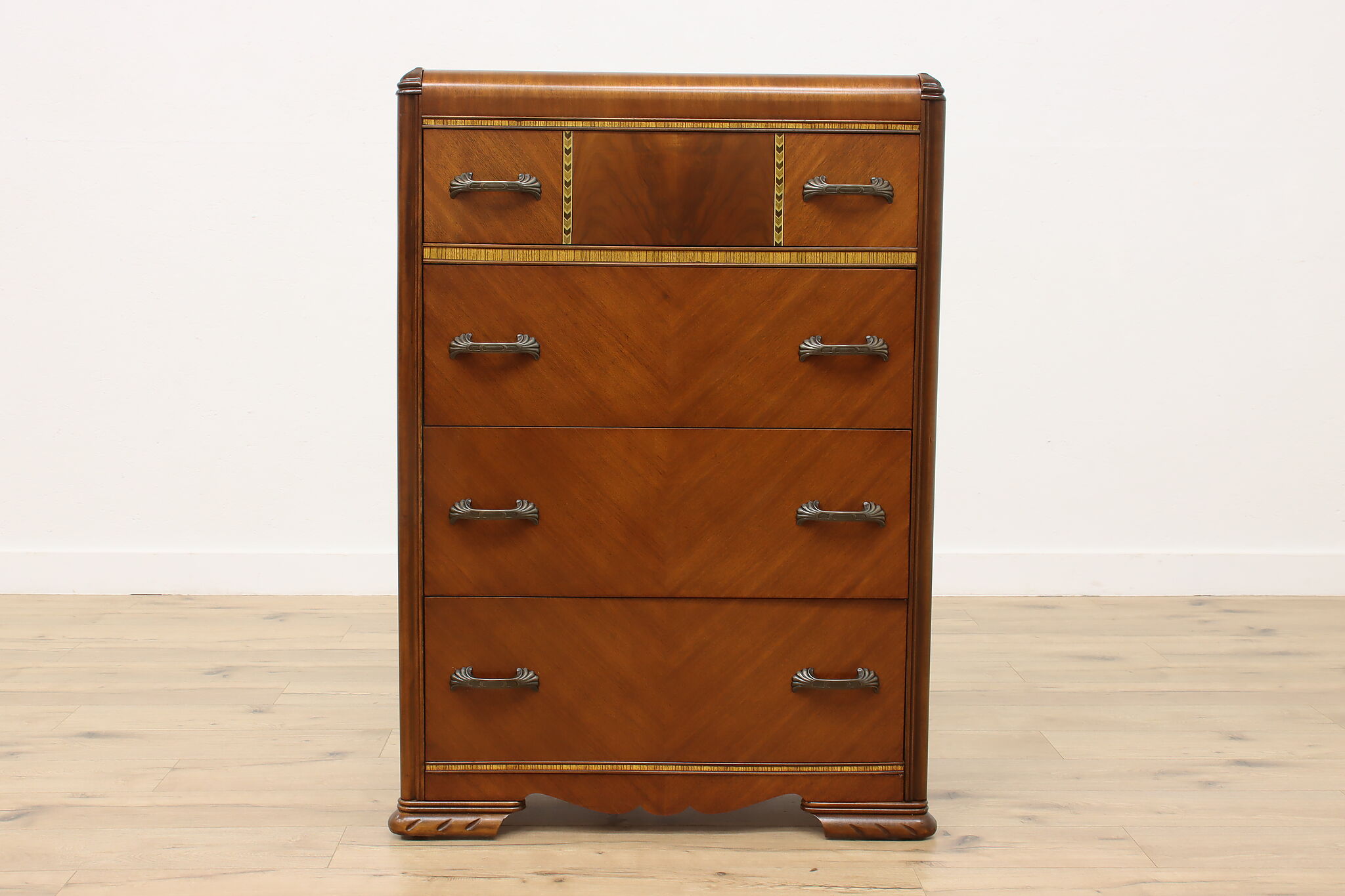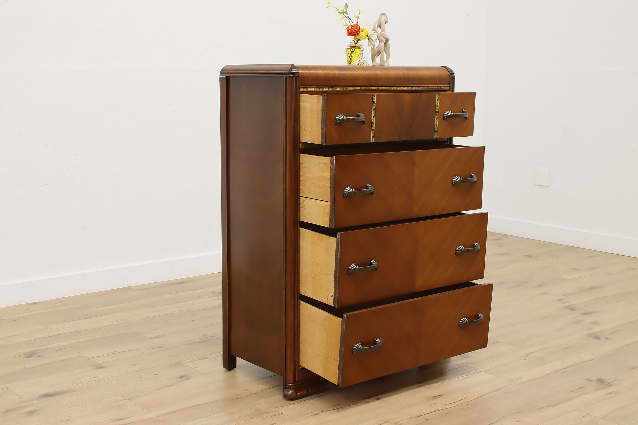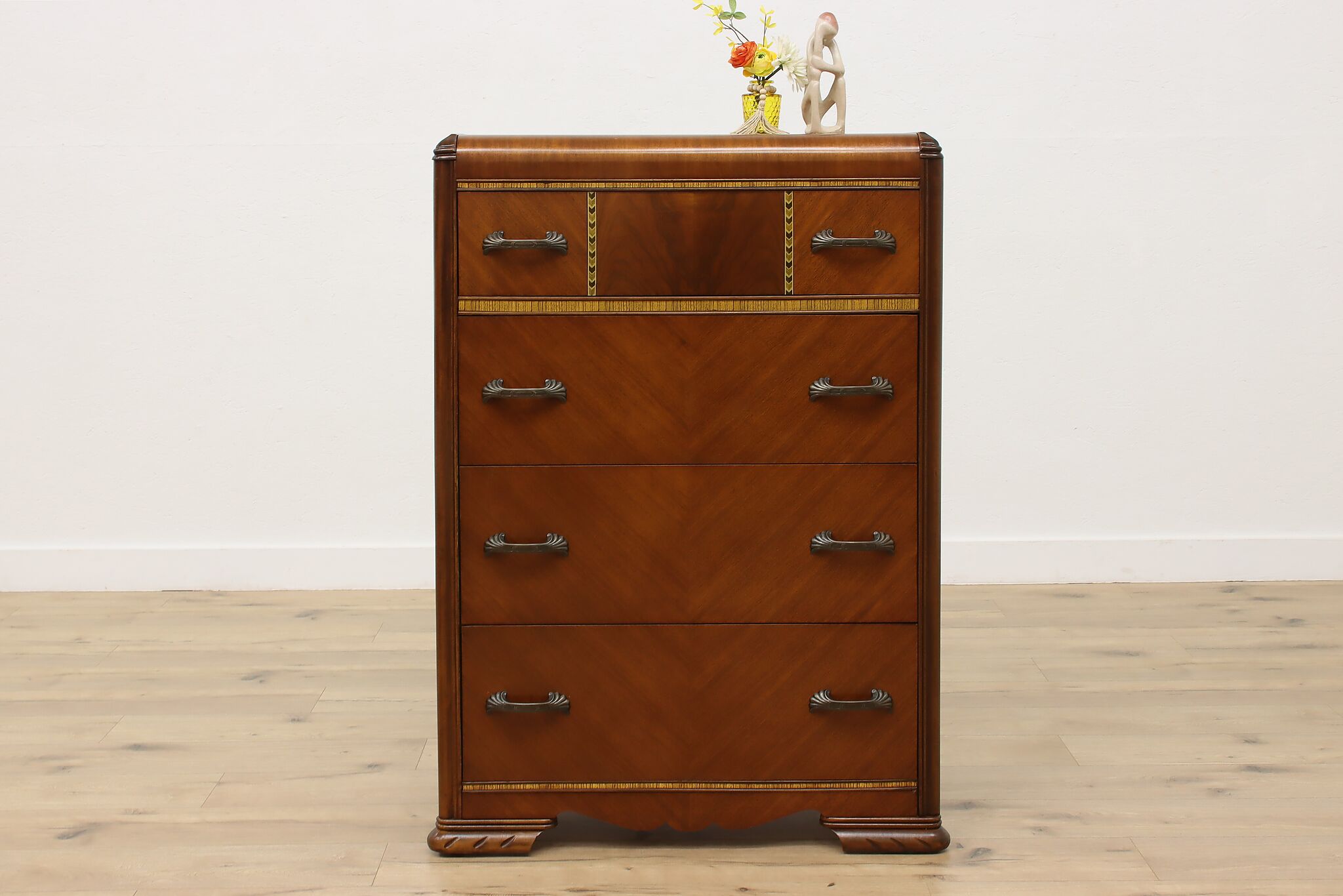 An Art Deco period tall dresser or chest was crafted in Pulaski, Wisconsin.