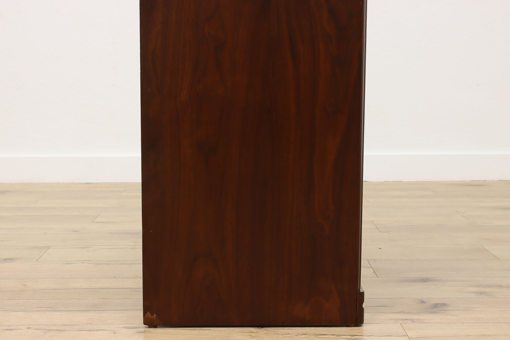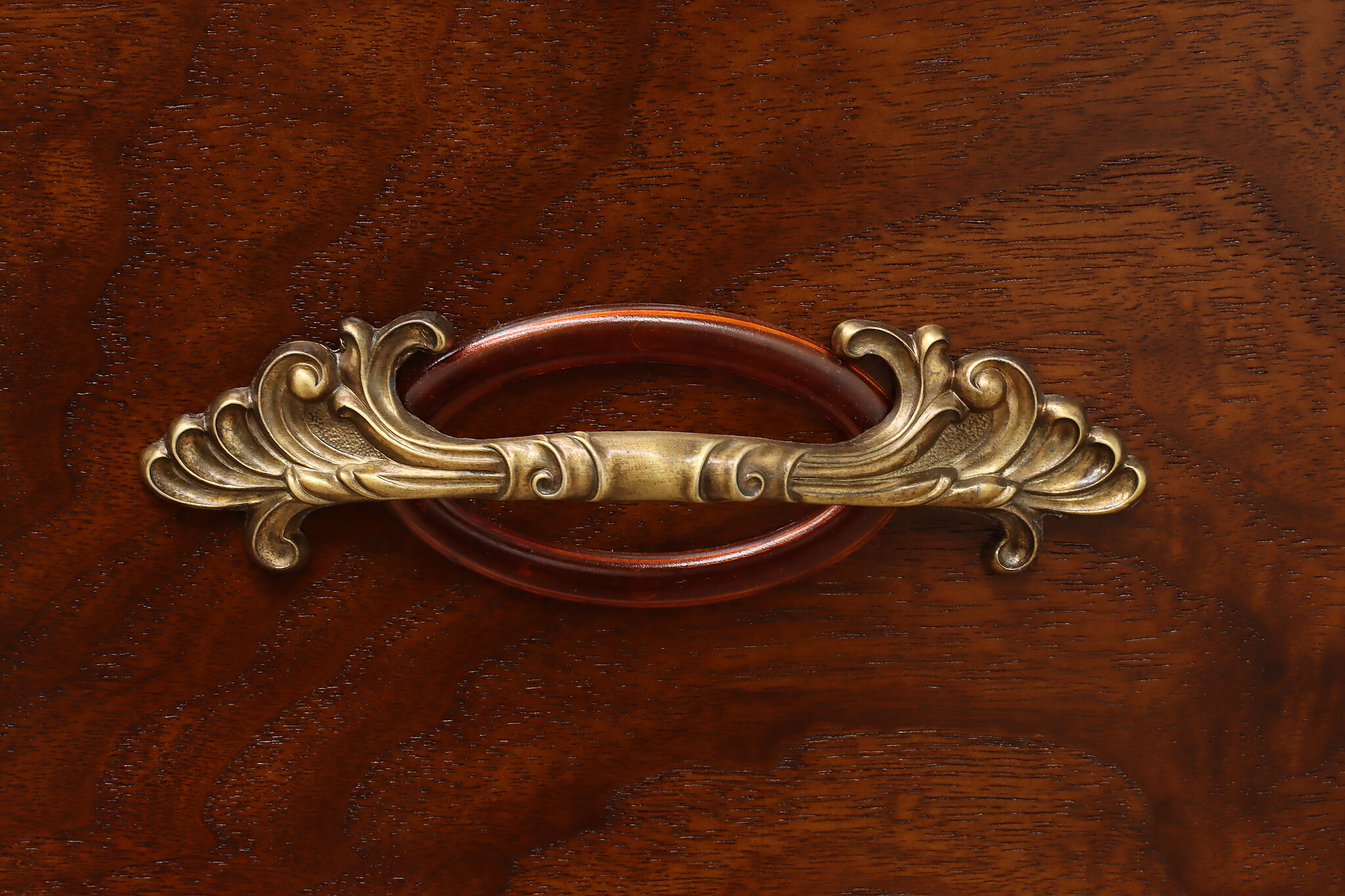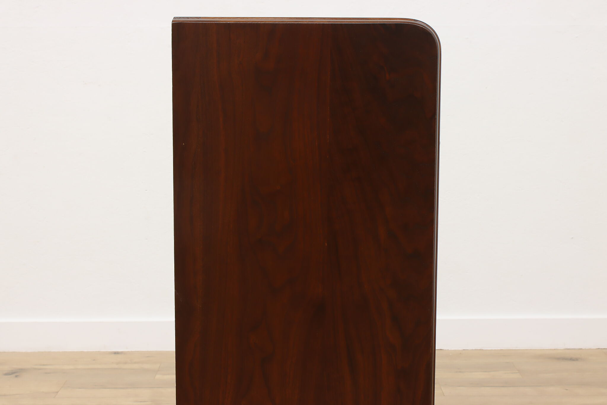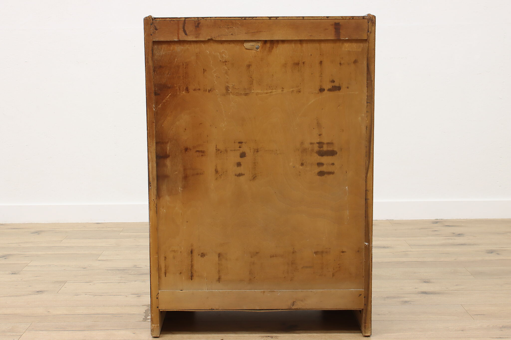 A classic Art Deco period chest or dresser has beautiful "waterfall" design and bookmatched drawer fronts.