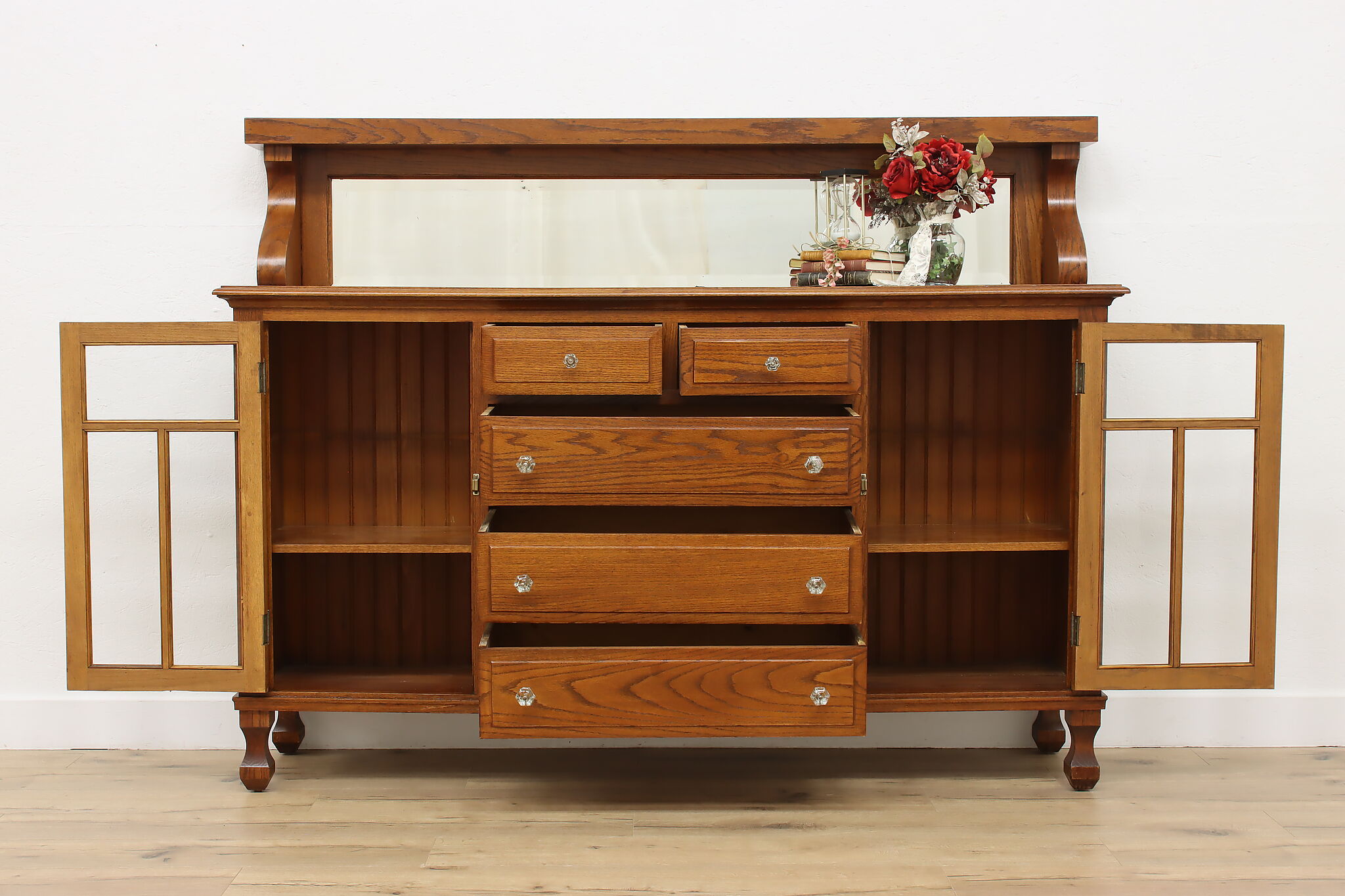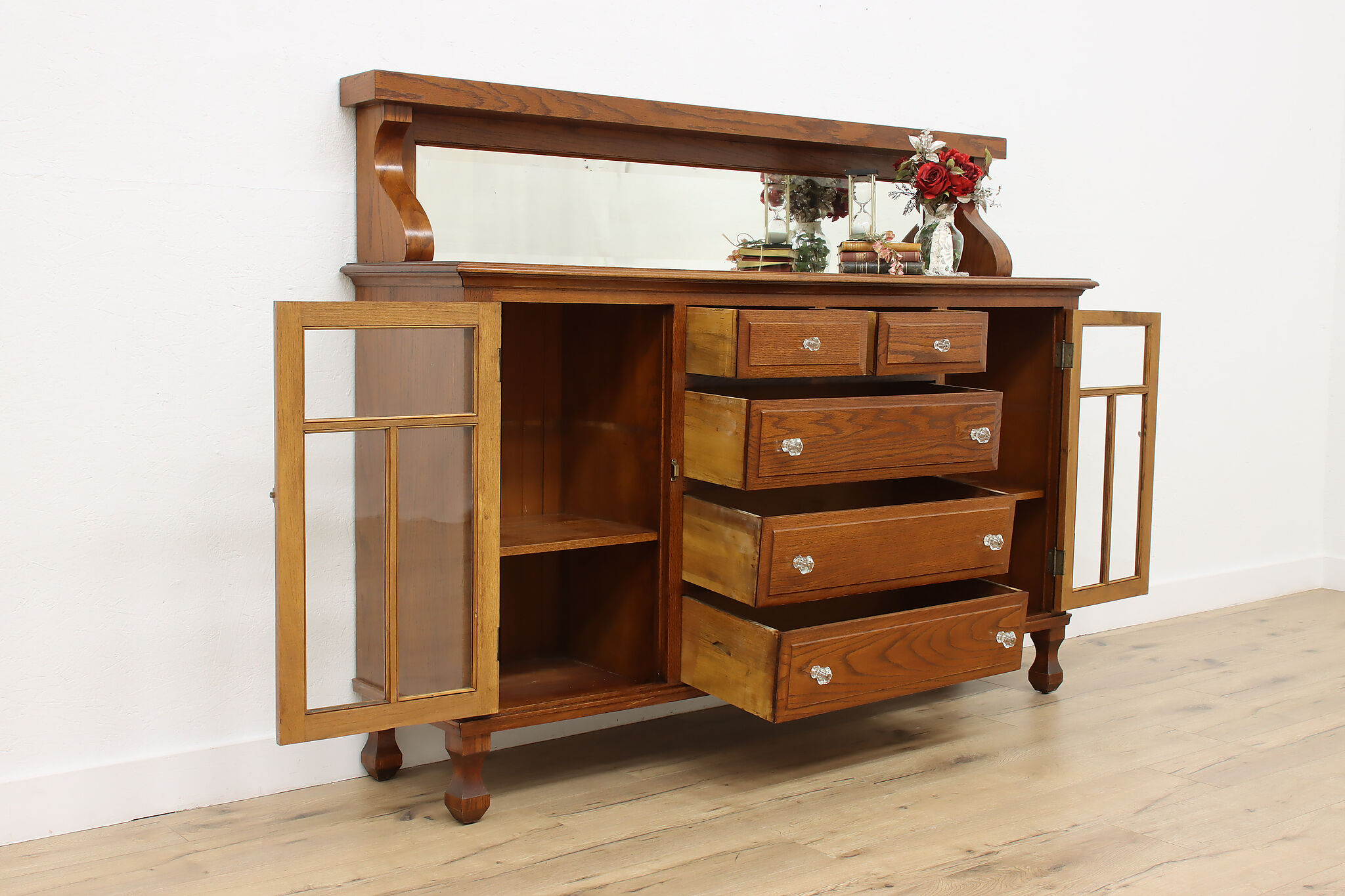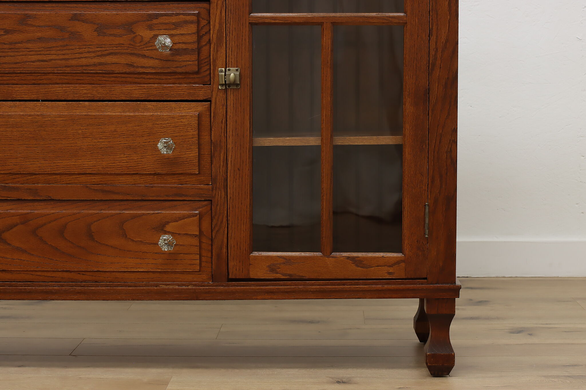 This Craftsman sideboard or bar cabinet is a stunning example of the of the Arts & Crafts era.
