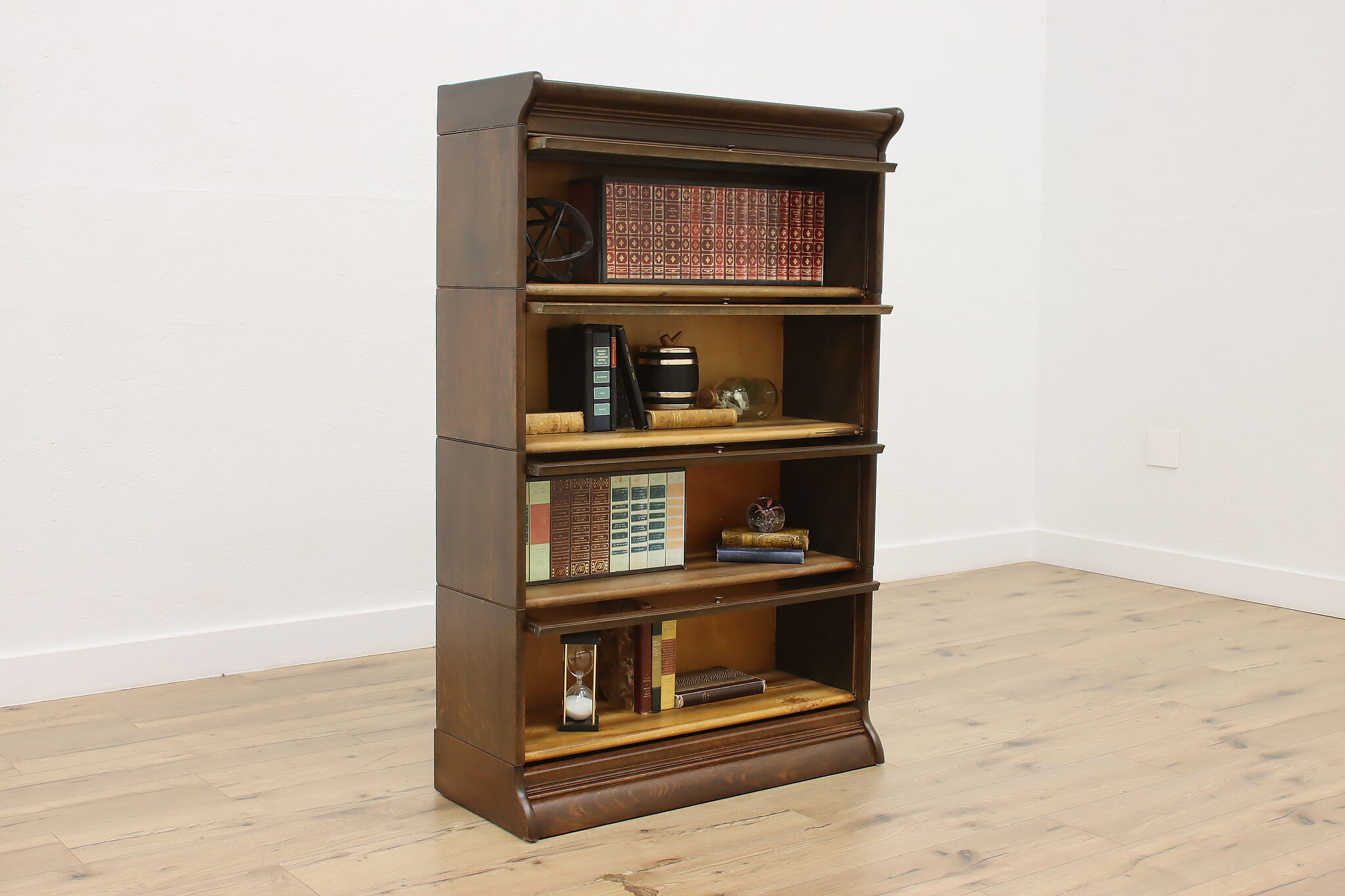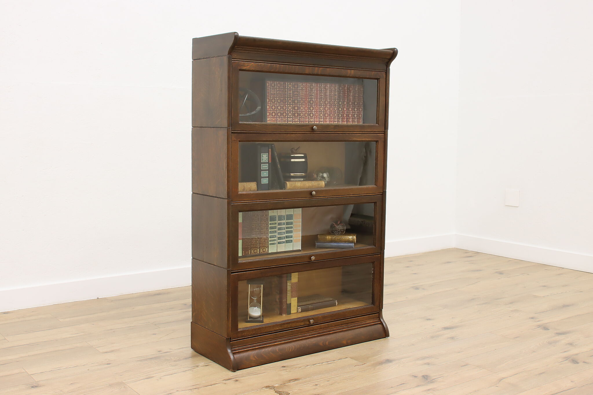 Stacking "lawyer" bookcase cabinets like this one make for easy transport and moving! When assembled, they provide fantastic bookshelf space to display precious novels and treasures.