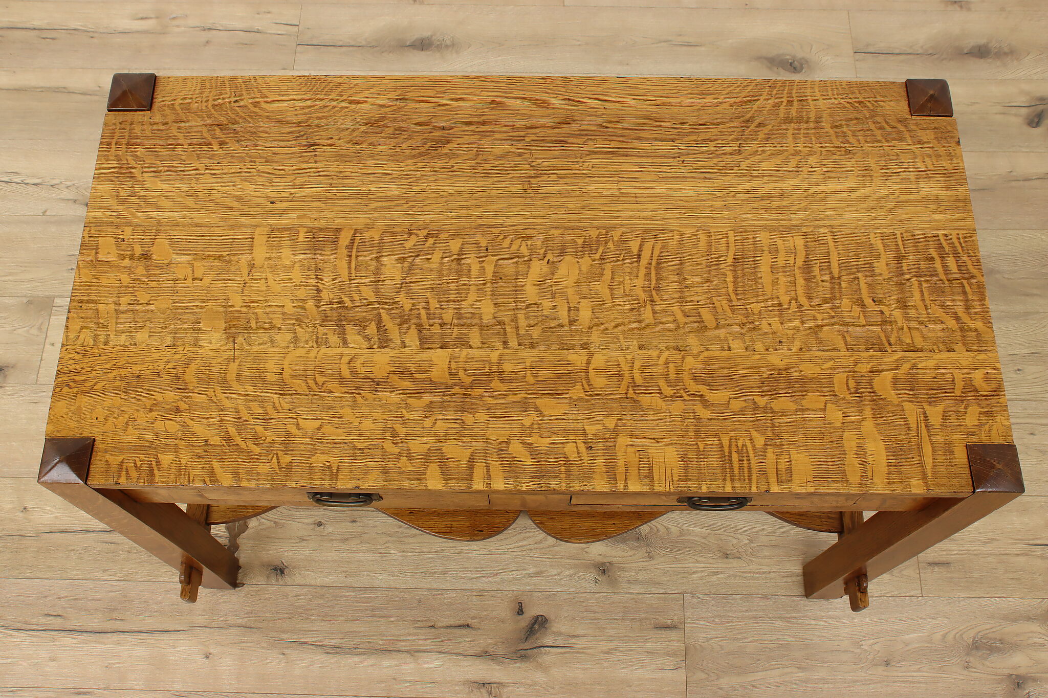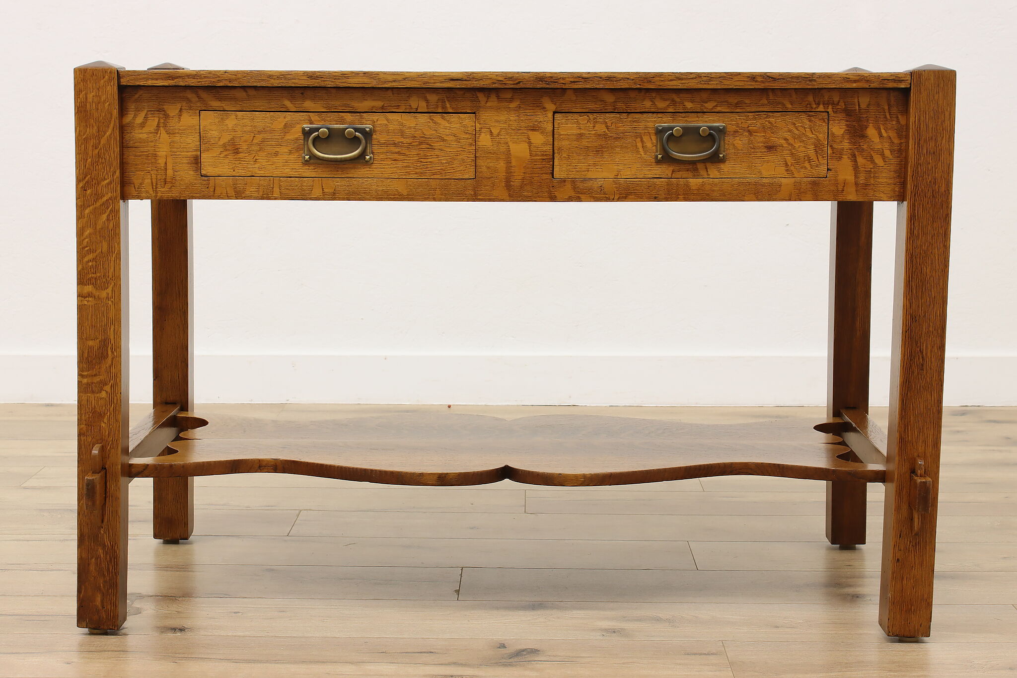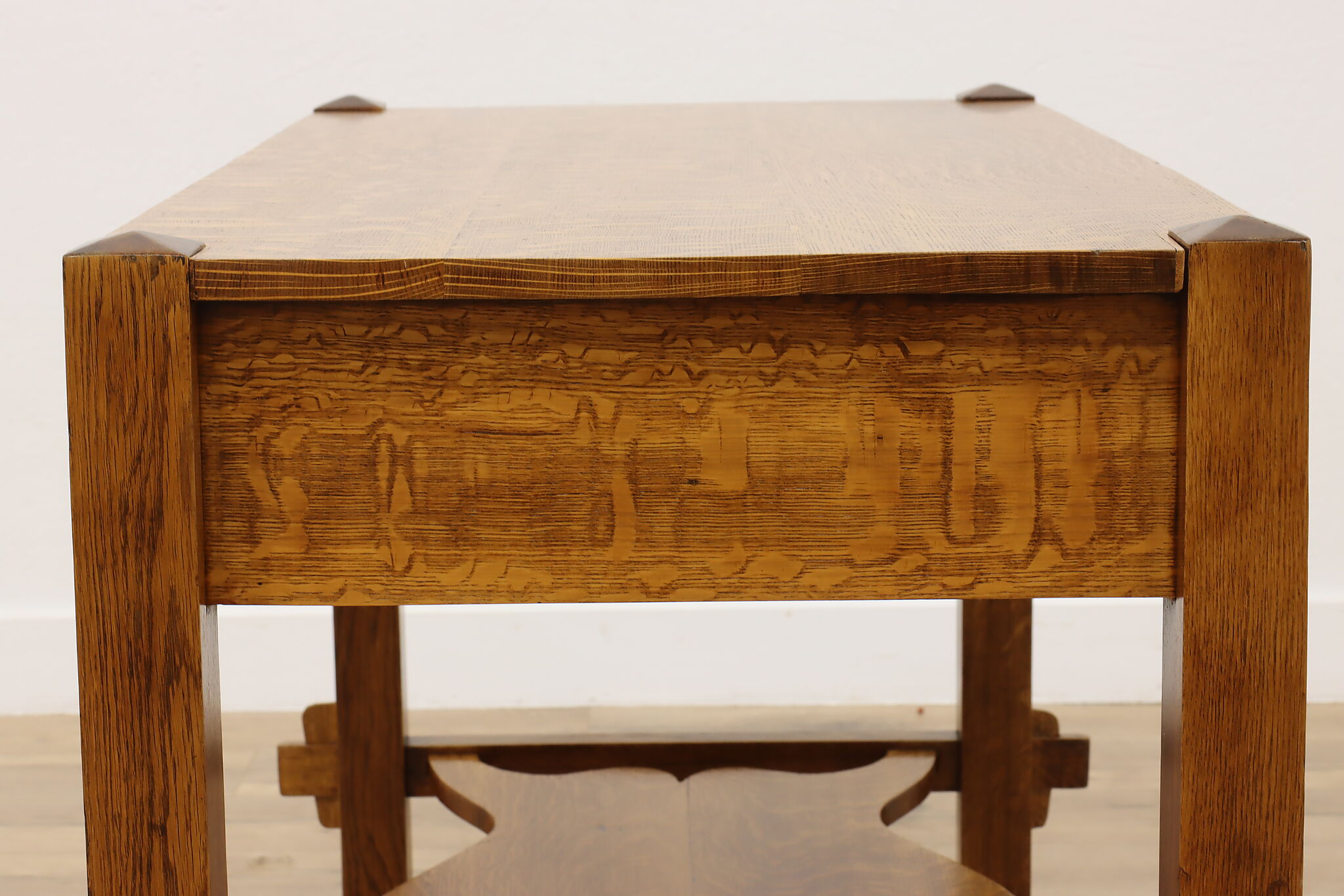 This fantastic Arts & Crafts or Mission Oak period library table or office desk has charming mortise and tenon joints