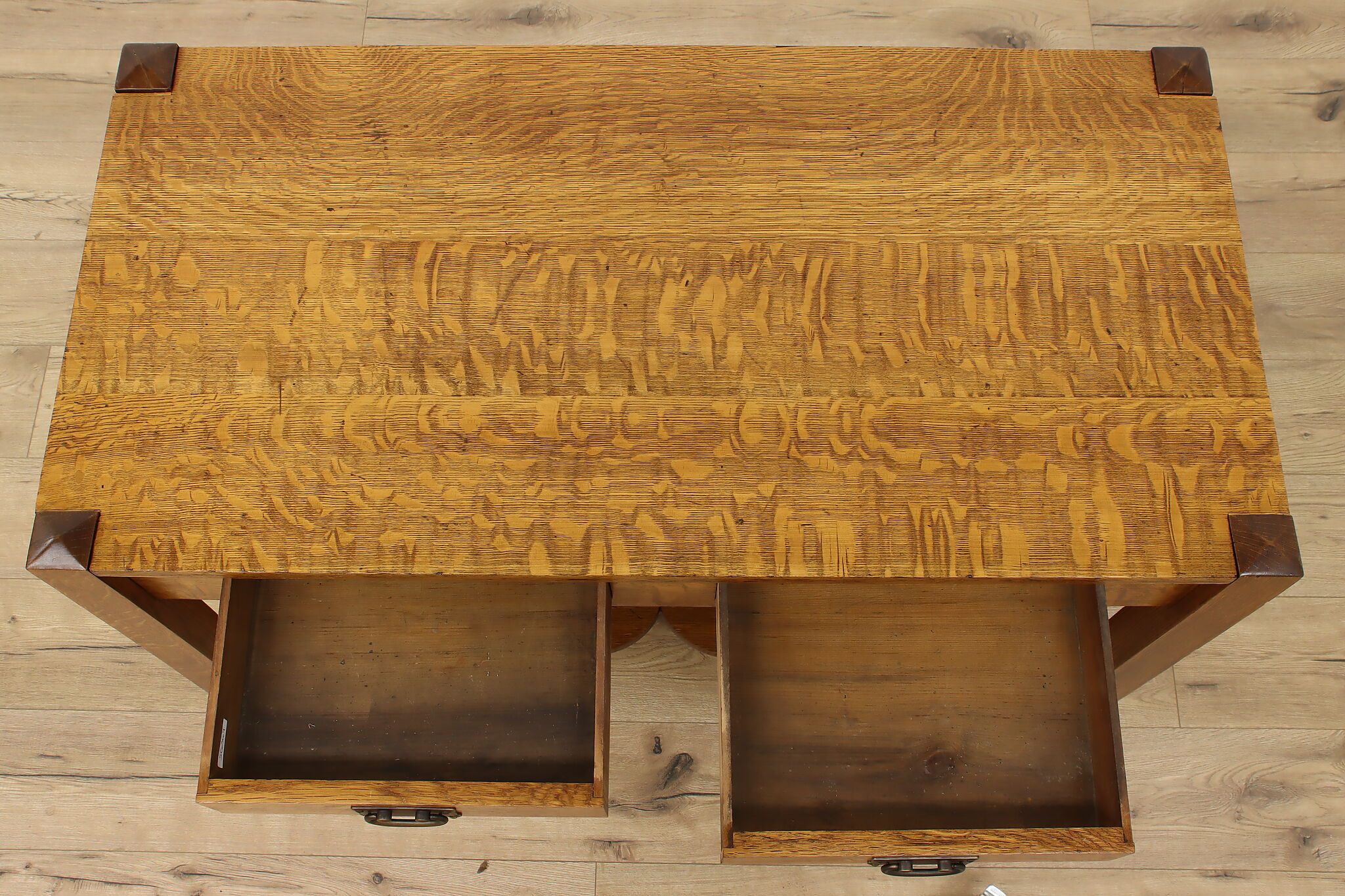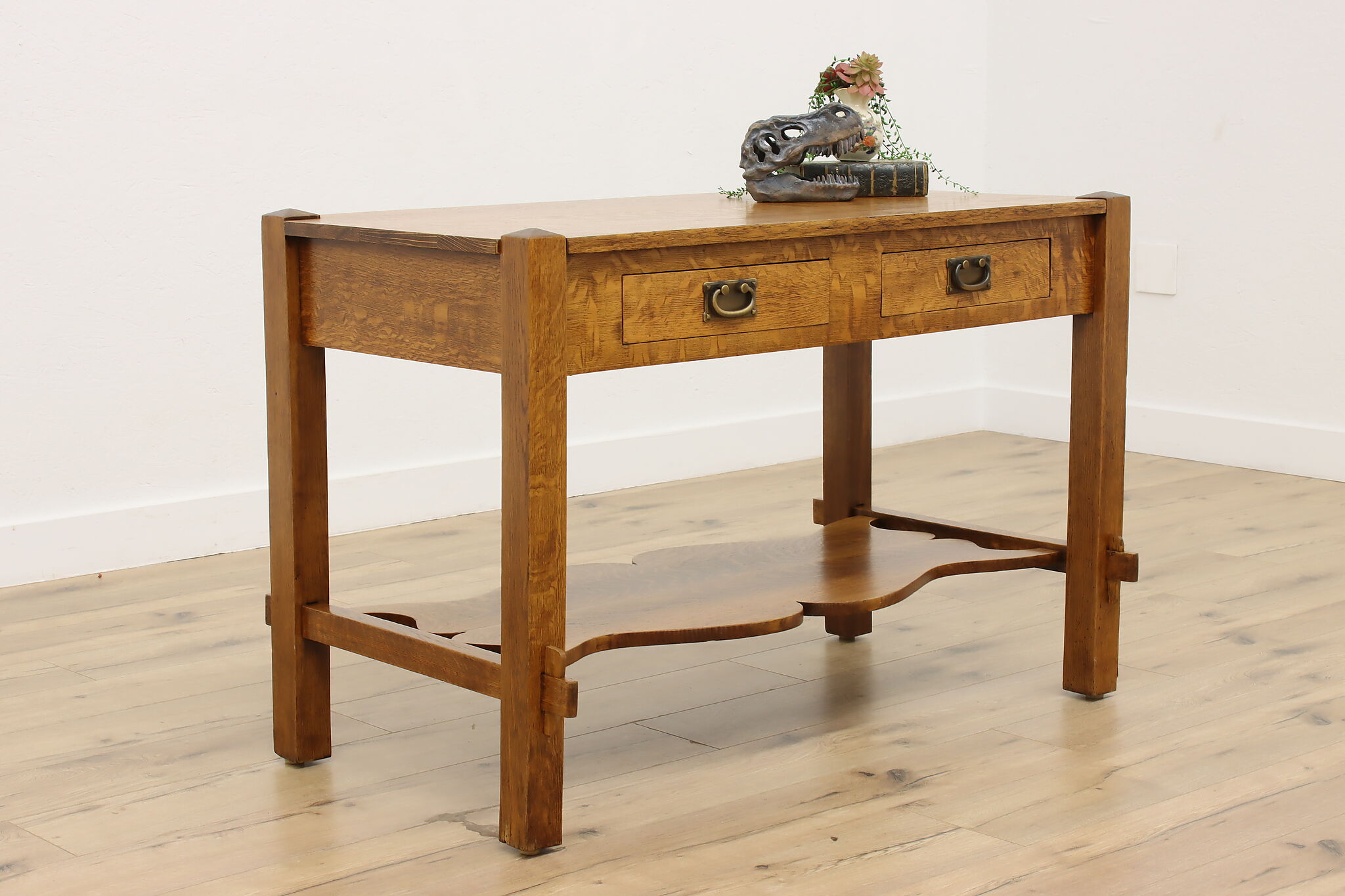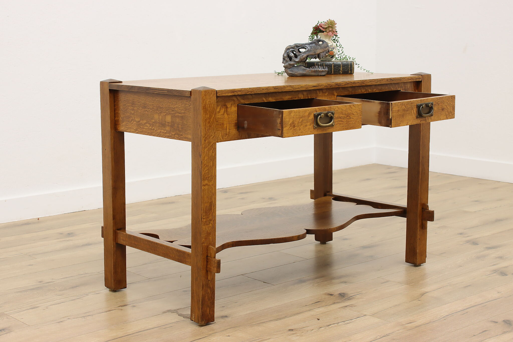 This fantastic Arts & Crafts or Mission Oak period library table or office desk has charming mortise and tenon joints