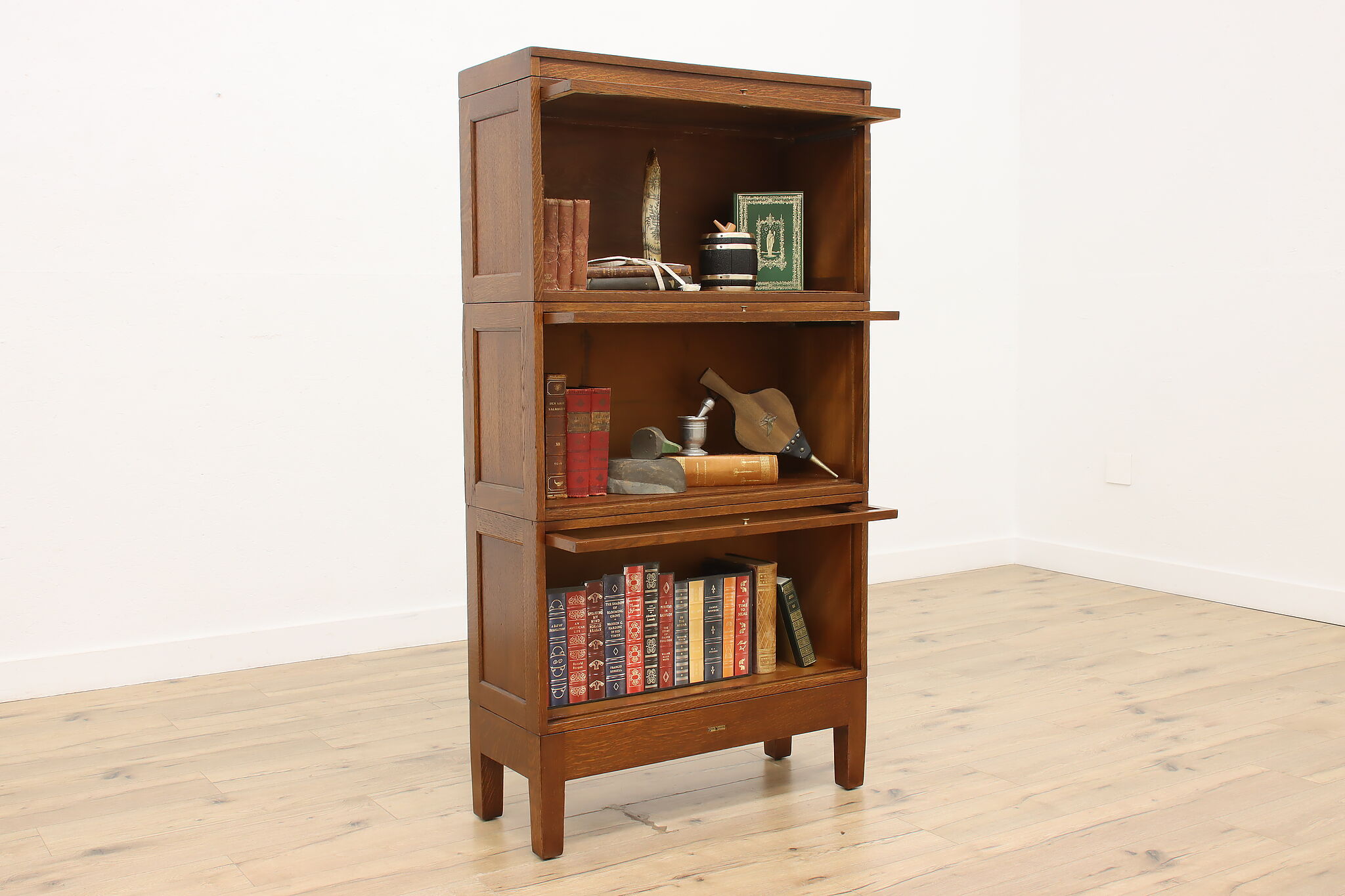Popularized by lawyers, this stacking bookcase with extra large sections is an excellent option for your library and its wide shelves are great for displaying cherished treasures.