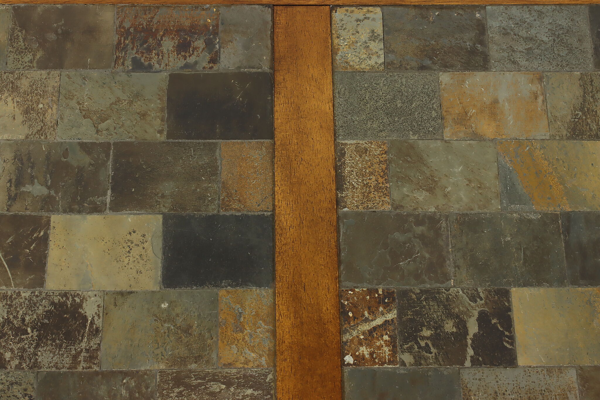 Designed after the fantastic Arts & Crafts era, this coffee table has a gorgeous "weathered" stone top.