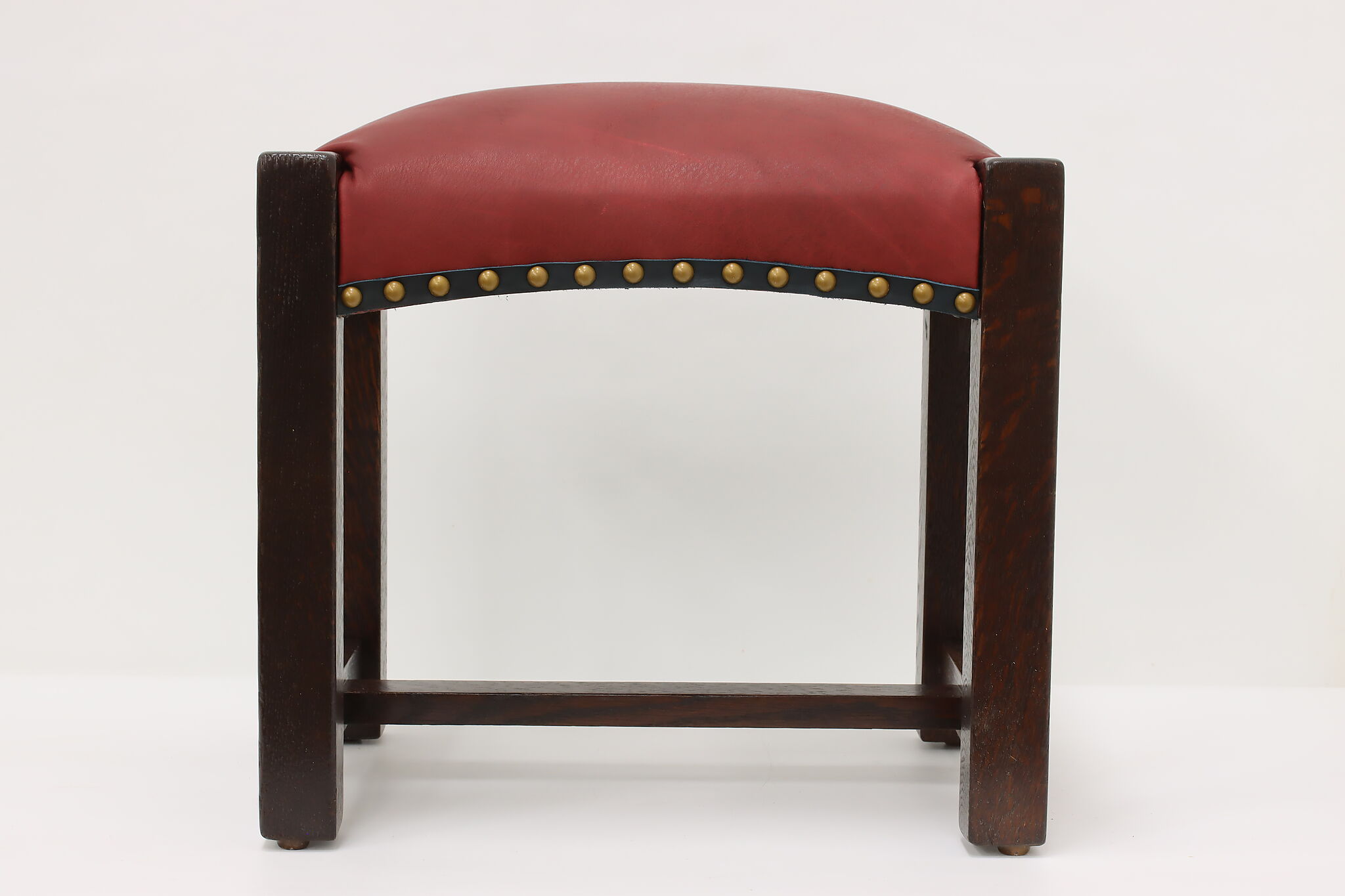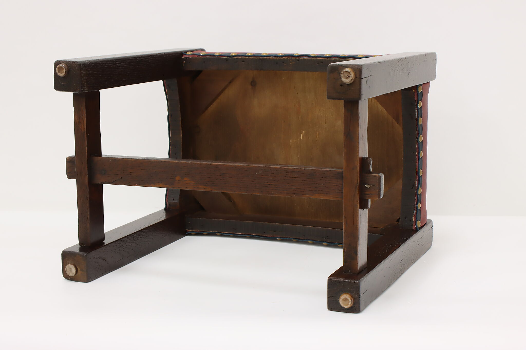 A delightful footstool or small bench dates from the Arts & Crafts or Mission Oak period.