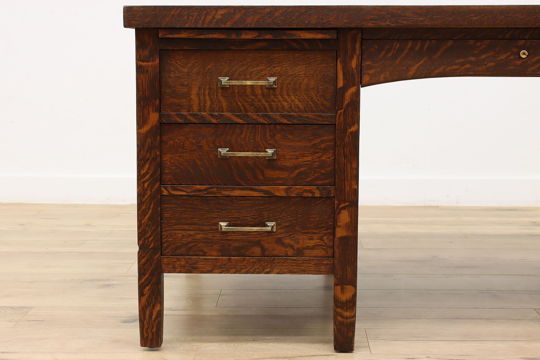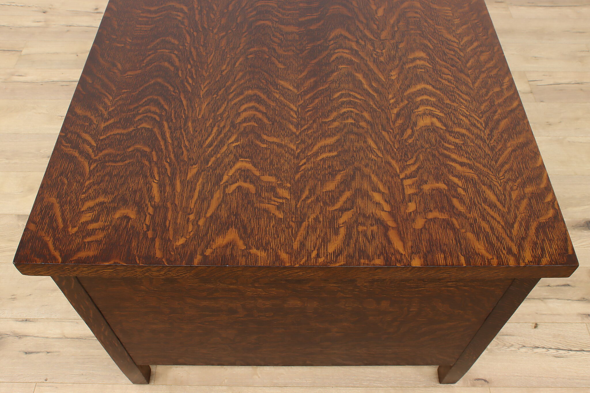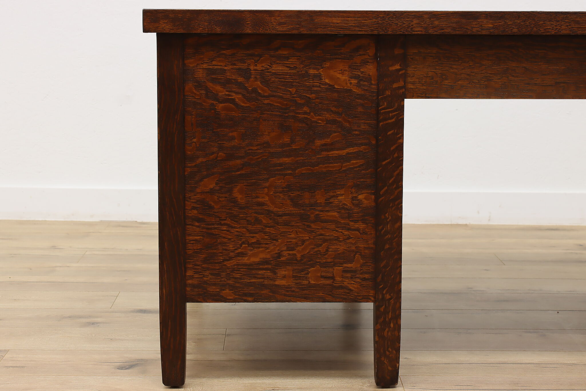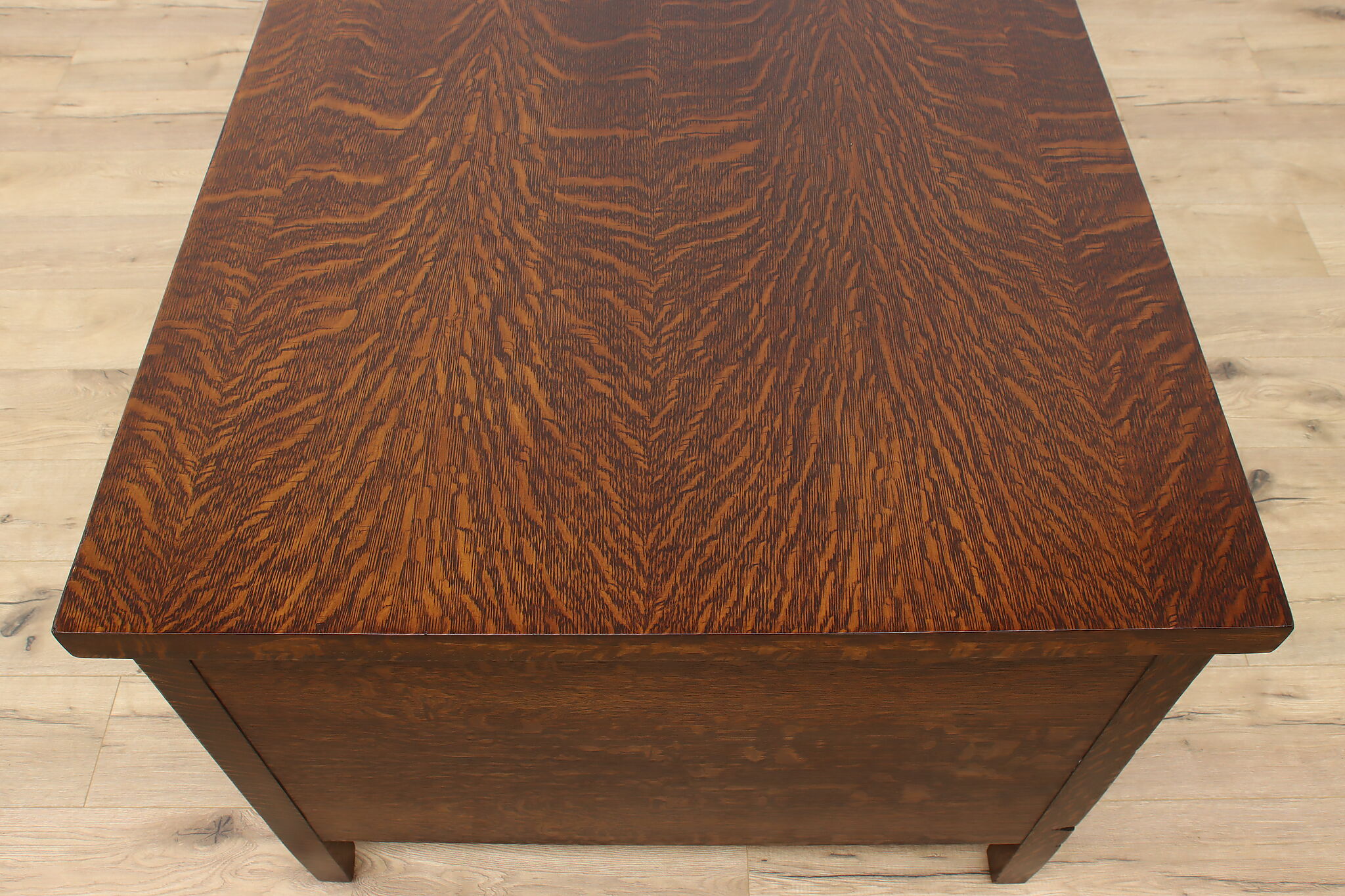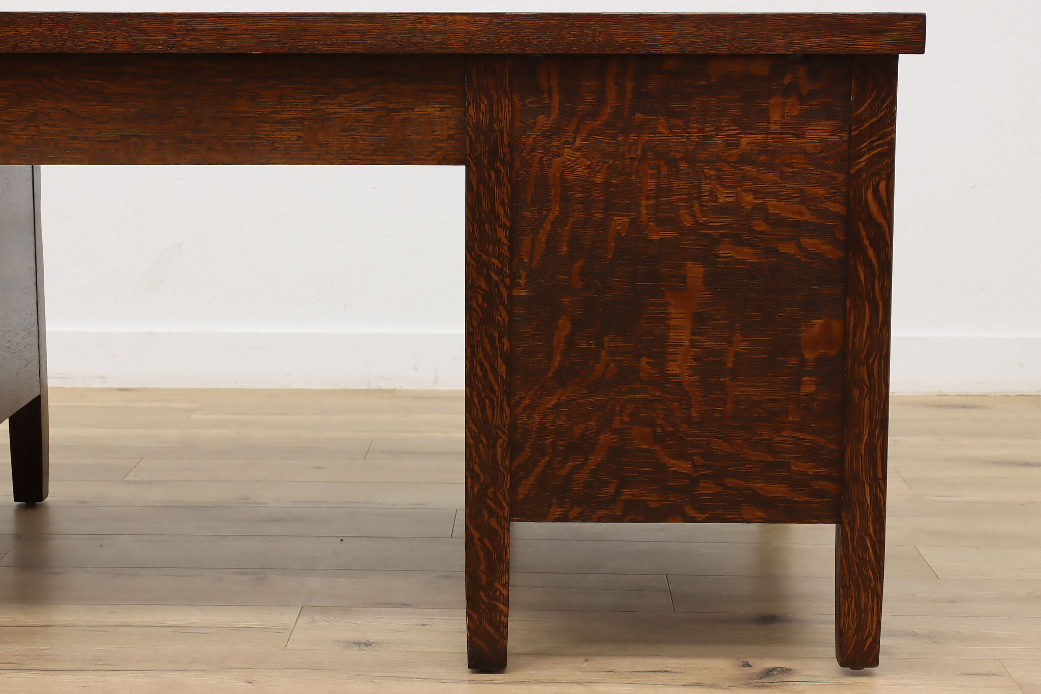 A Craftsman era office or library desk is gorgeous quarter sawn oak with bold natural grain.