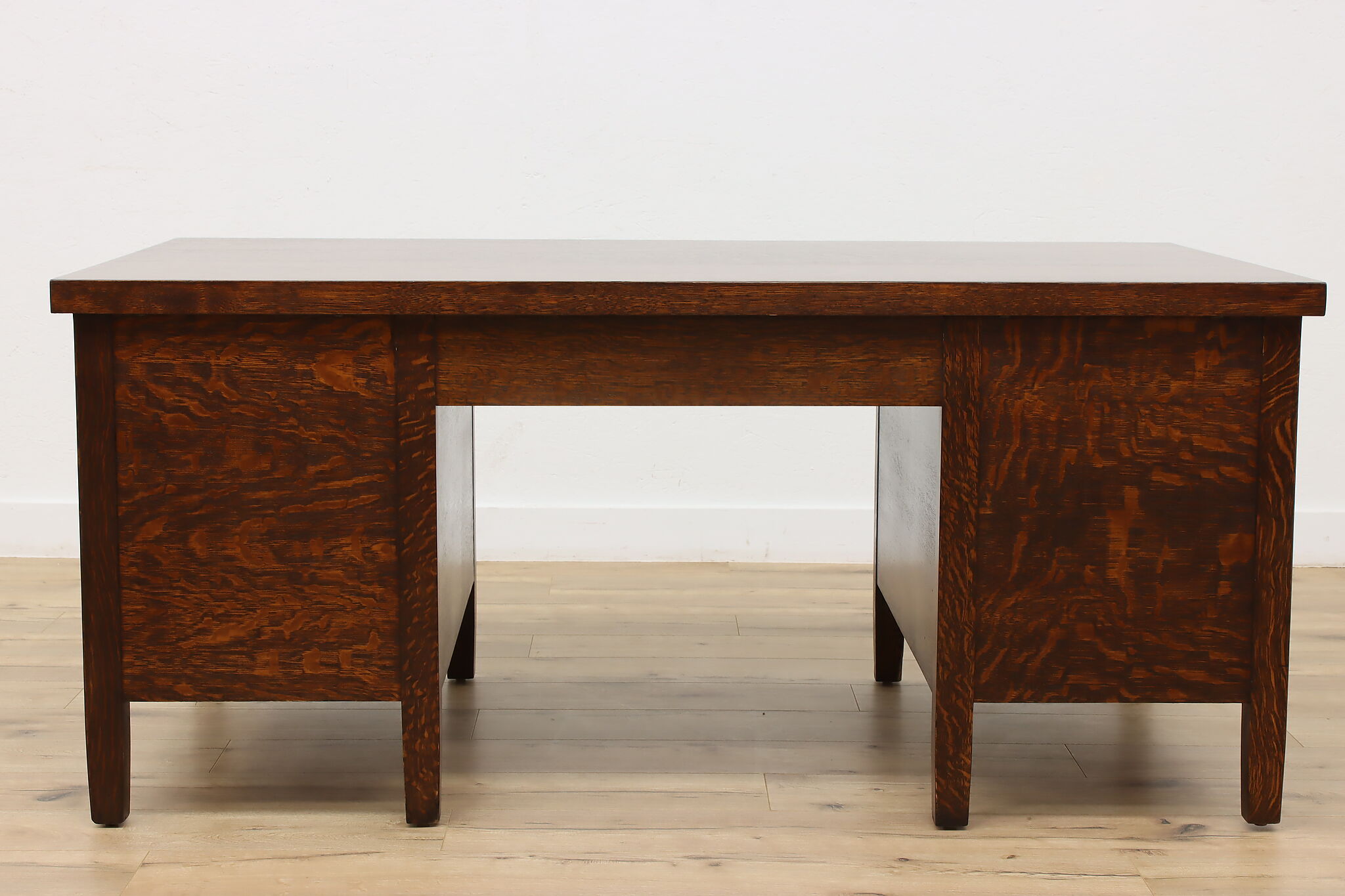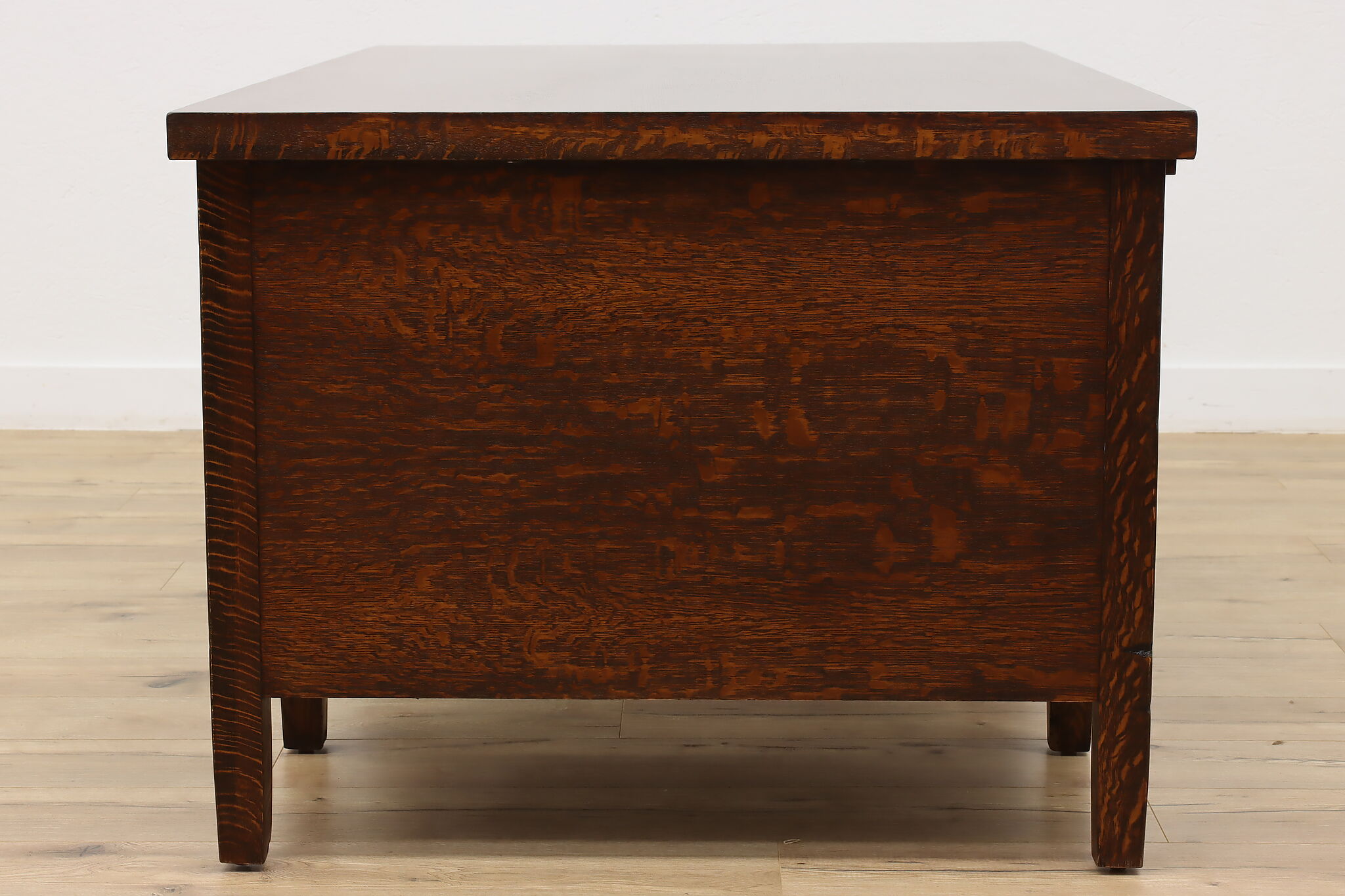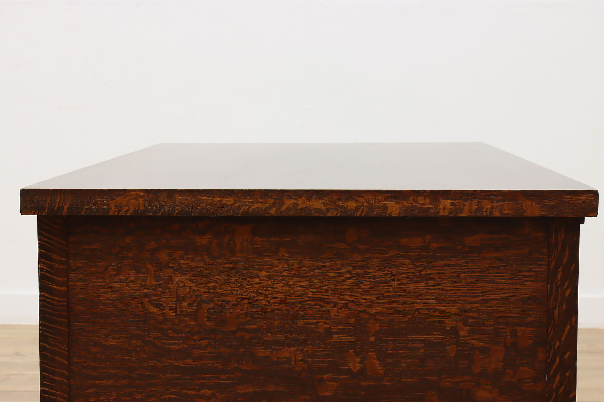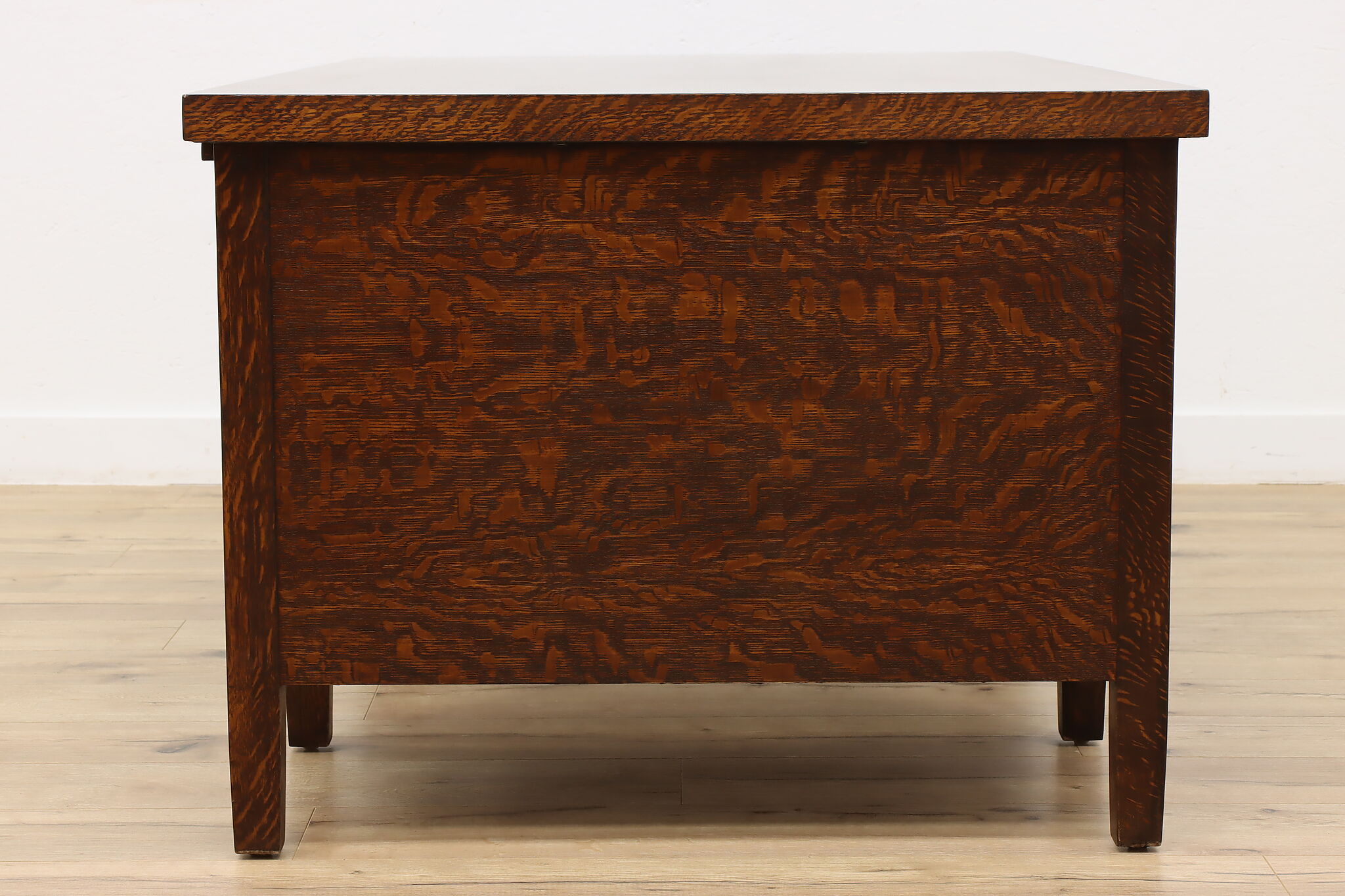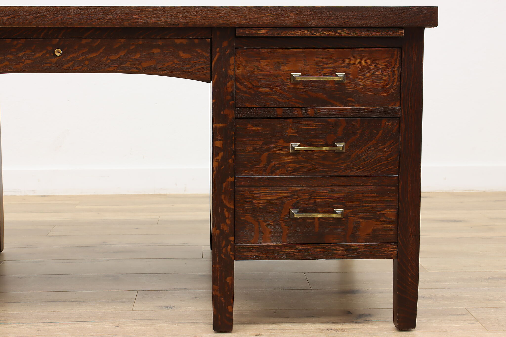 A Craftsman era office or library desk is gorgeous quarter sawn oak with bold natural grain.
