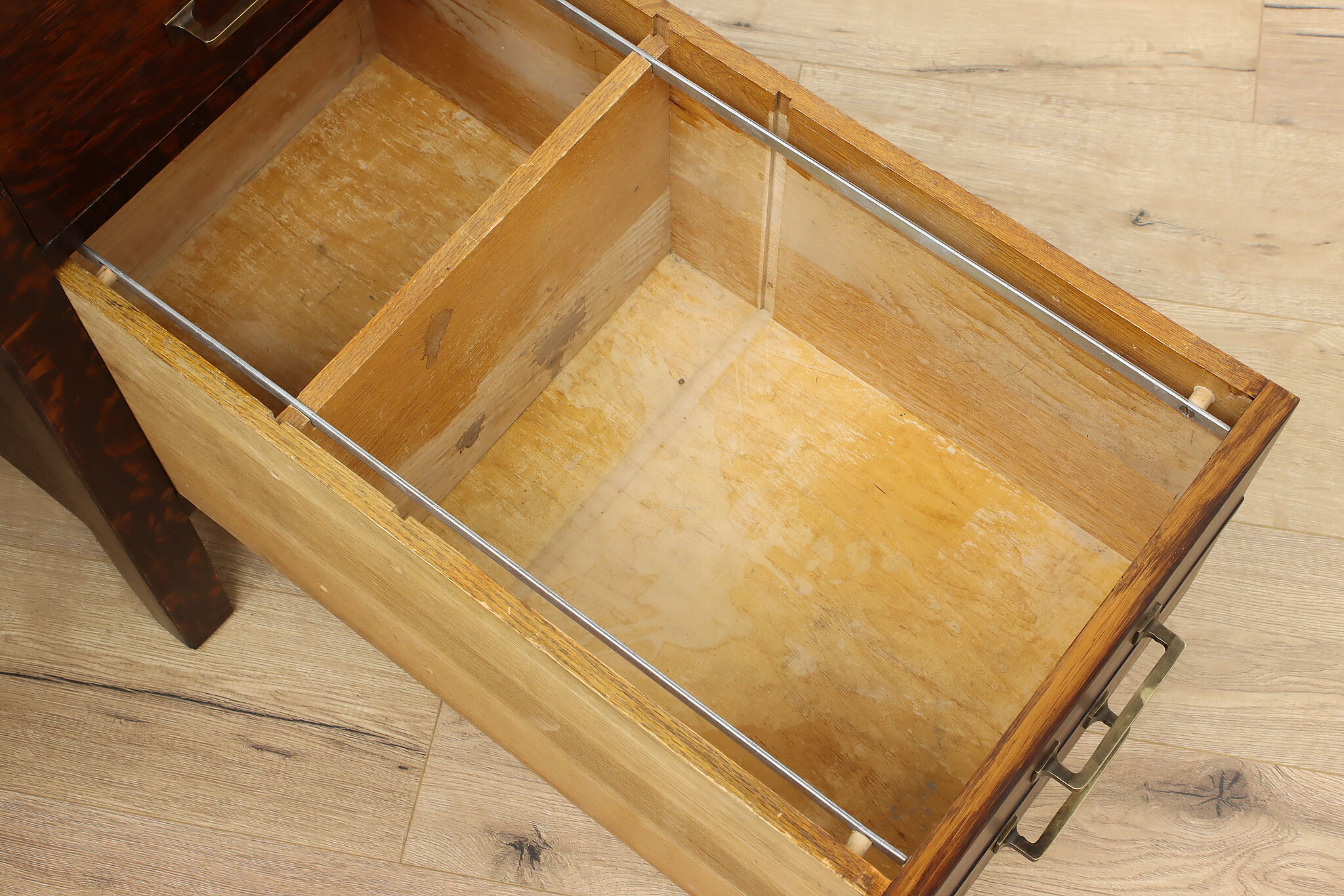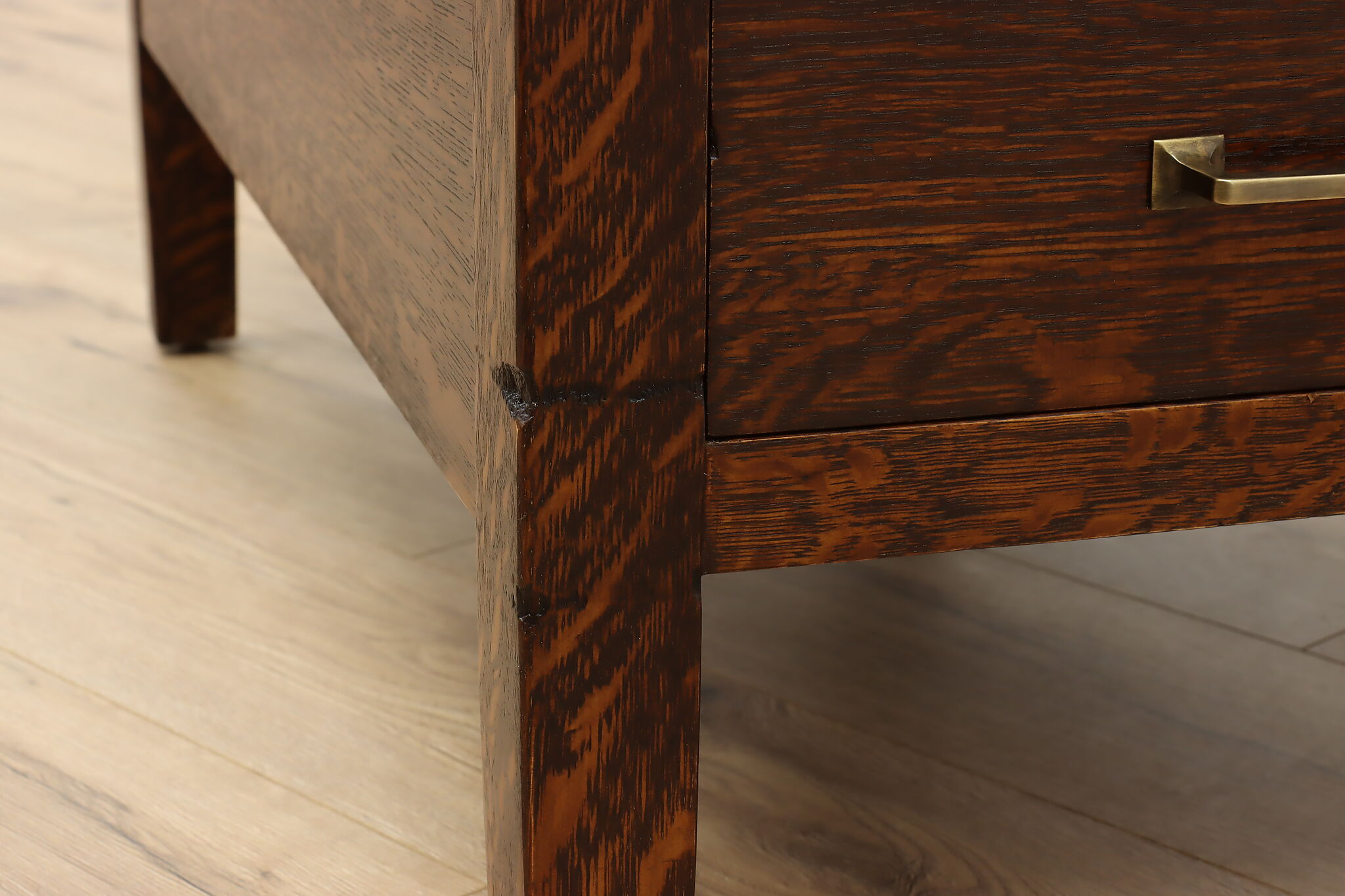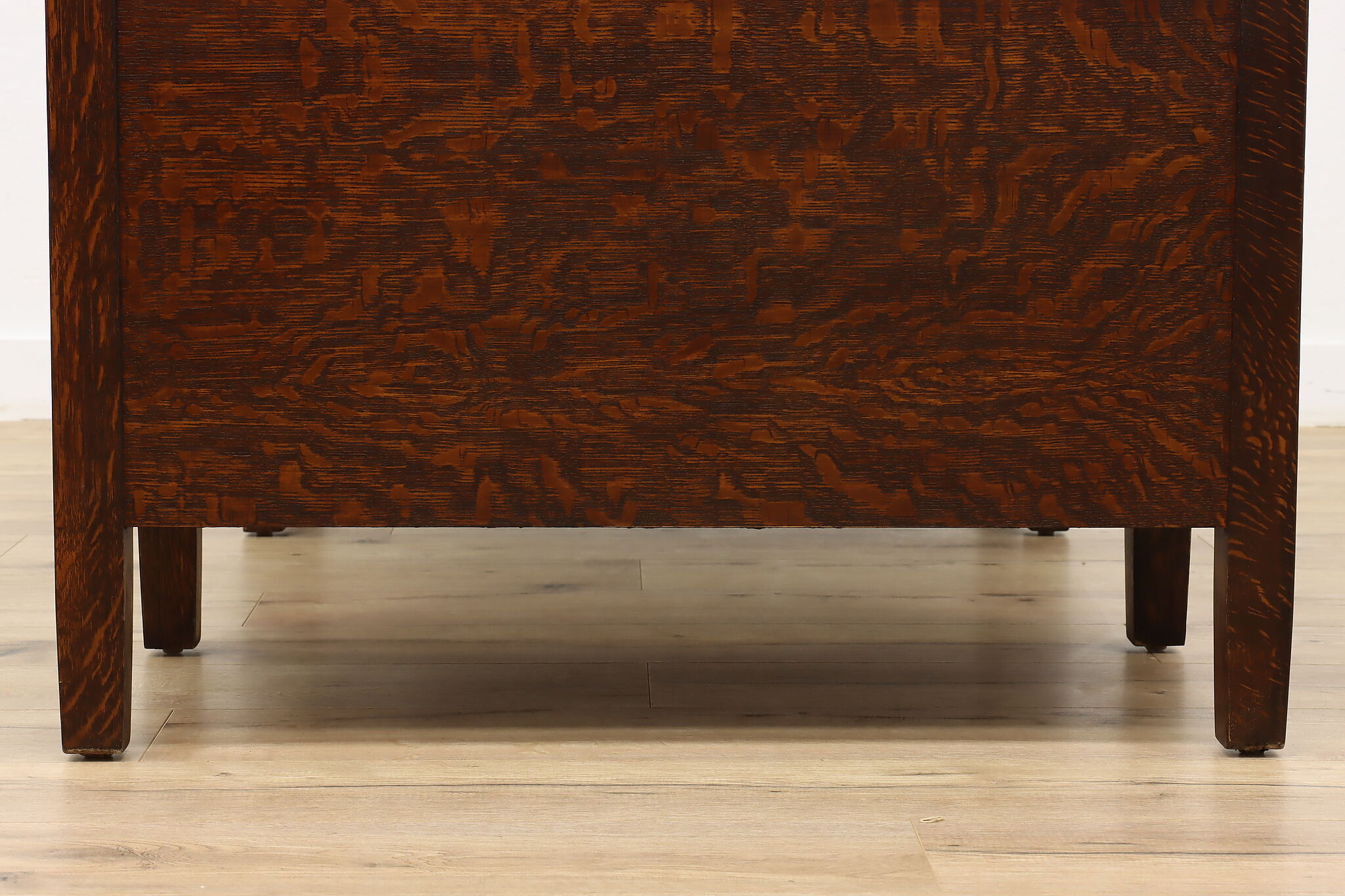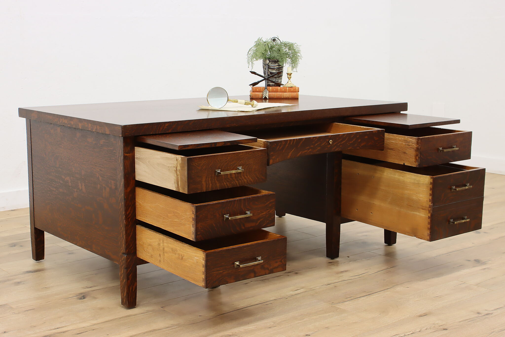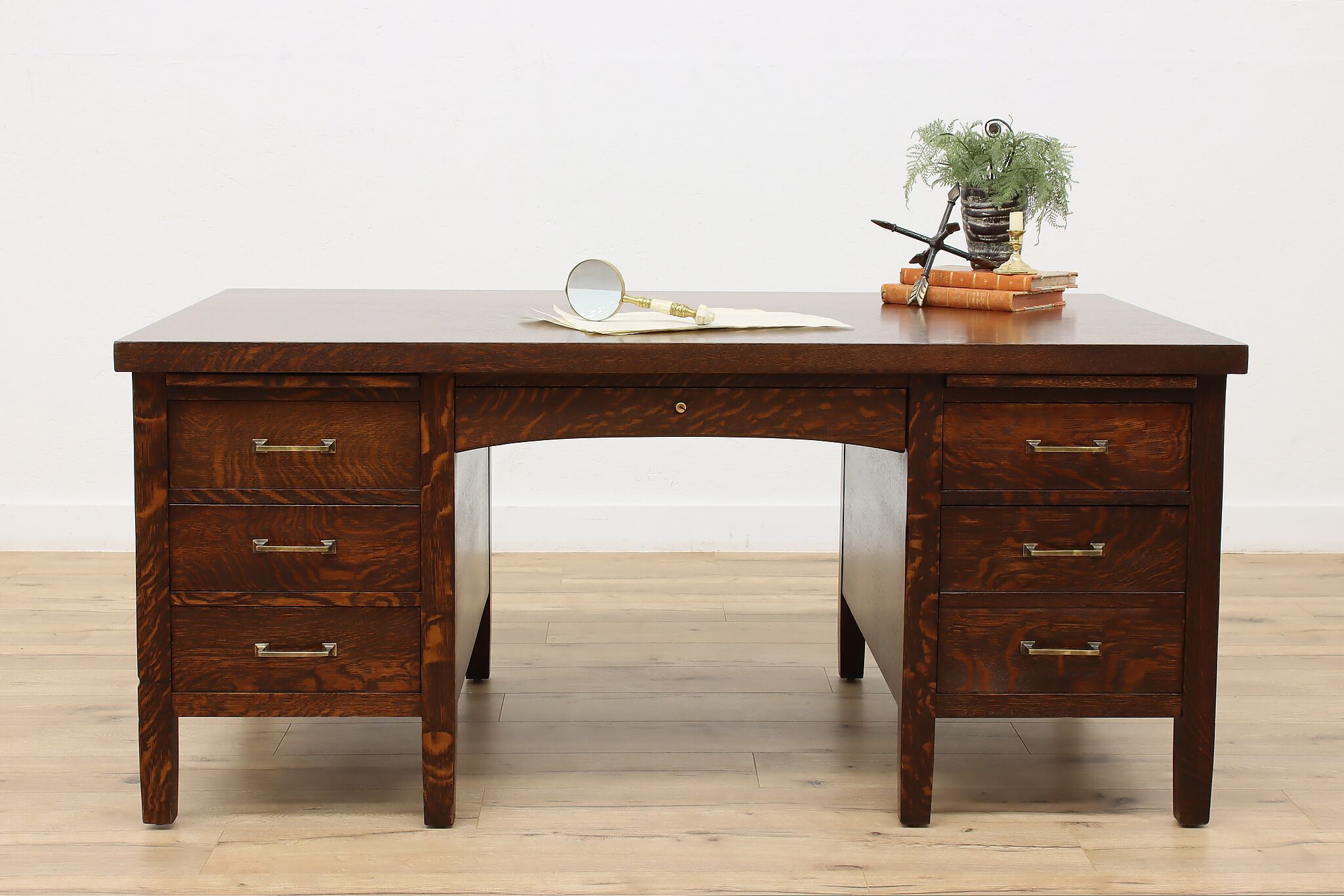 A Craftsman era office or library desk is gorgeous quarter sawn oak with bold natural grain.