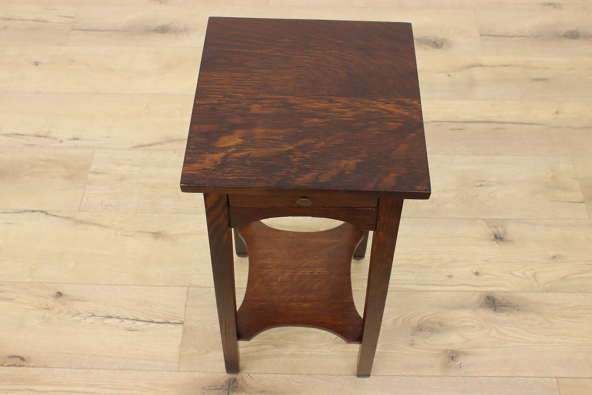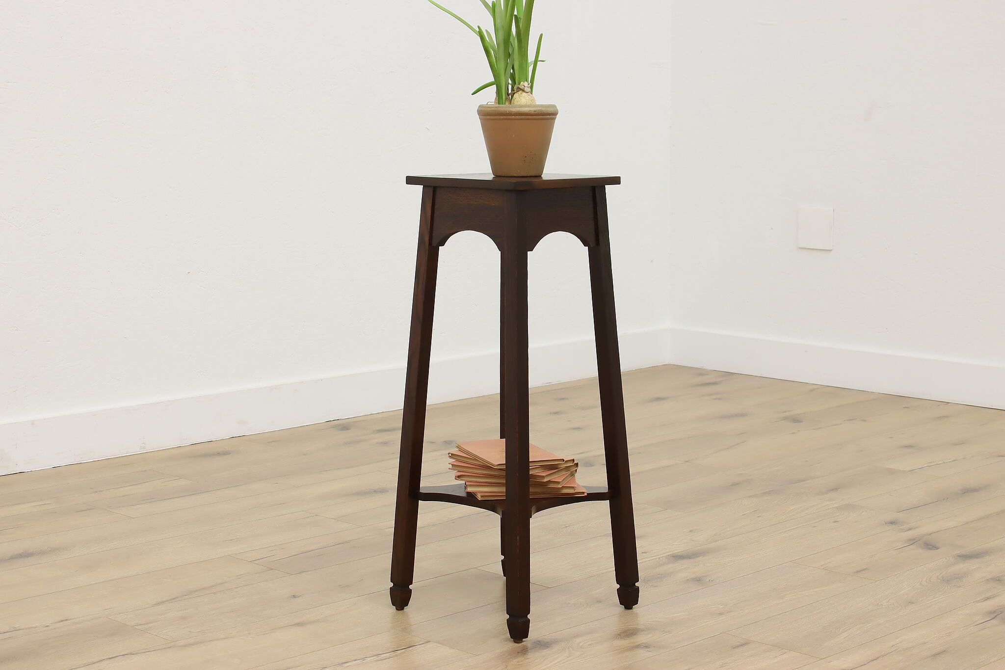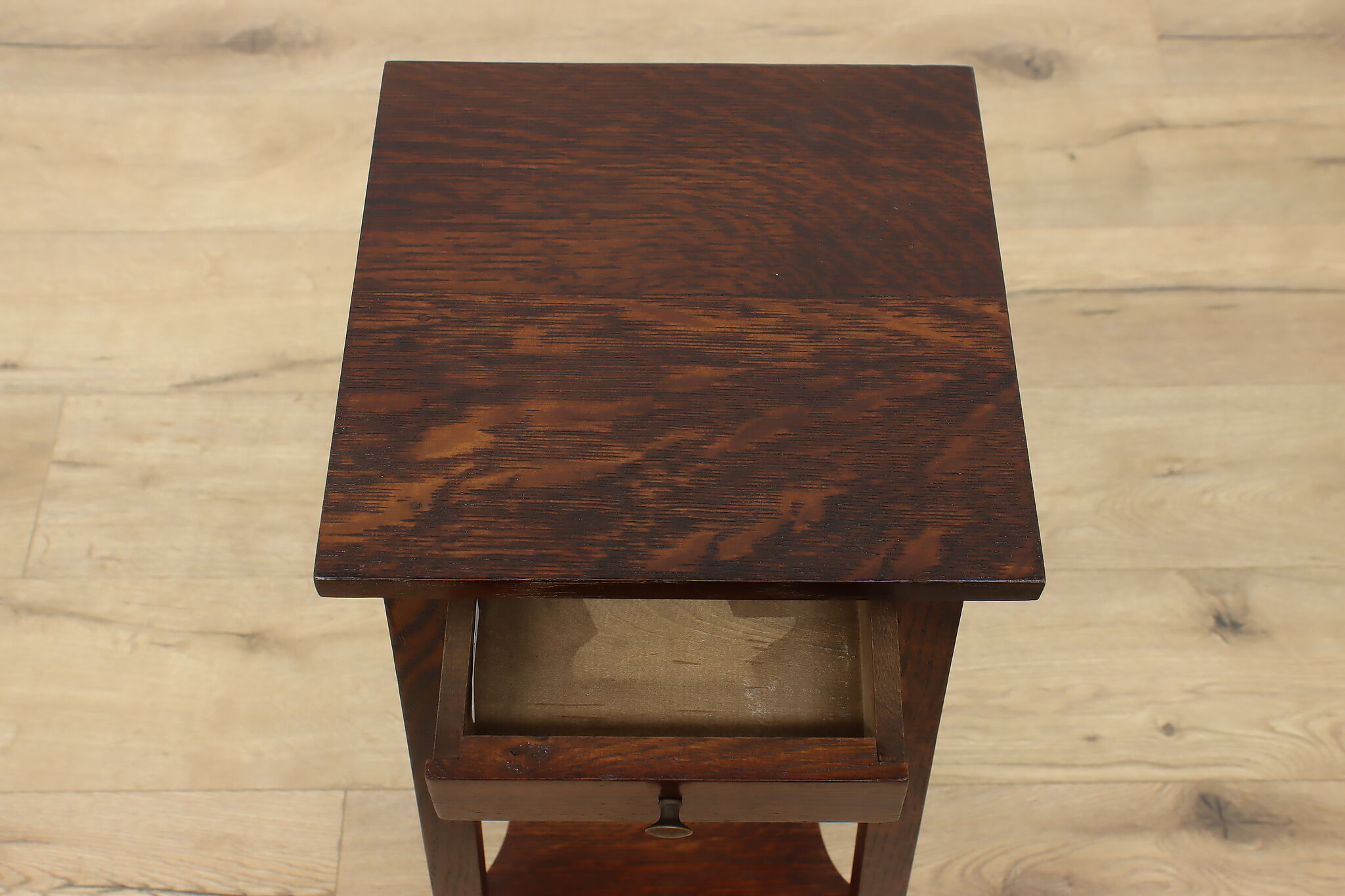 This darling Craftsman chairside smoking stand or plant pedestal is from the Arts and Crafts or Mission Oak period.