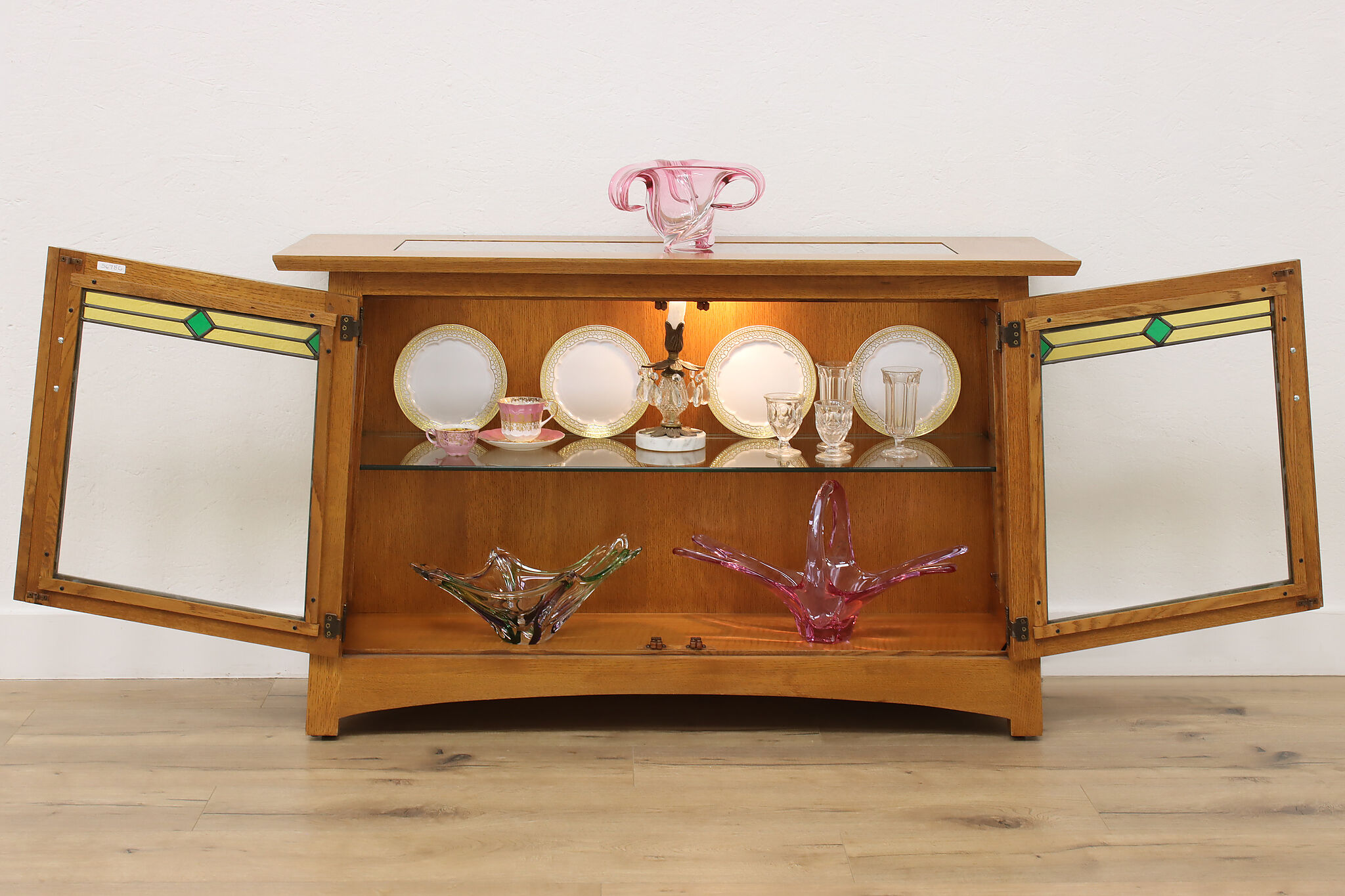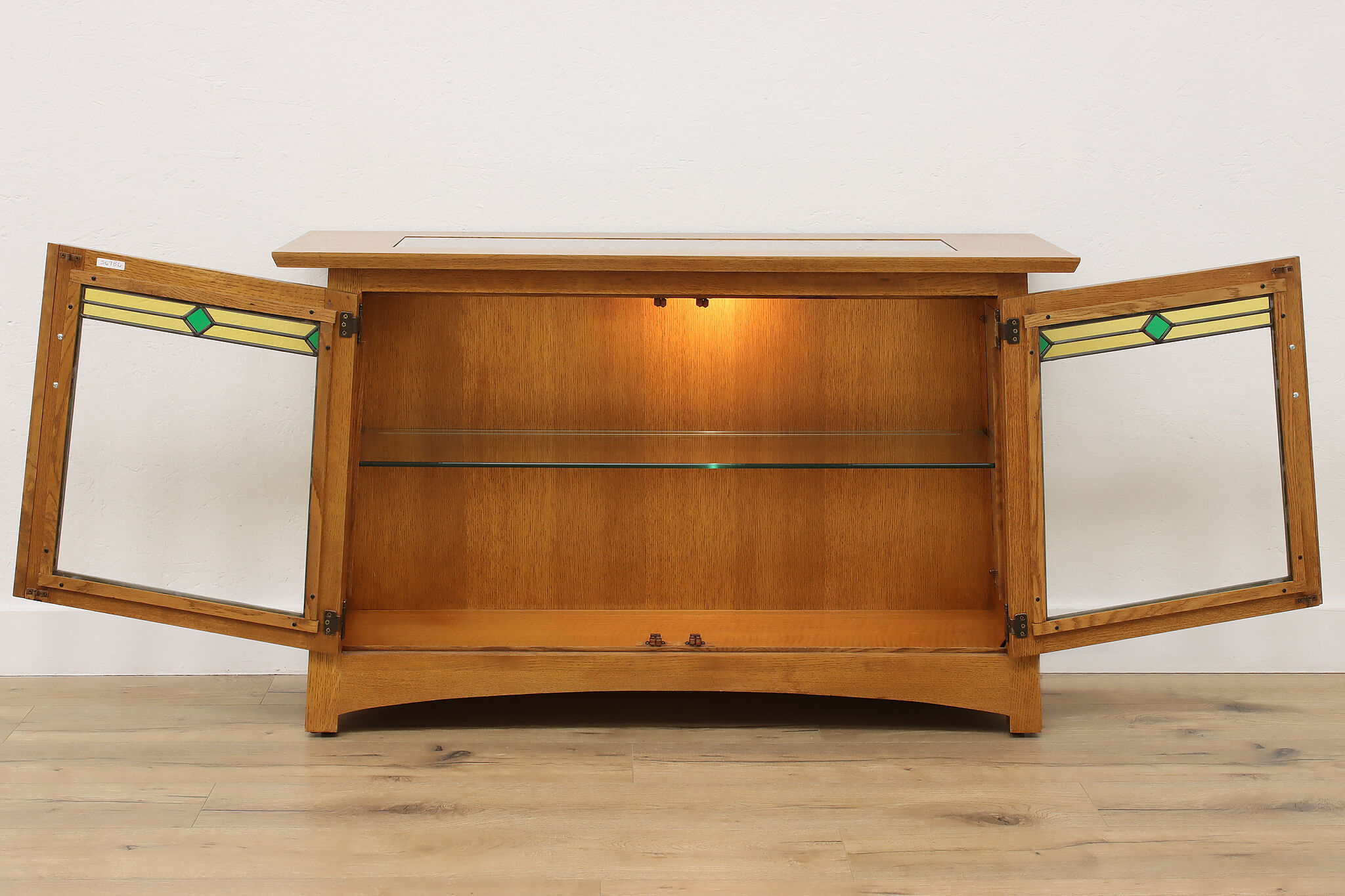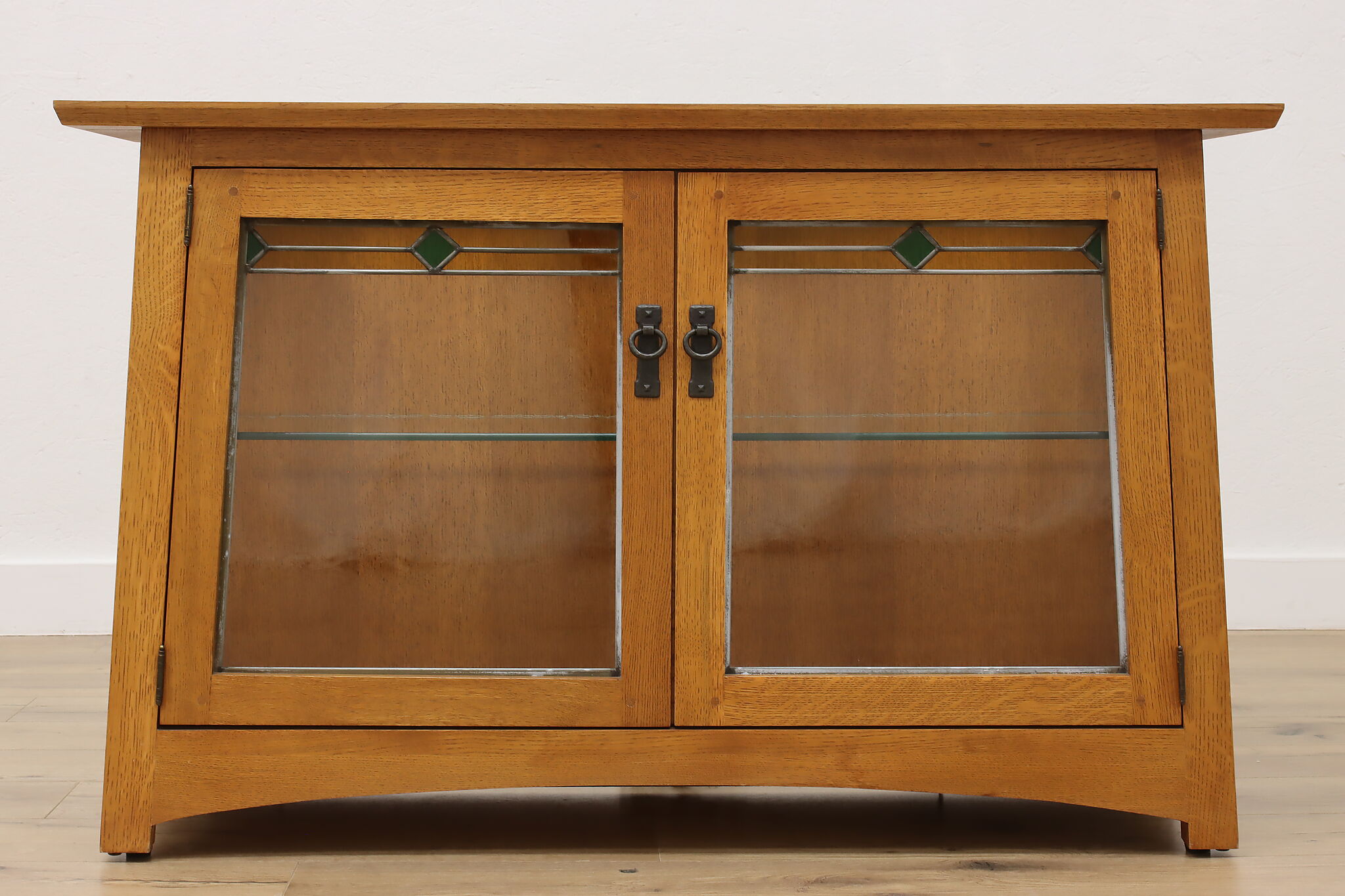 This beautiful Craftsman design console is the perfect place to display both prized treasures and a TV as well!