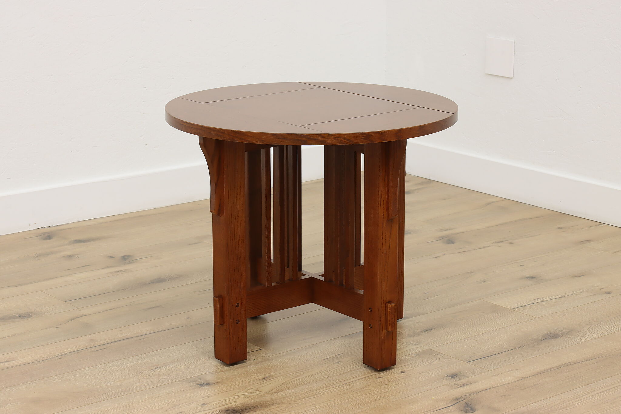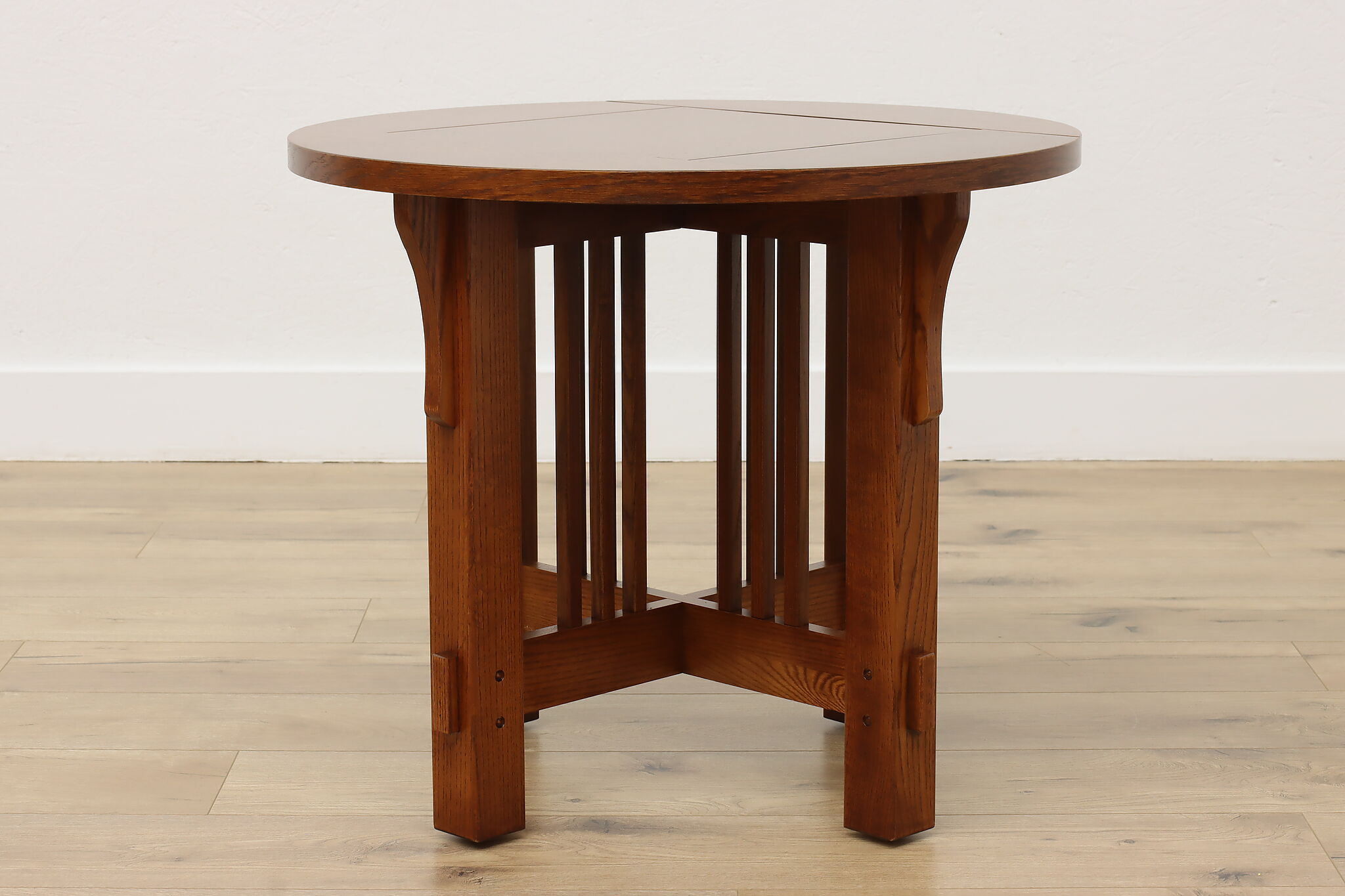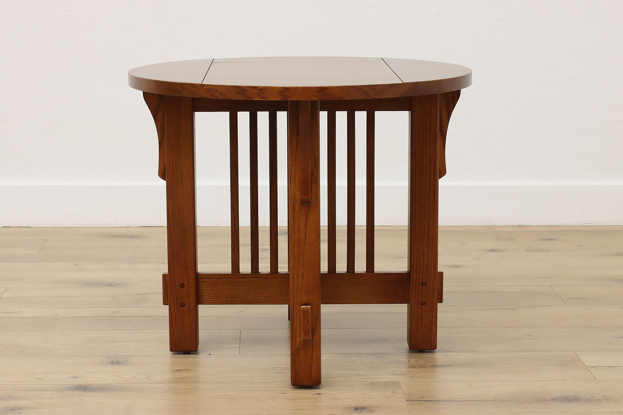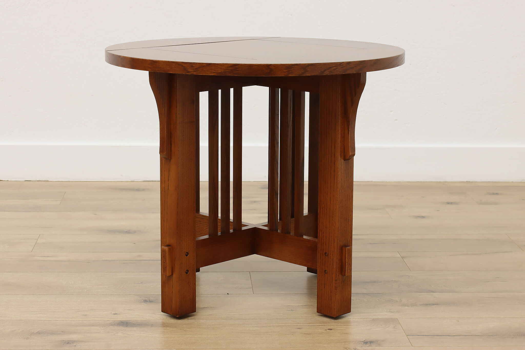 Little over a century later, craftsman period design remains popular for its clean lines and sturdy construction. Place this round chair side or end table in your living room to add definition and antique charm.