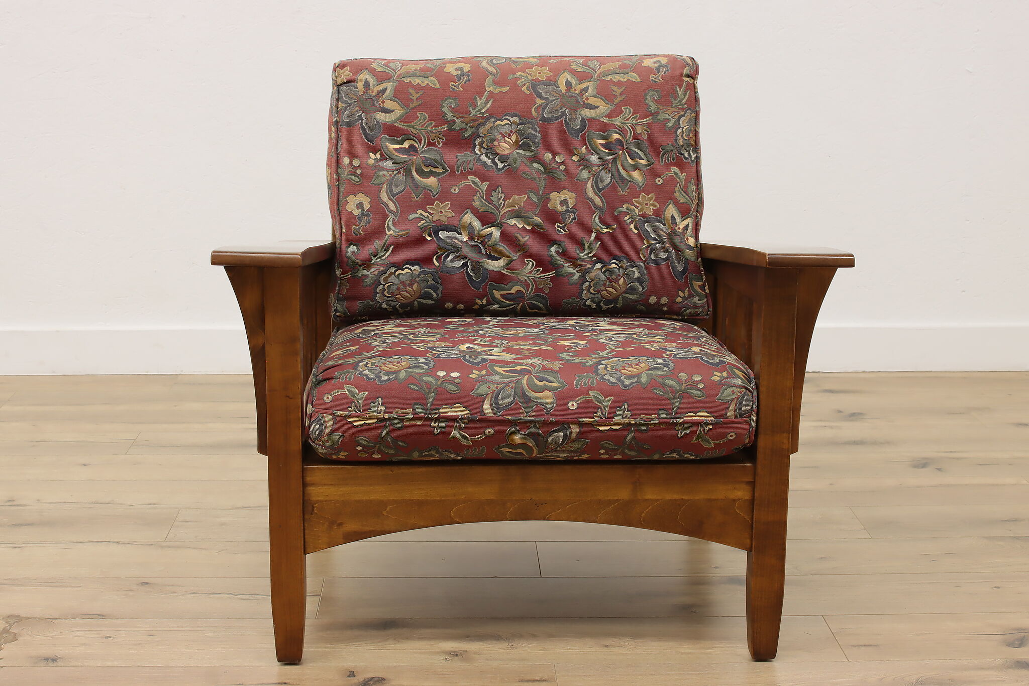 This gorgeous library or office armchair was designed after the Craftsman era.