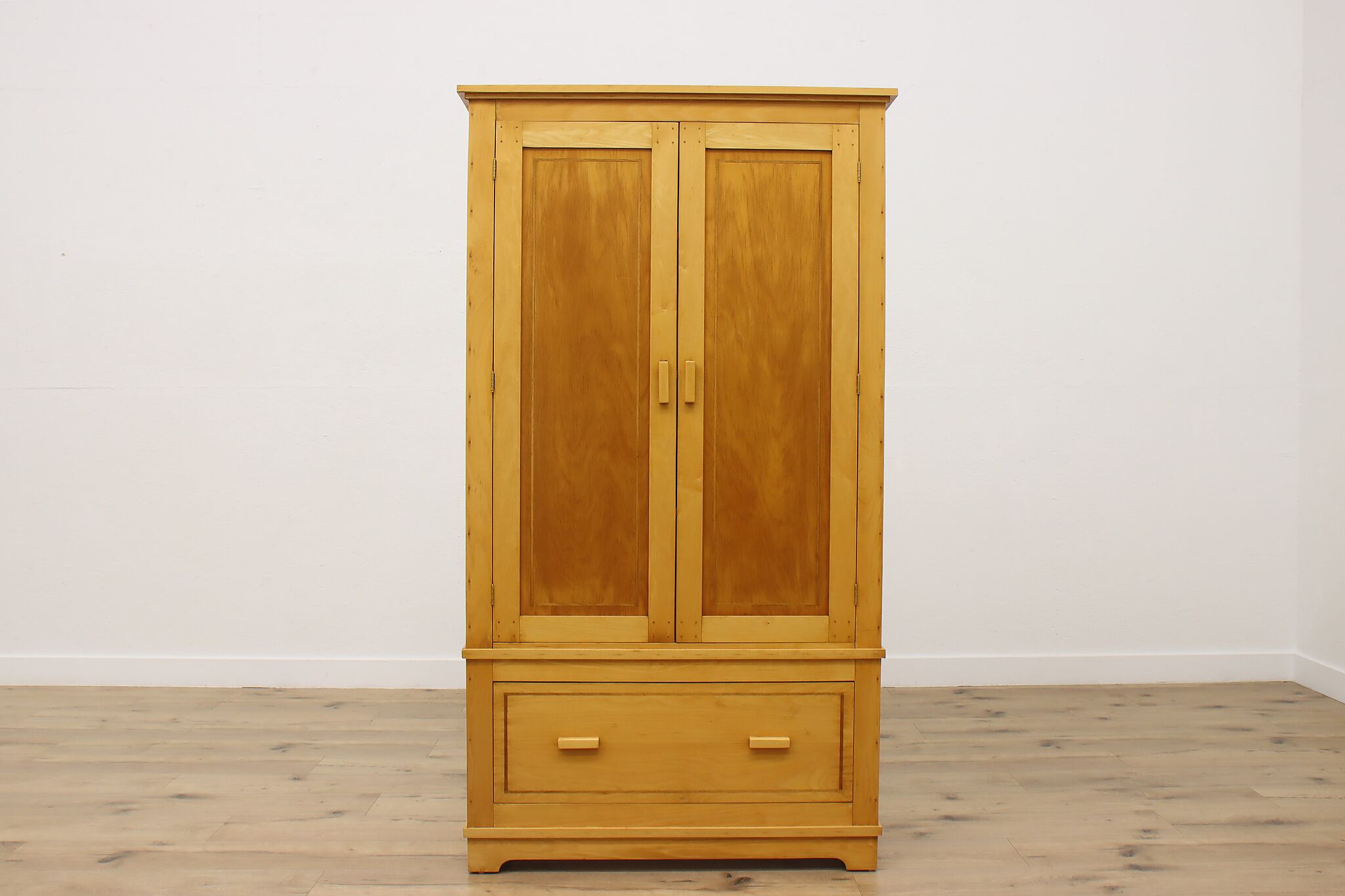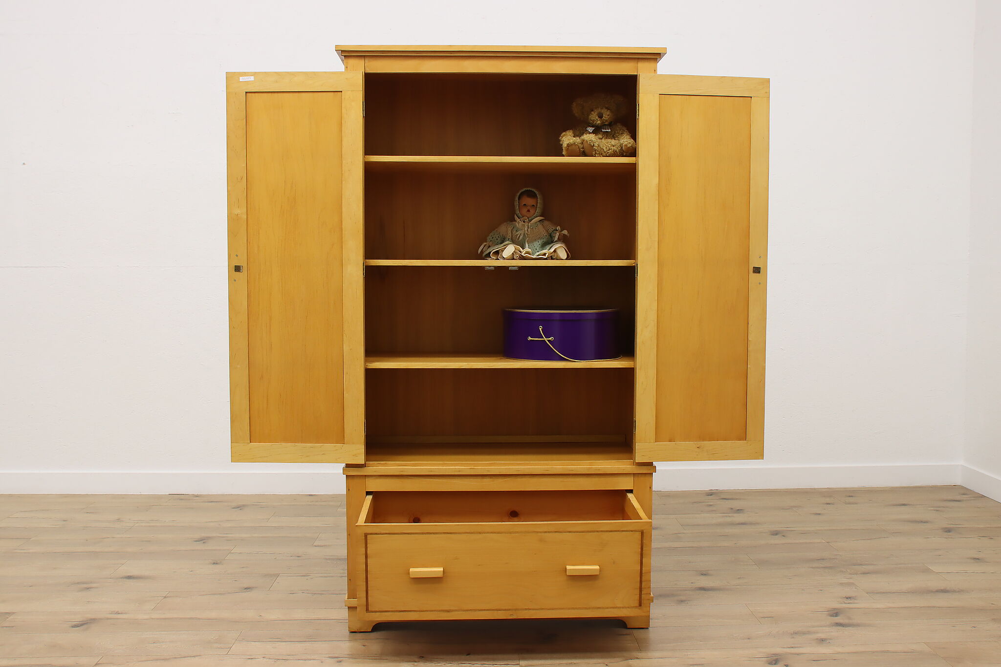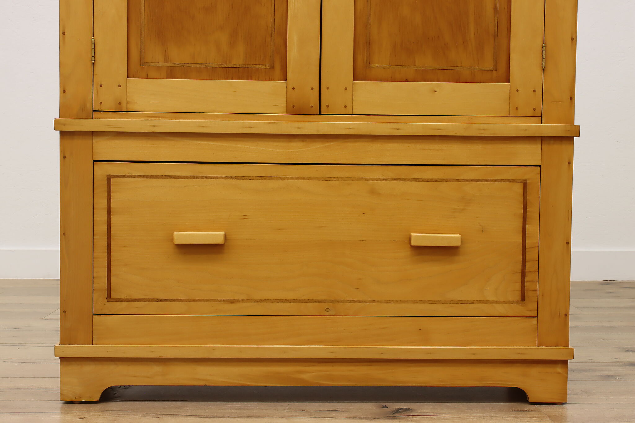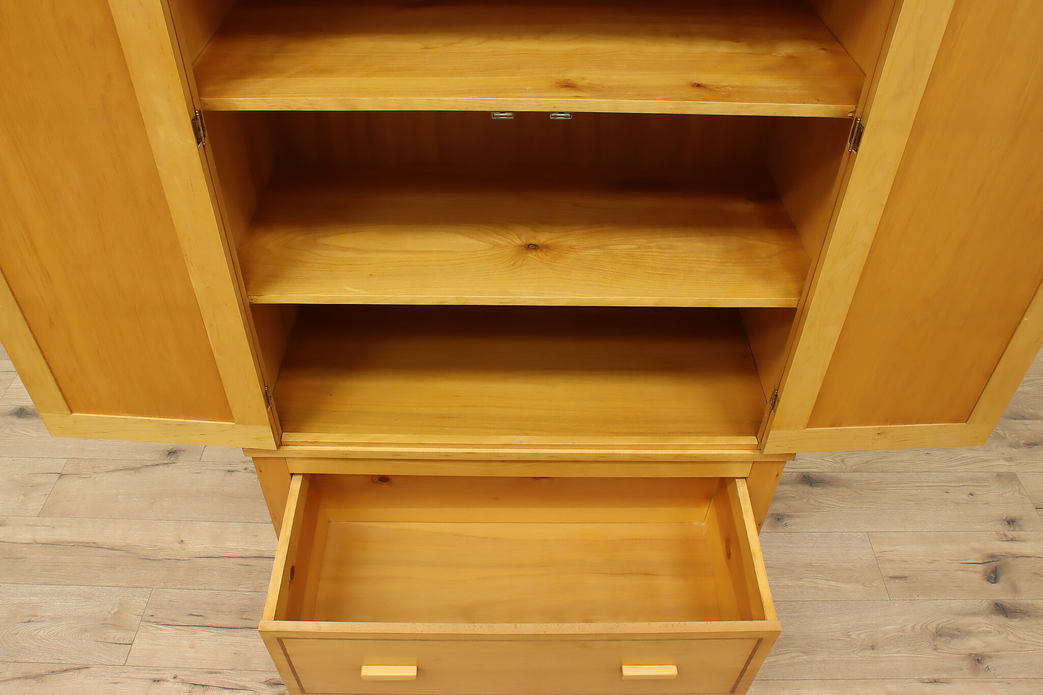 Styled after furniture from the Arts & Crafts period, this wardrobe, armoire, or closet would be an excellent storage addition to a home.