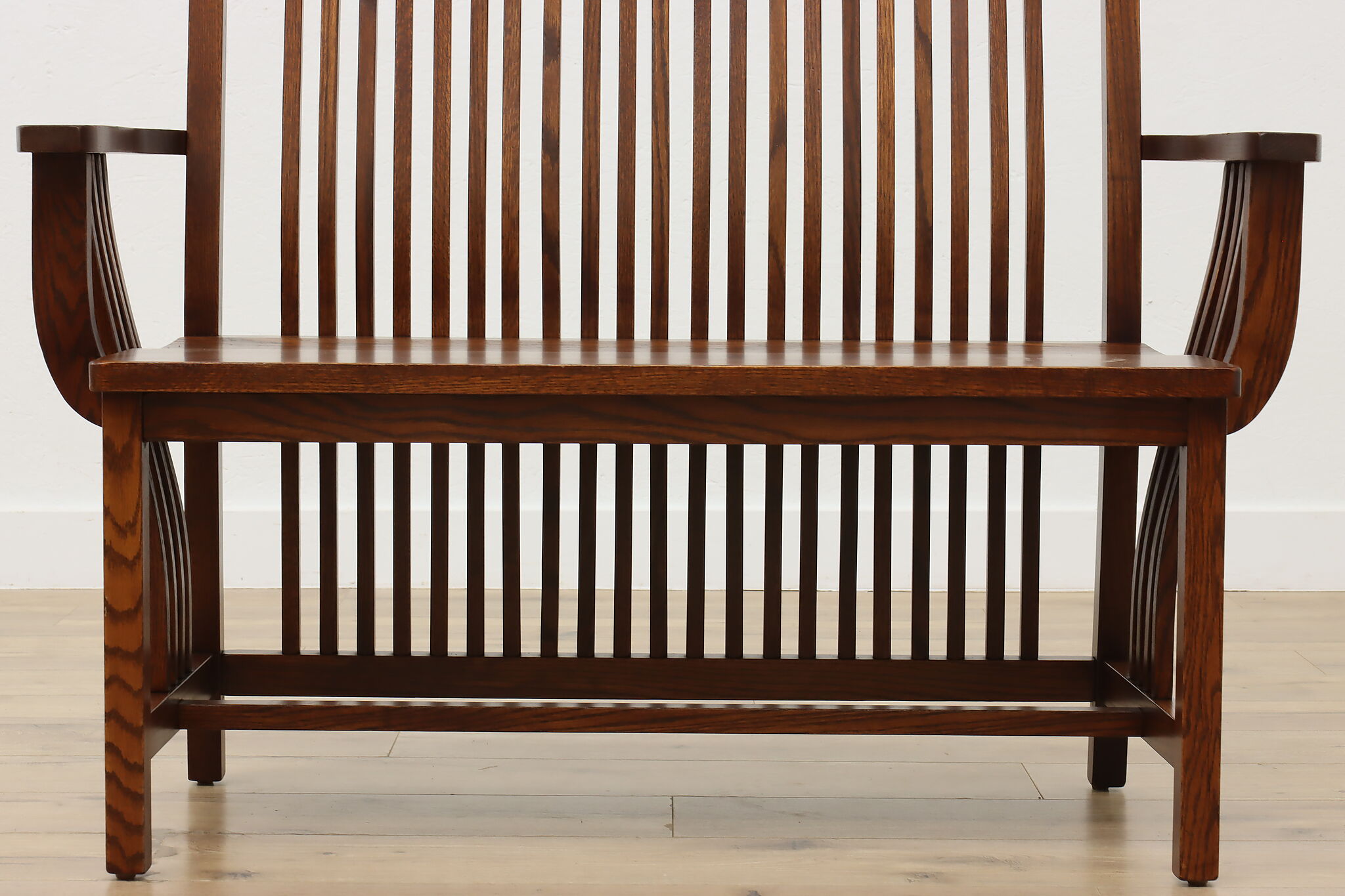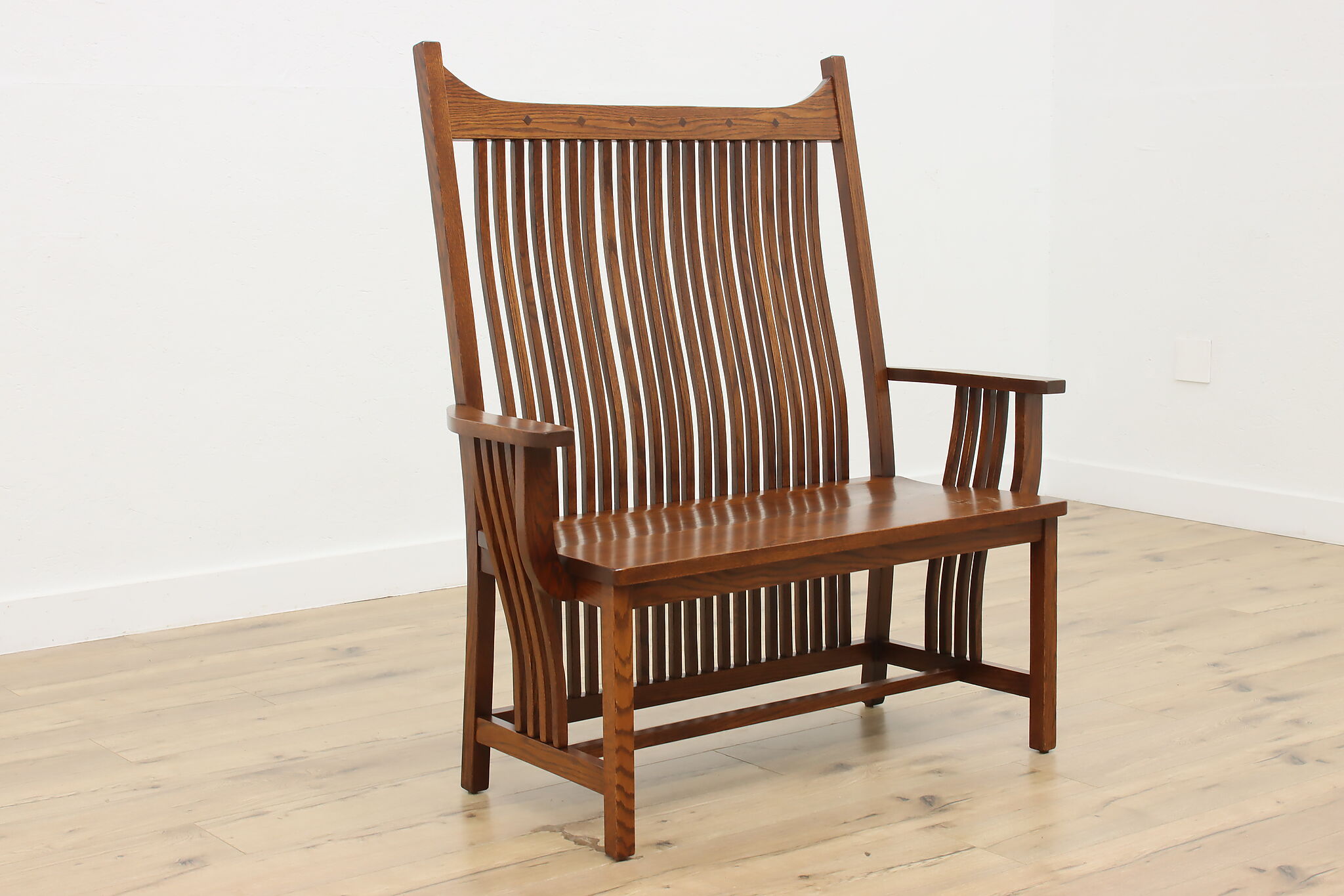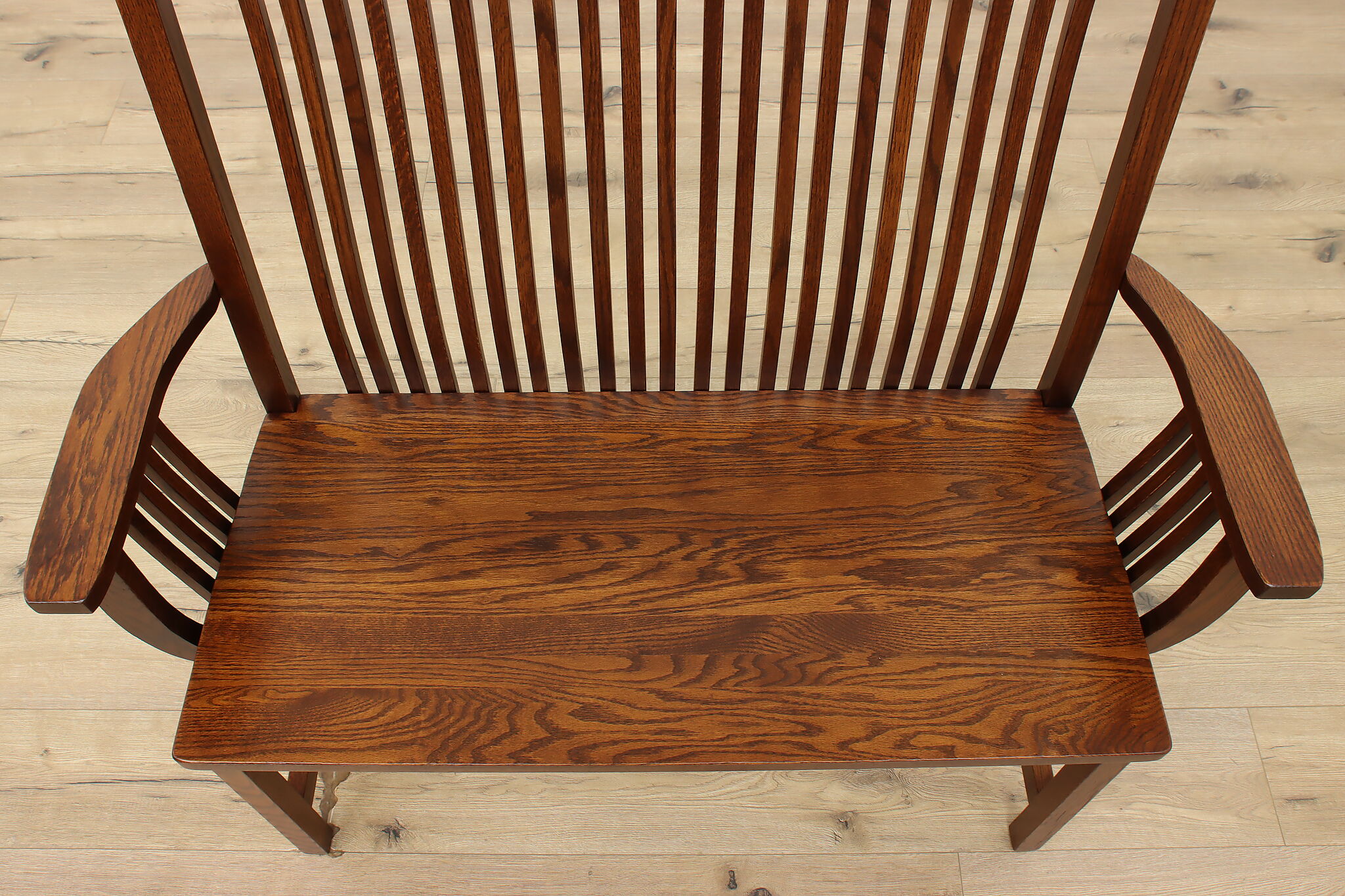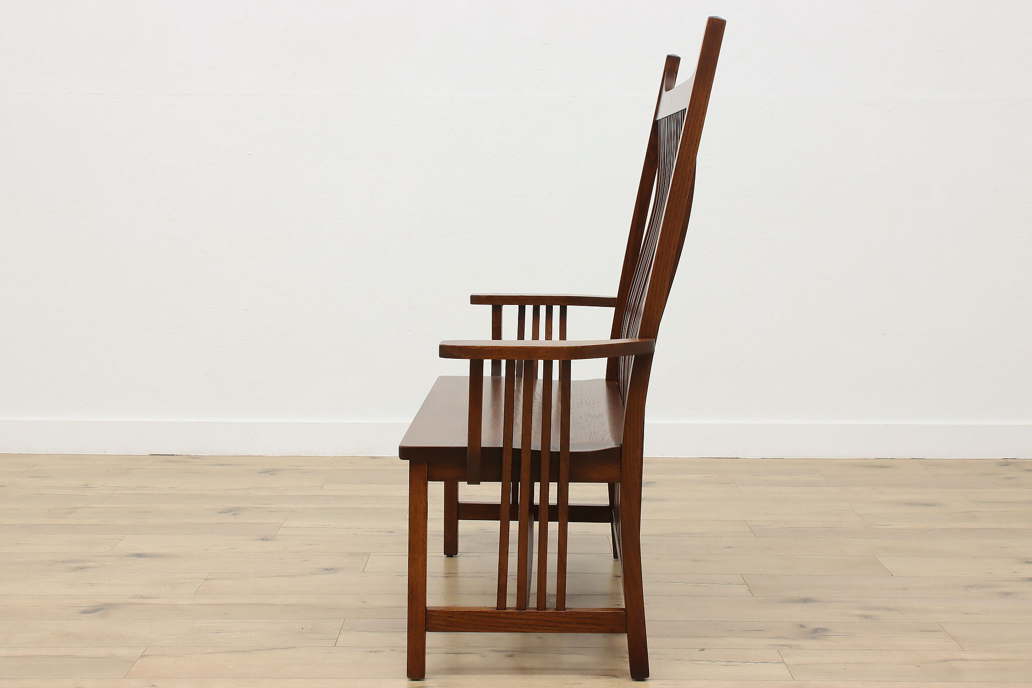 This hall, entry or porch bench is designed after the simple and clean lines of the Arts & Crafts period with gracefully curved spindles.