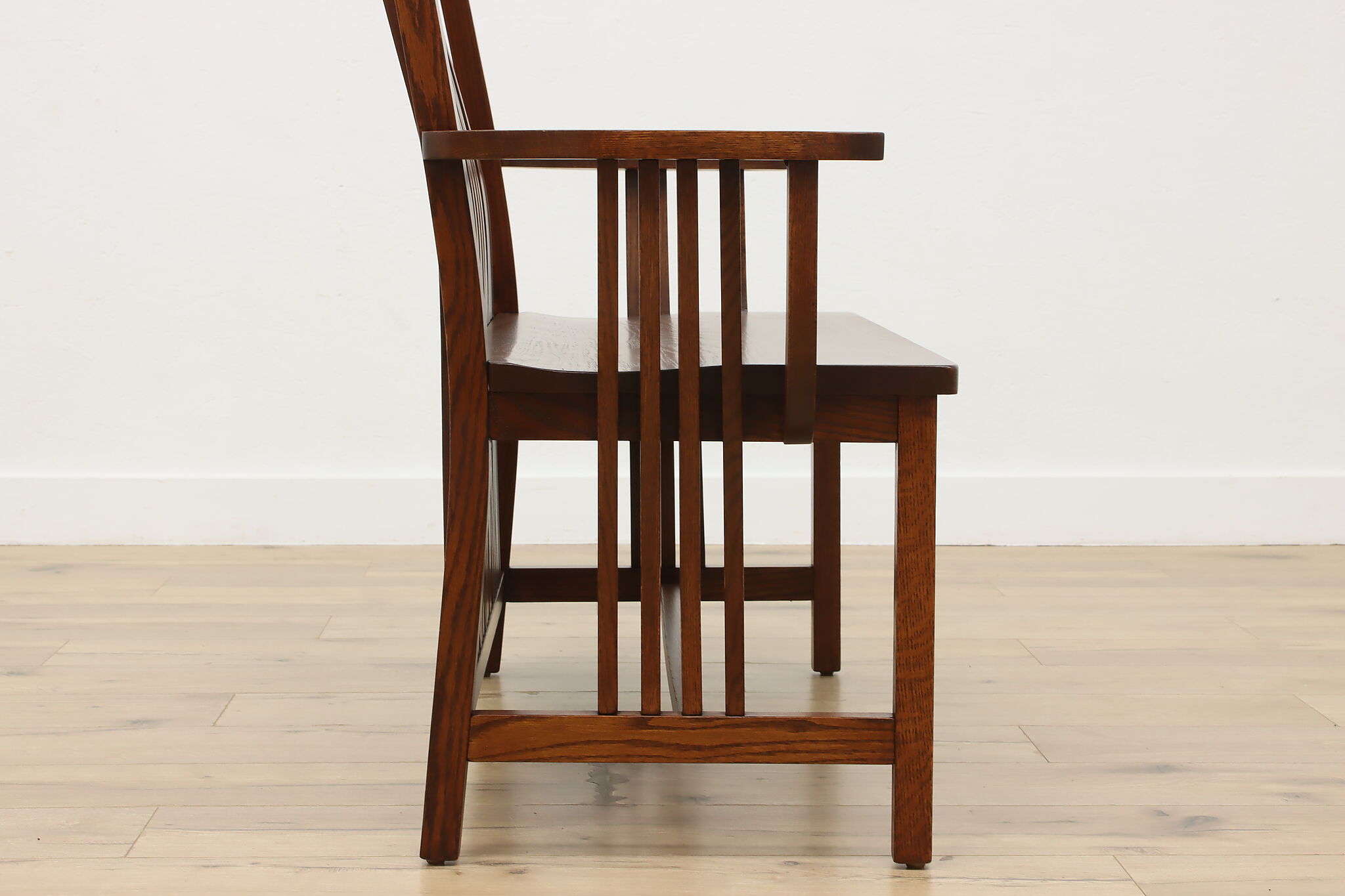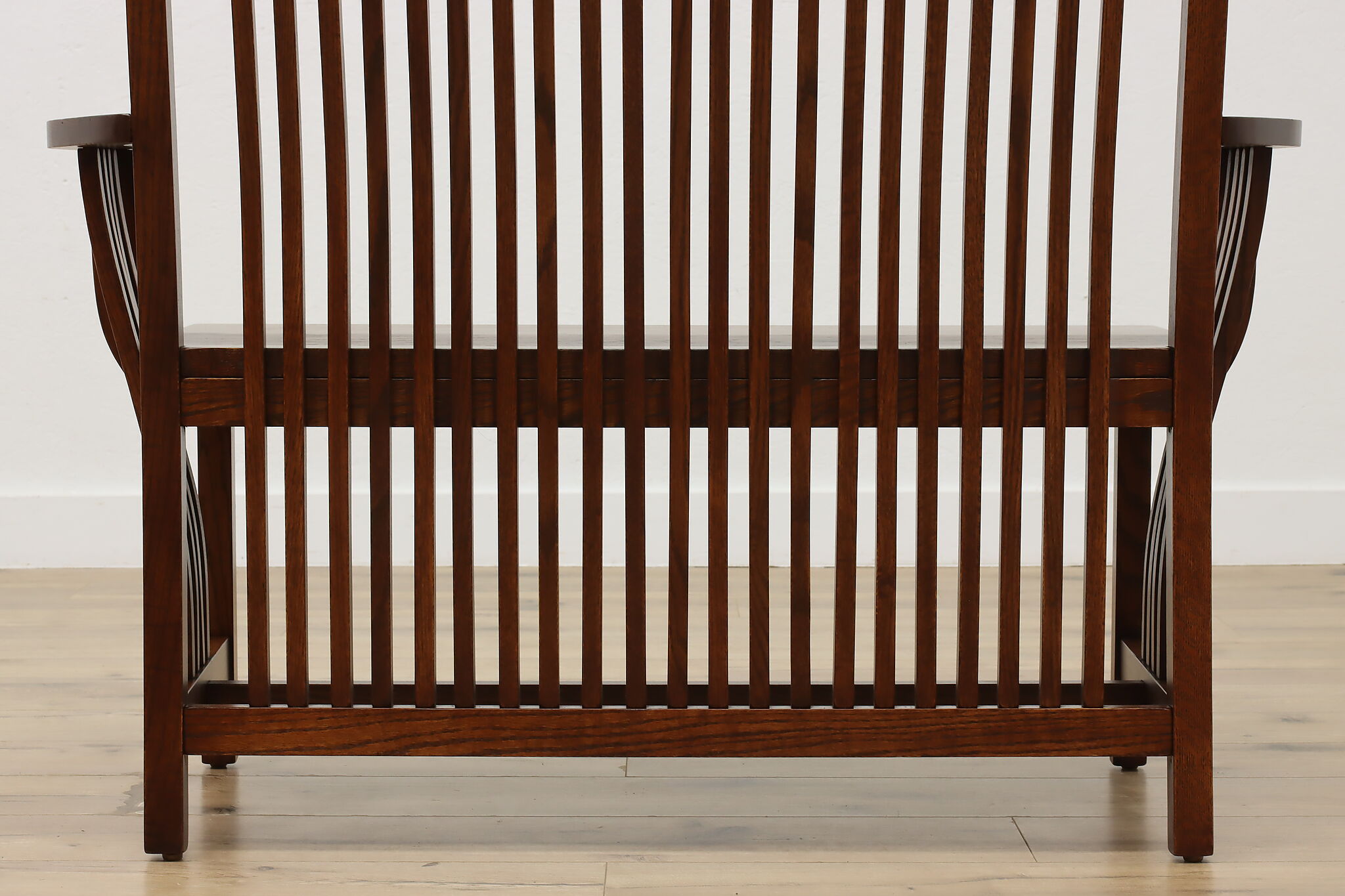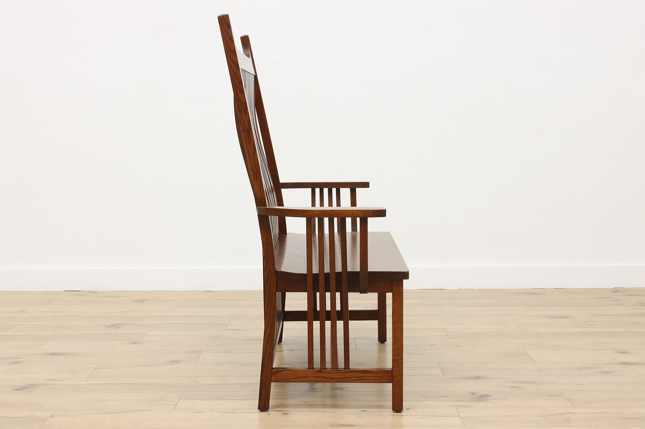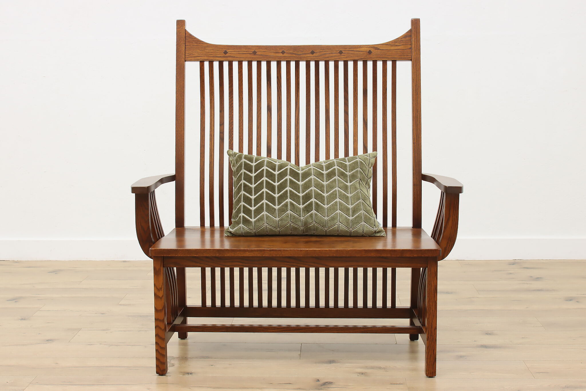 This hall, entry or porch bench is designed after the simple and clean lines of the Arts & Crafts period with gracefully curved spindles.