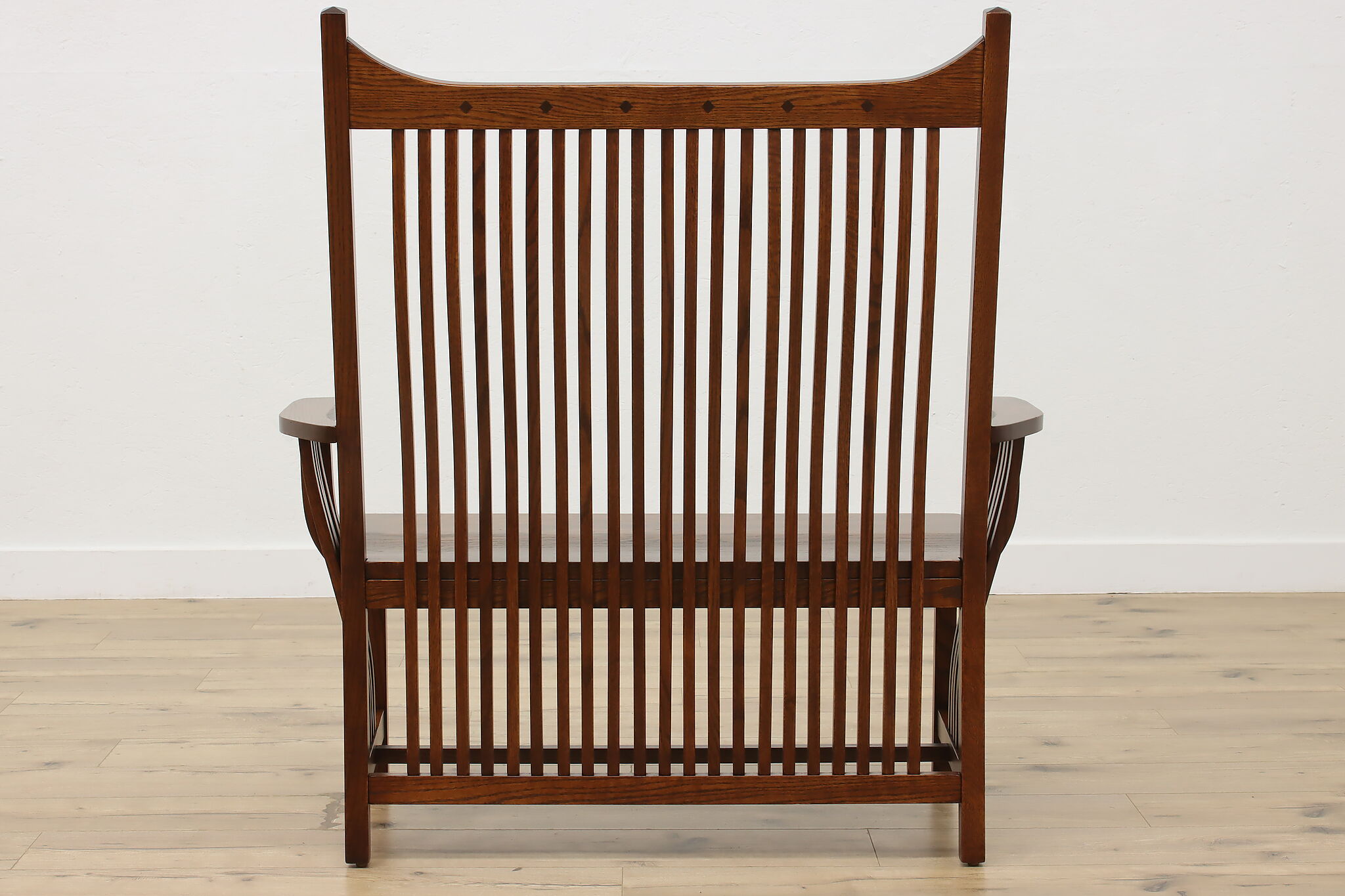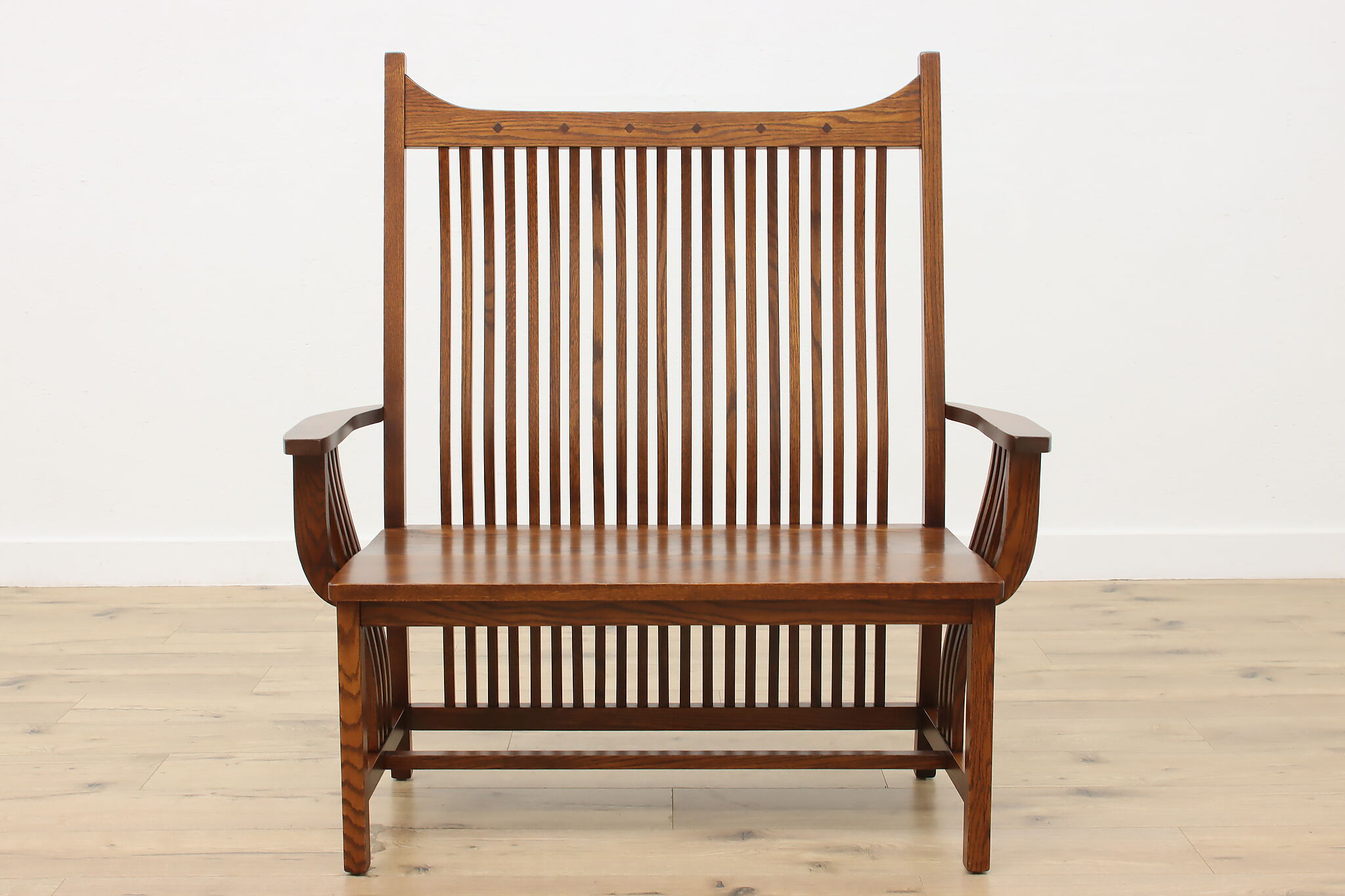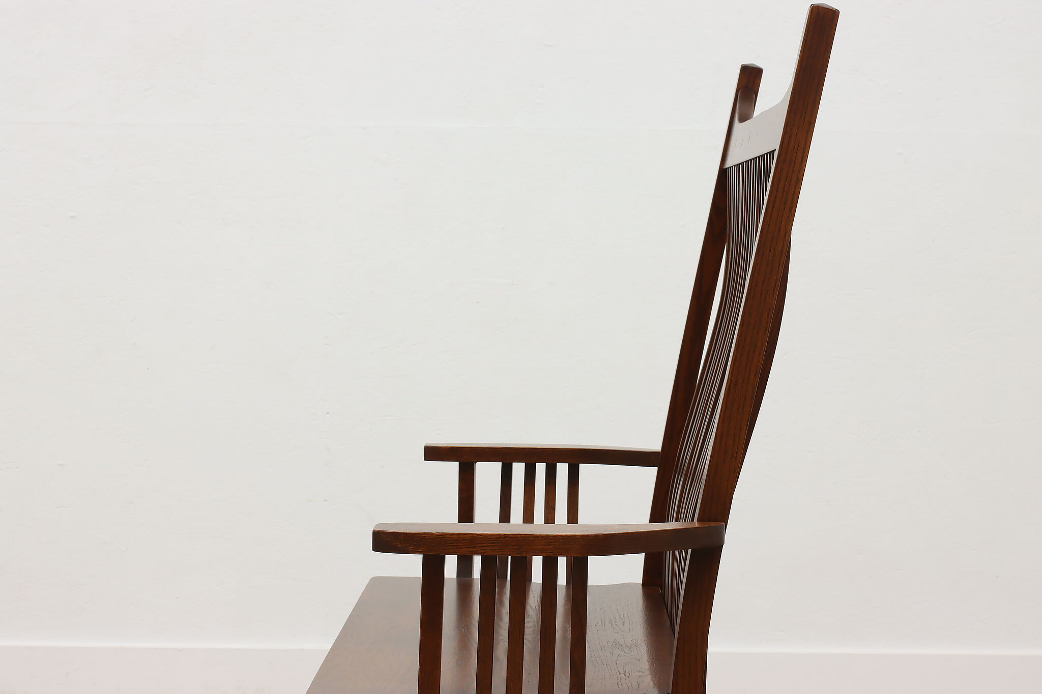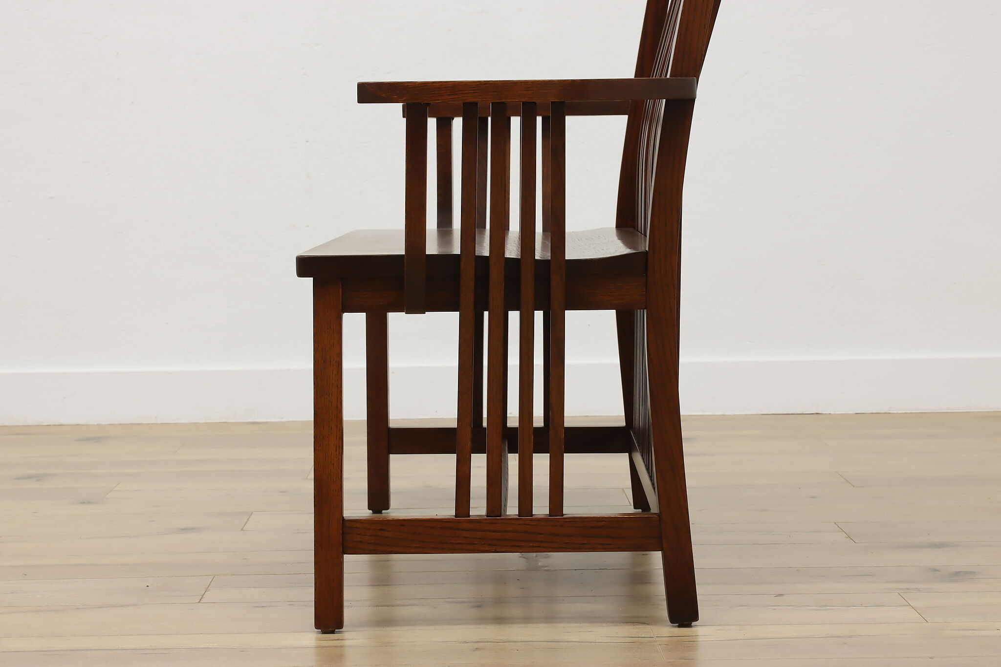 This hall, entry or porch bench is designed after the simple and clean lines of the Arts & Crafts period with gracefully curved spindles.