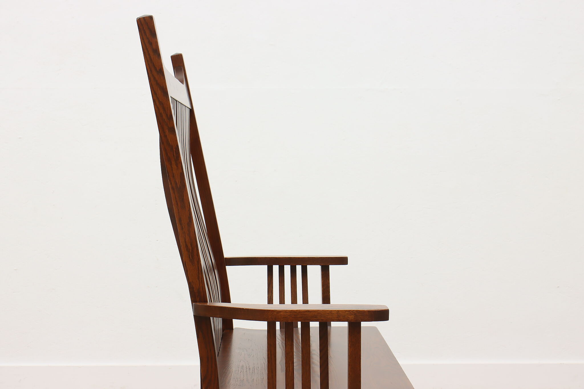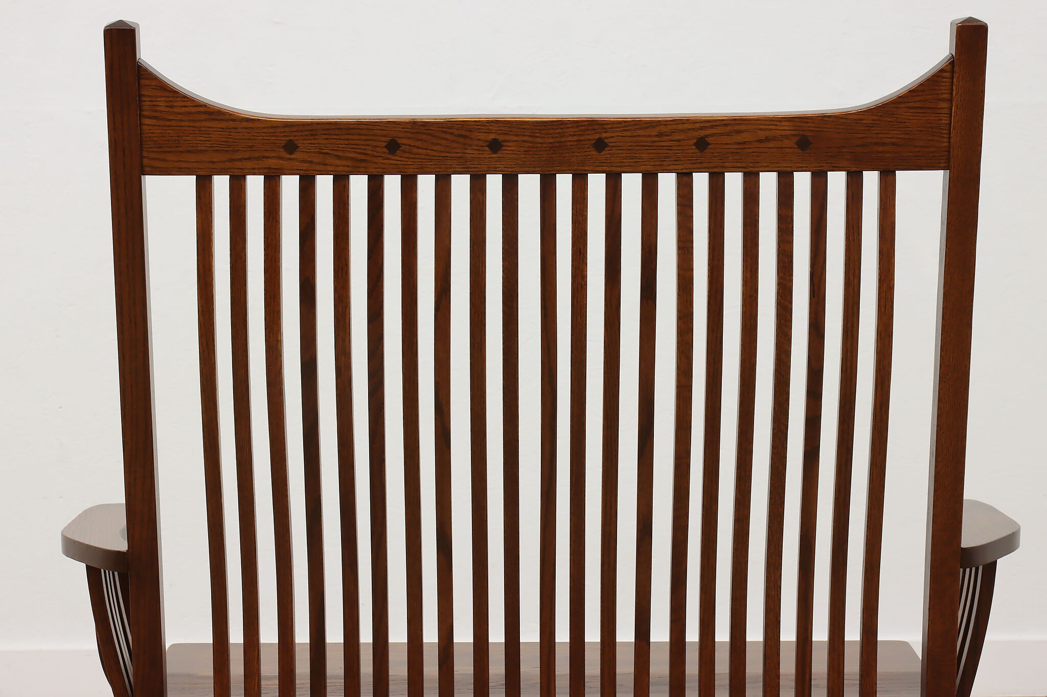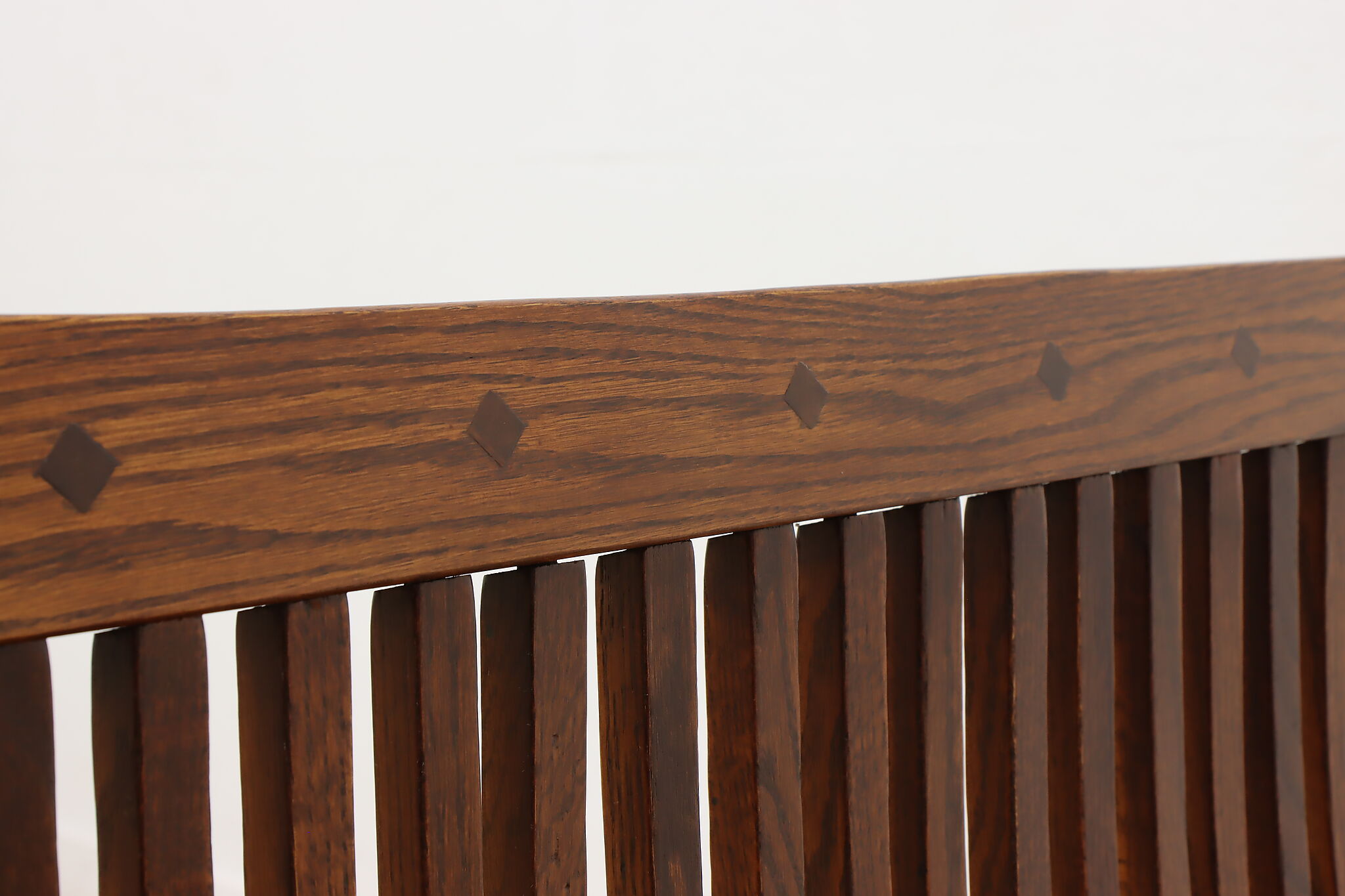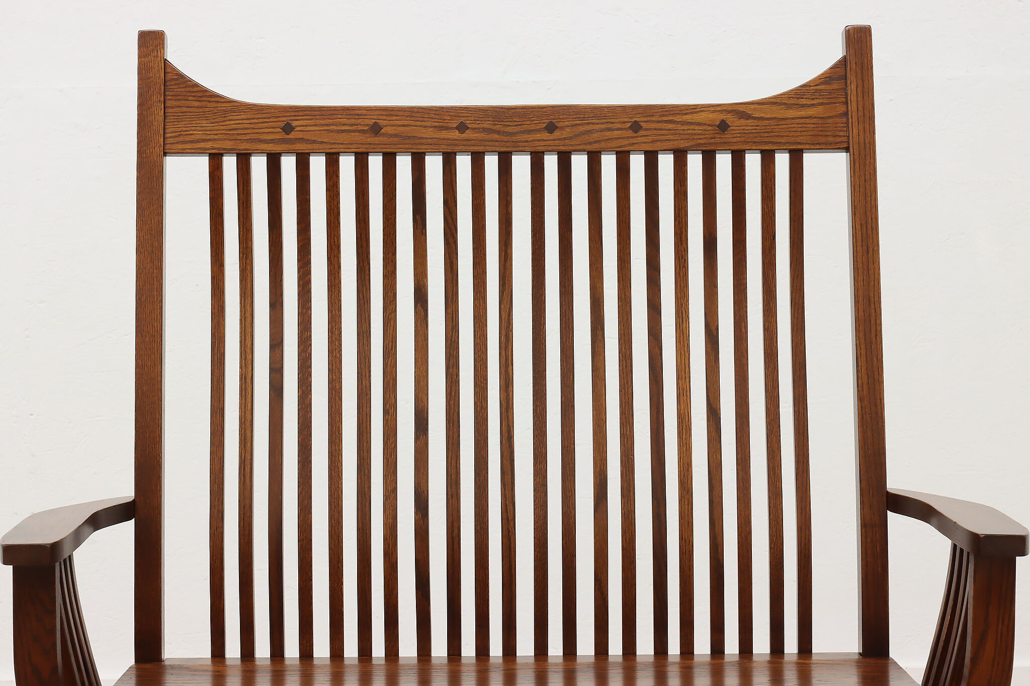 This hall, entry or porch bench is designed after the simple and clean lines of the Arts & Crafts period with gracefully curved spindles.
