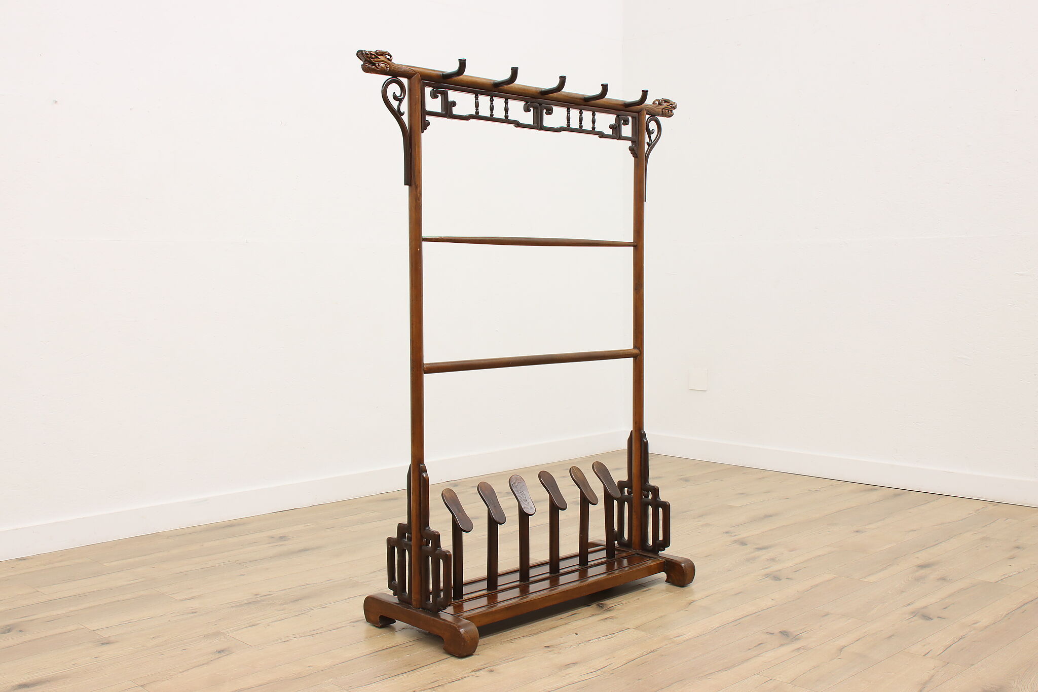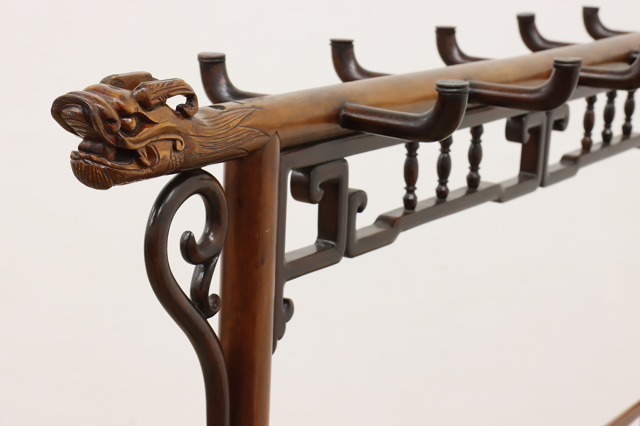 Need to save space in your hallway and have a convenient place to store coats and shoes? This Asian hall stand is just the piece and has carved dragon heads for spiritual protection!