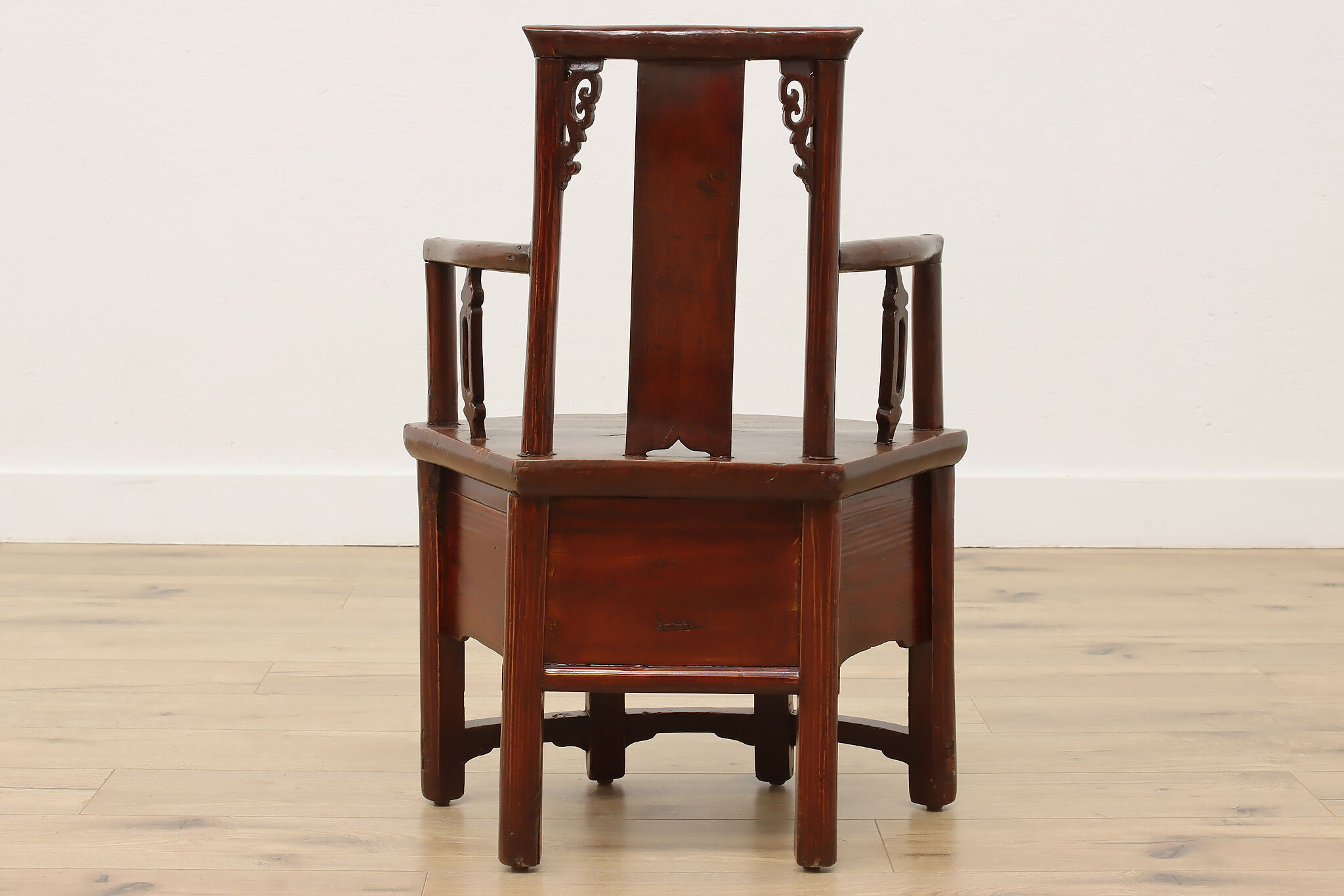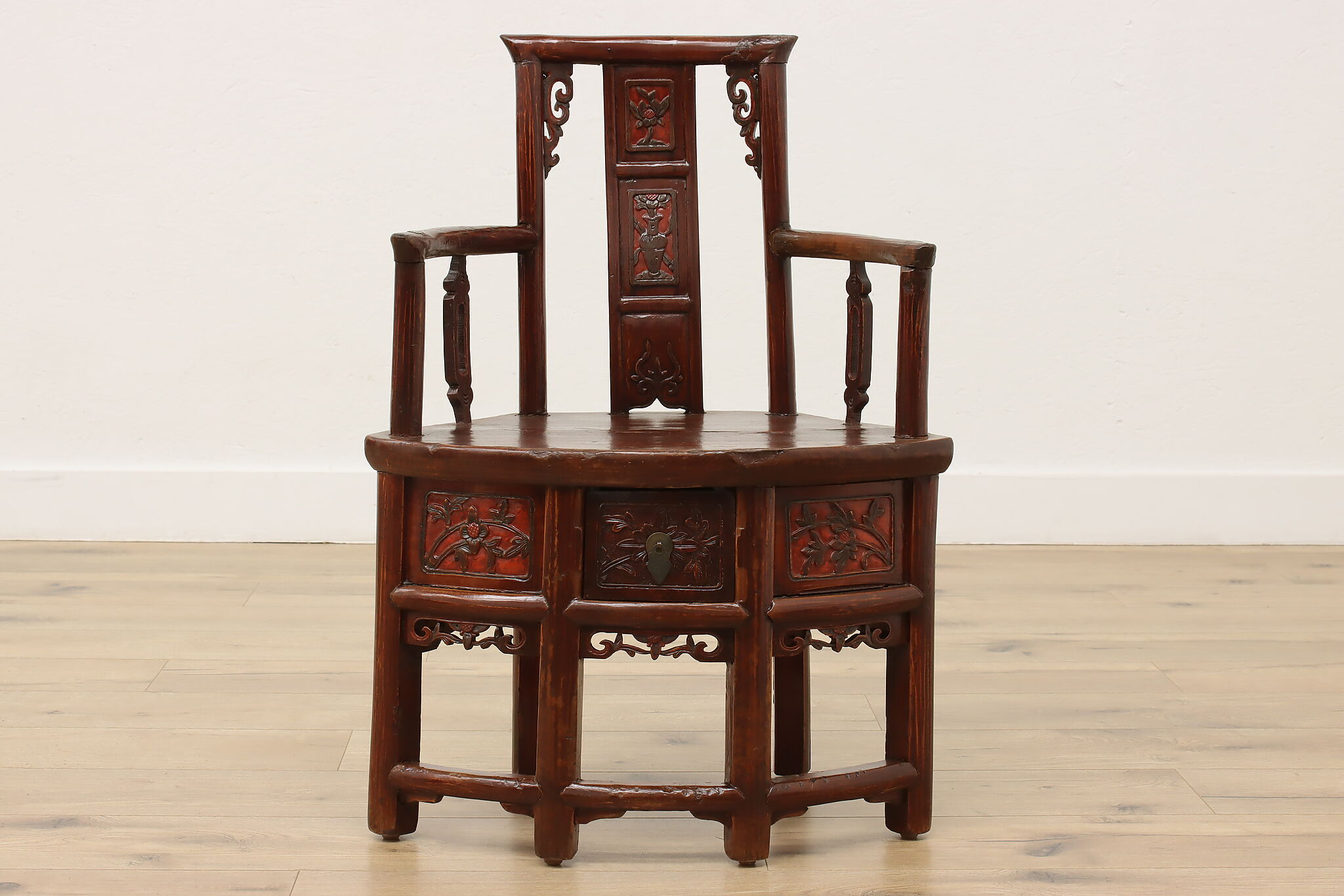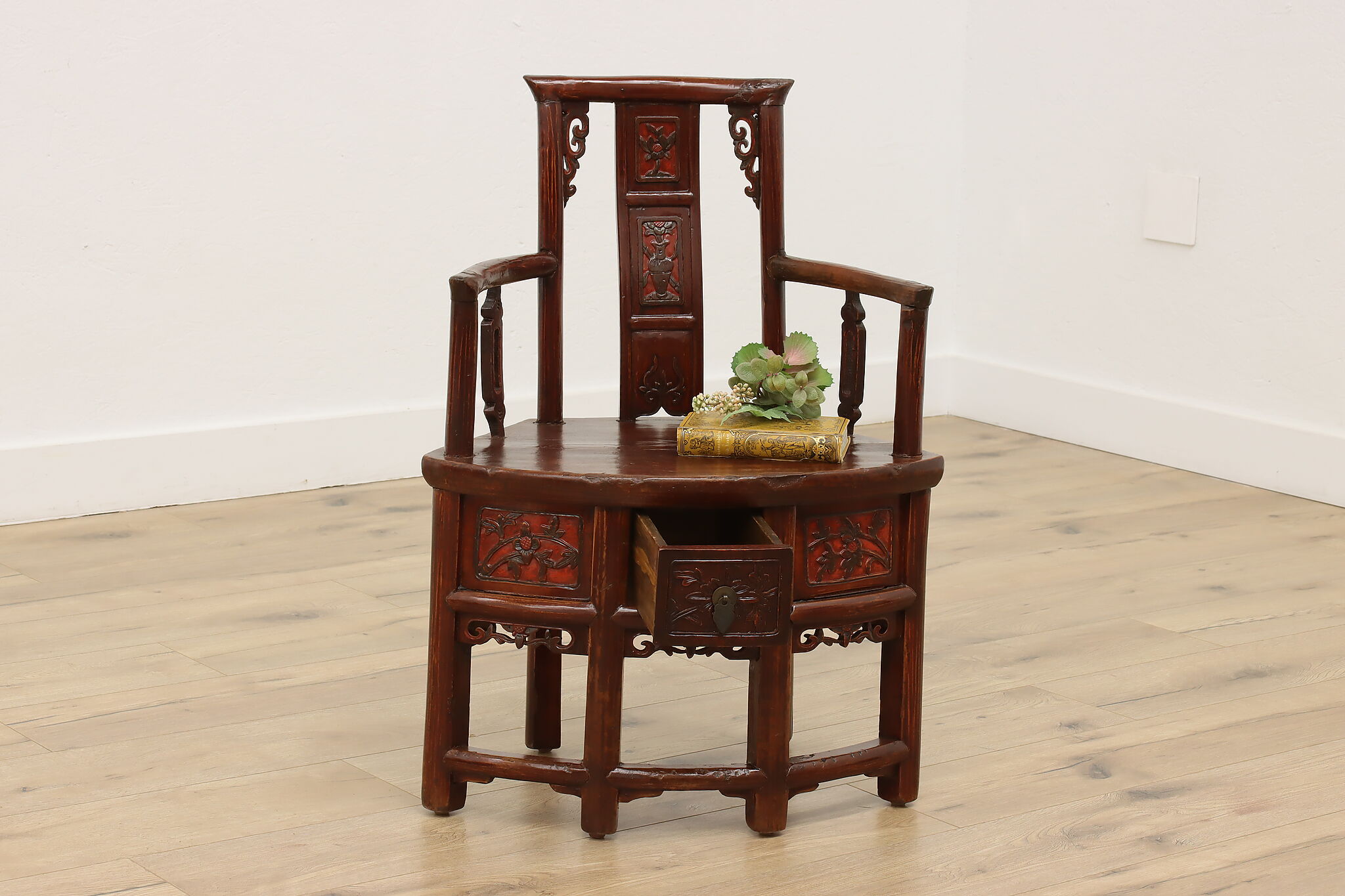 Fitting snugly in a corner, this small chair could have a plant or sculpture added to function as a stand!