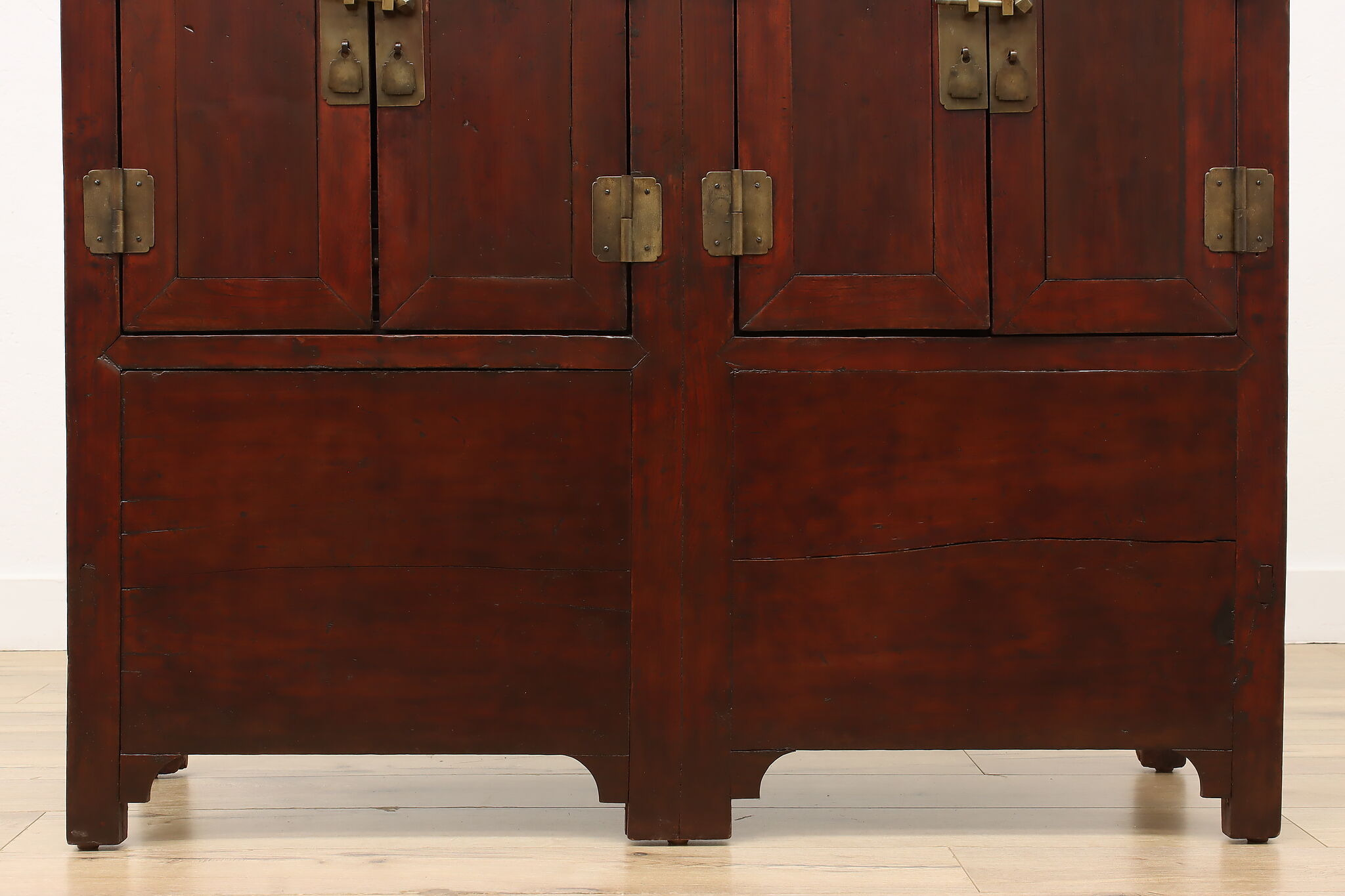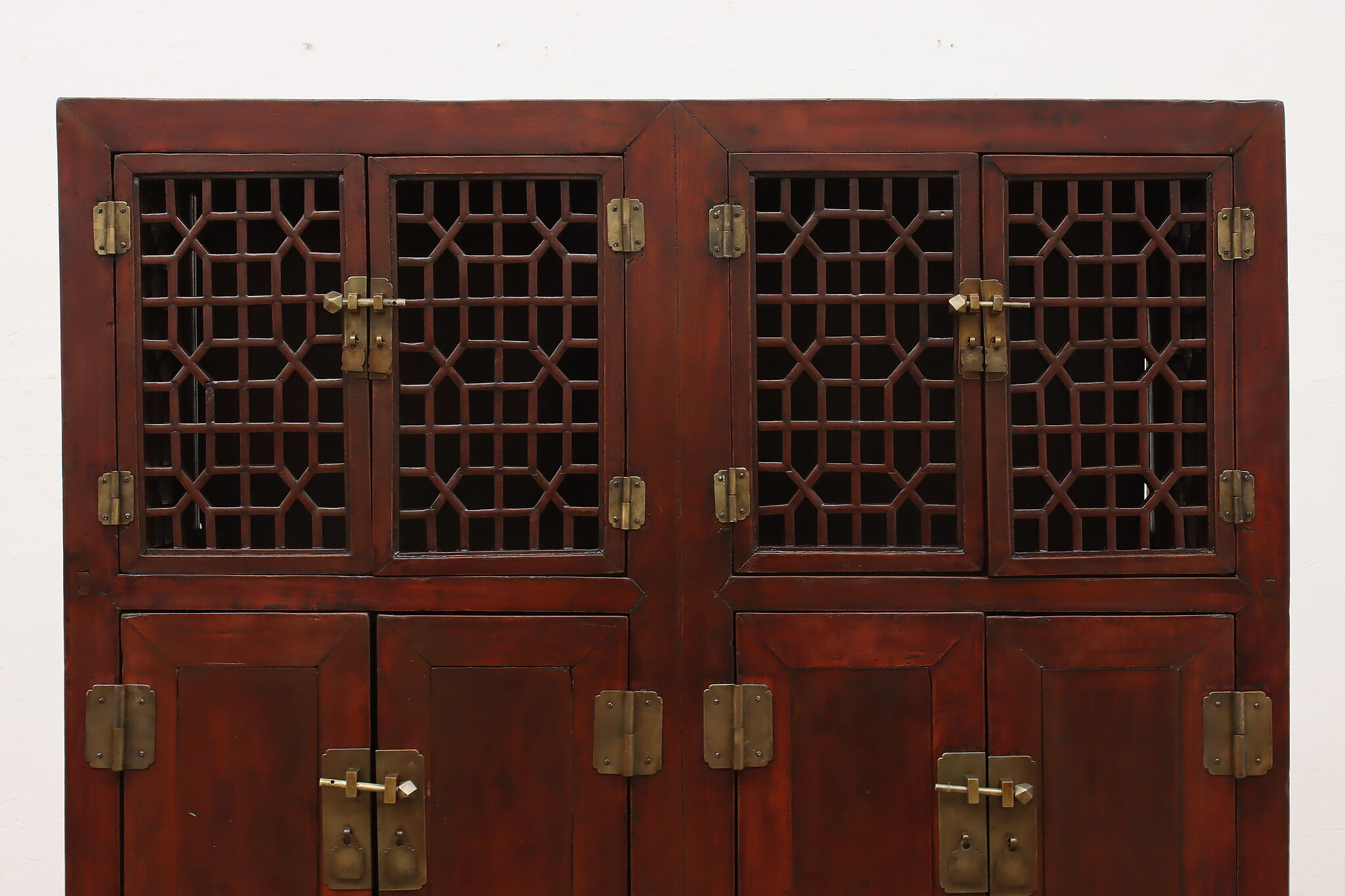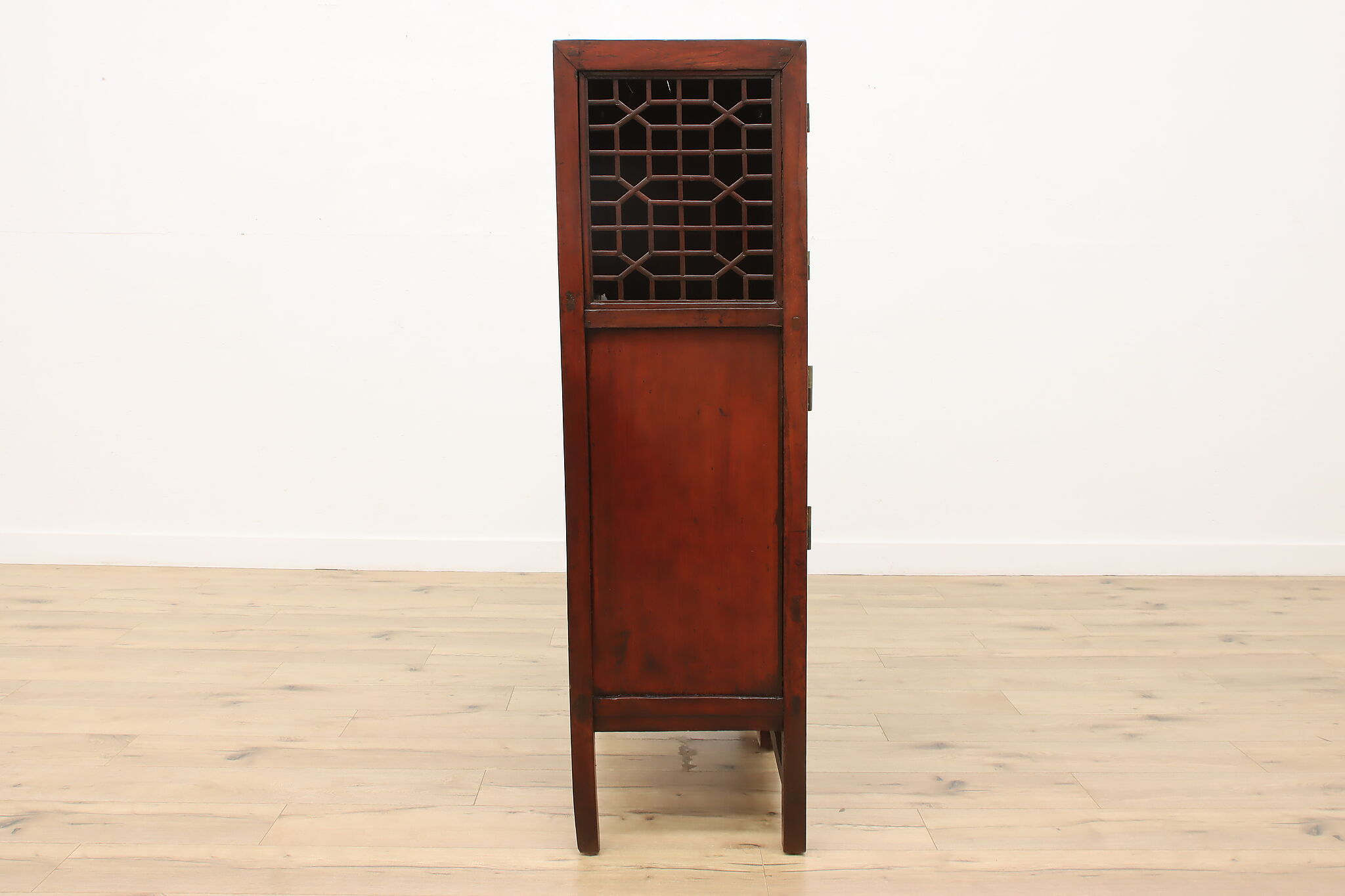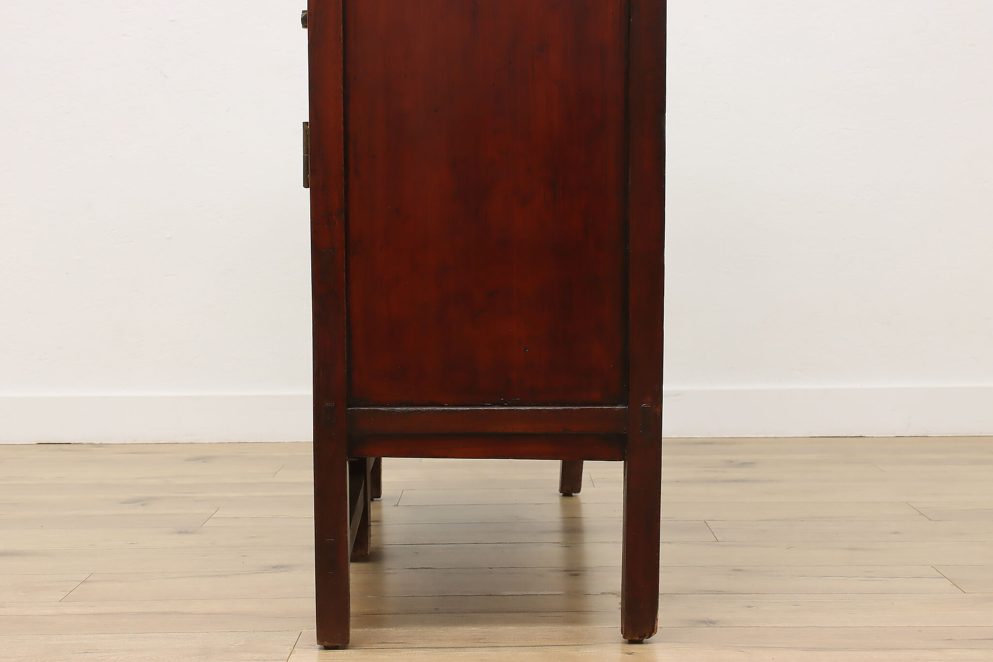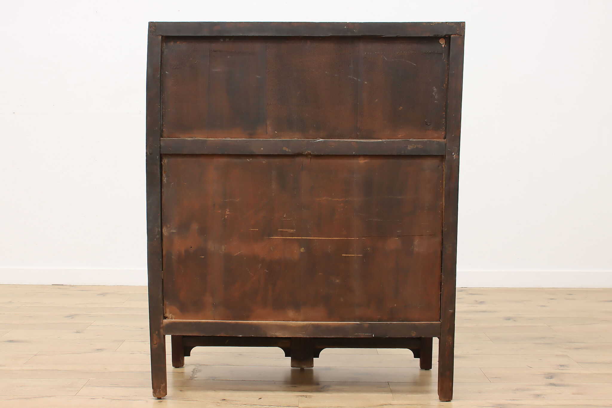 A charmingly rustic Asian design cabinet has plenty of space for books, statues, art pieces, and even liquors!