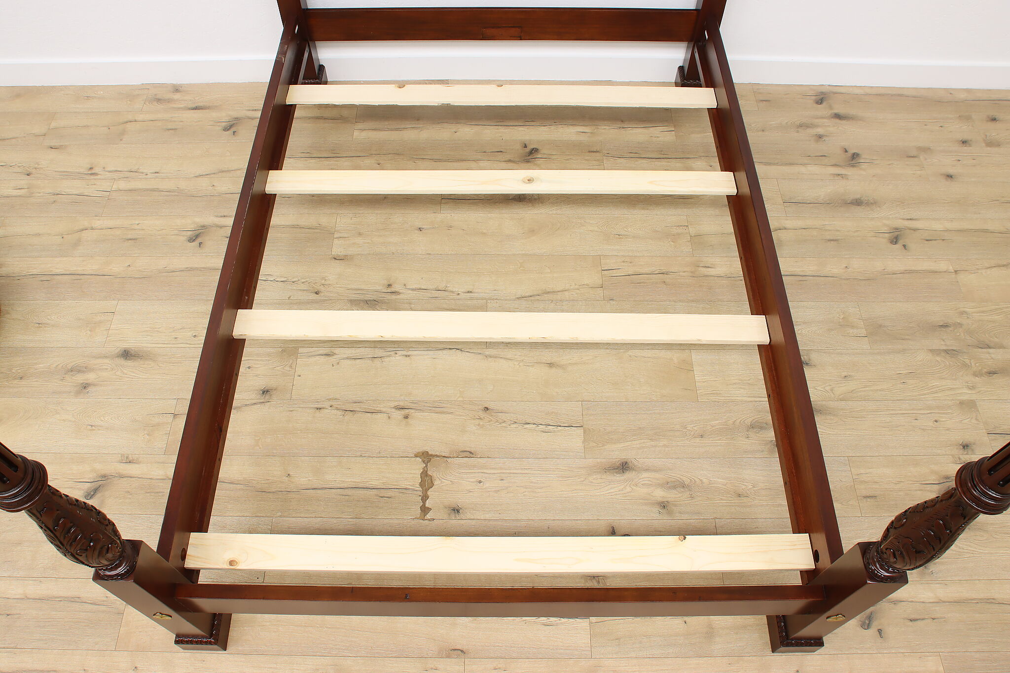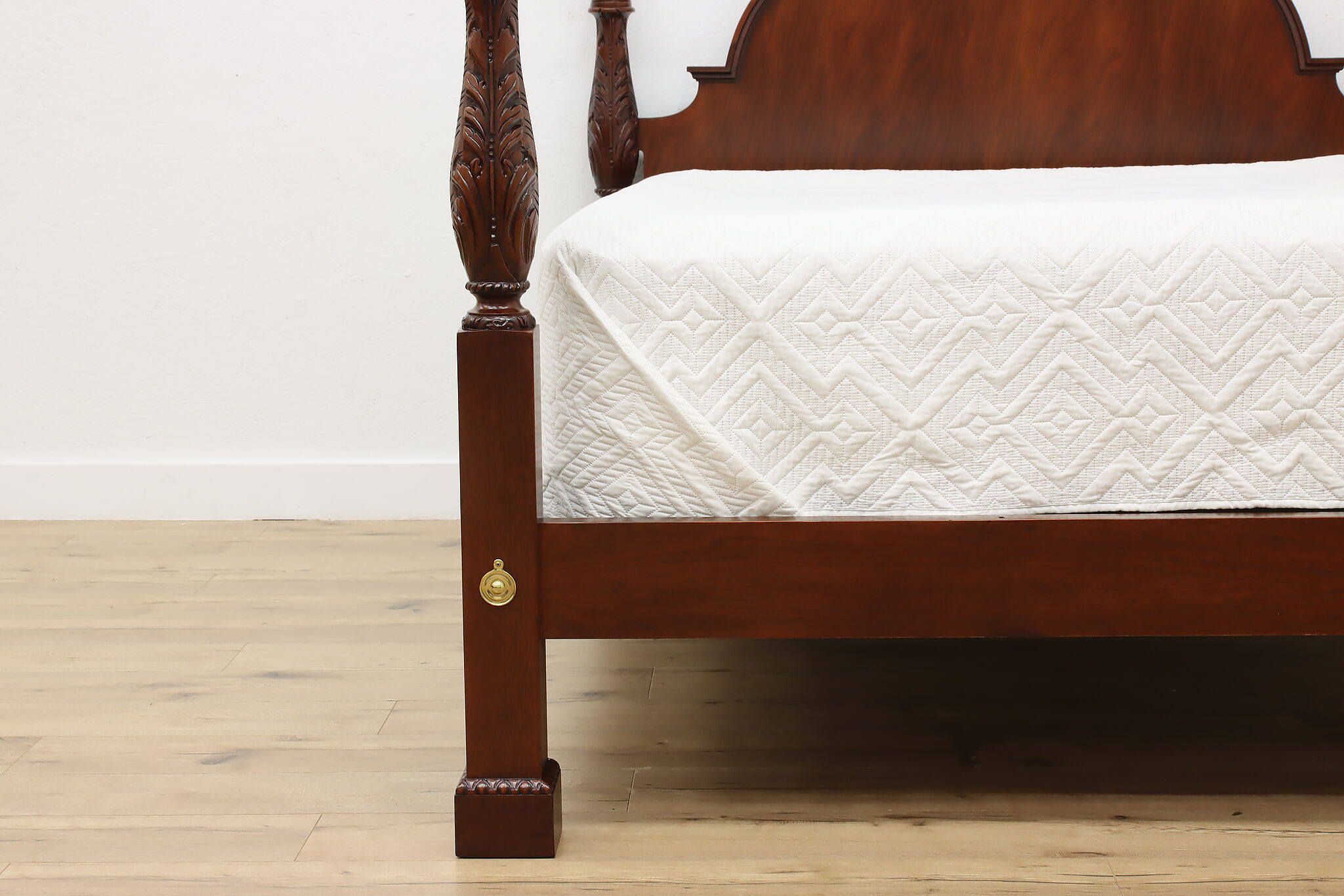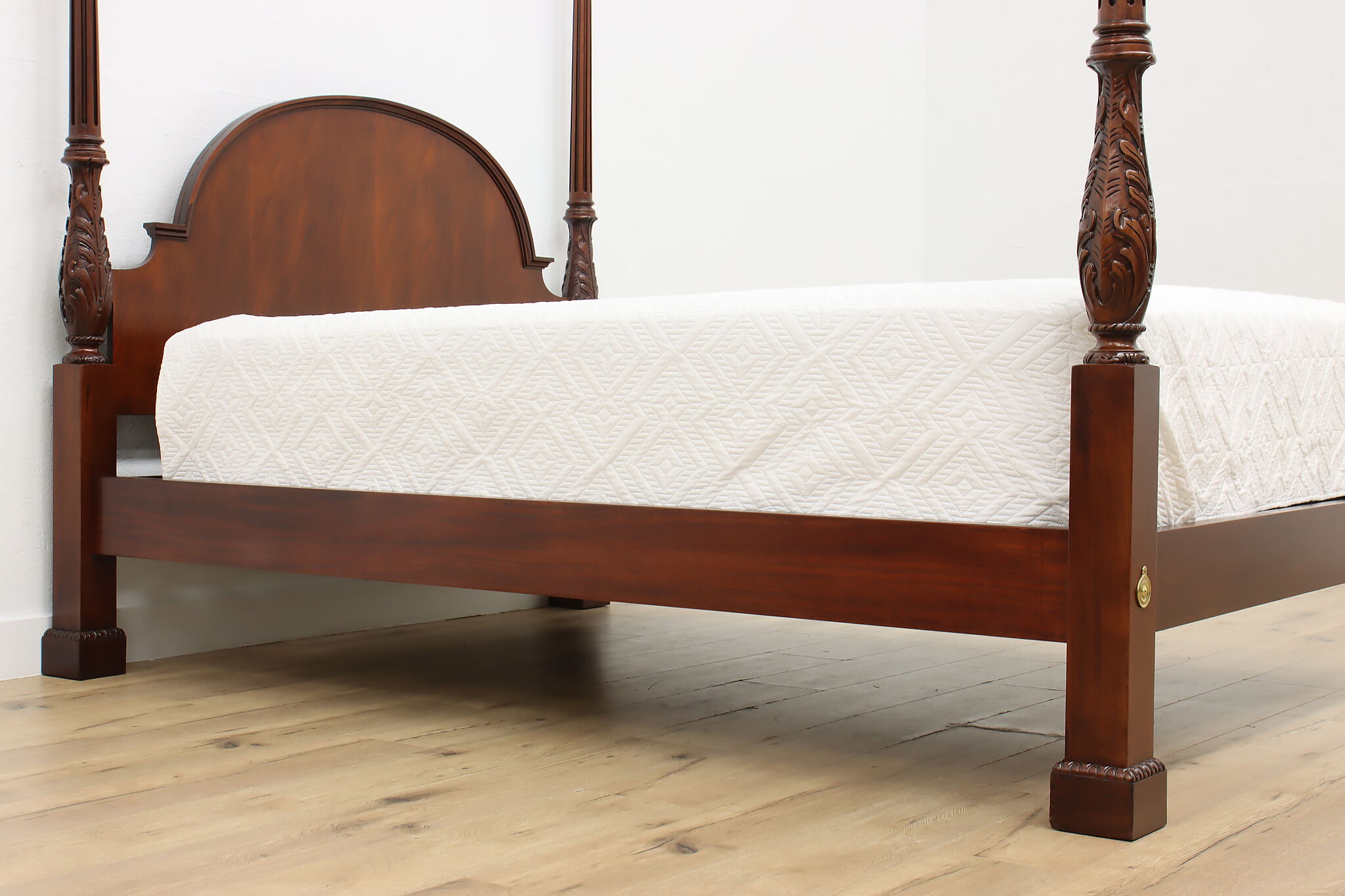This four poster queen size bed will be the centerpiece of a master bedroom.