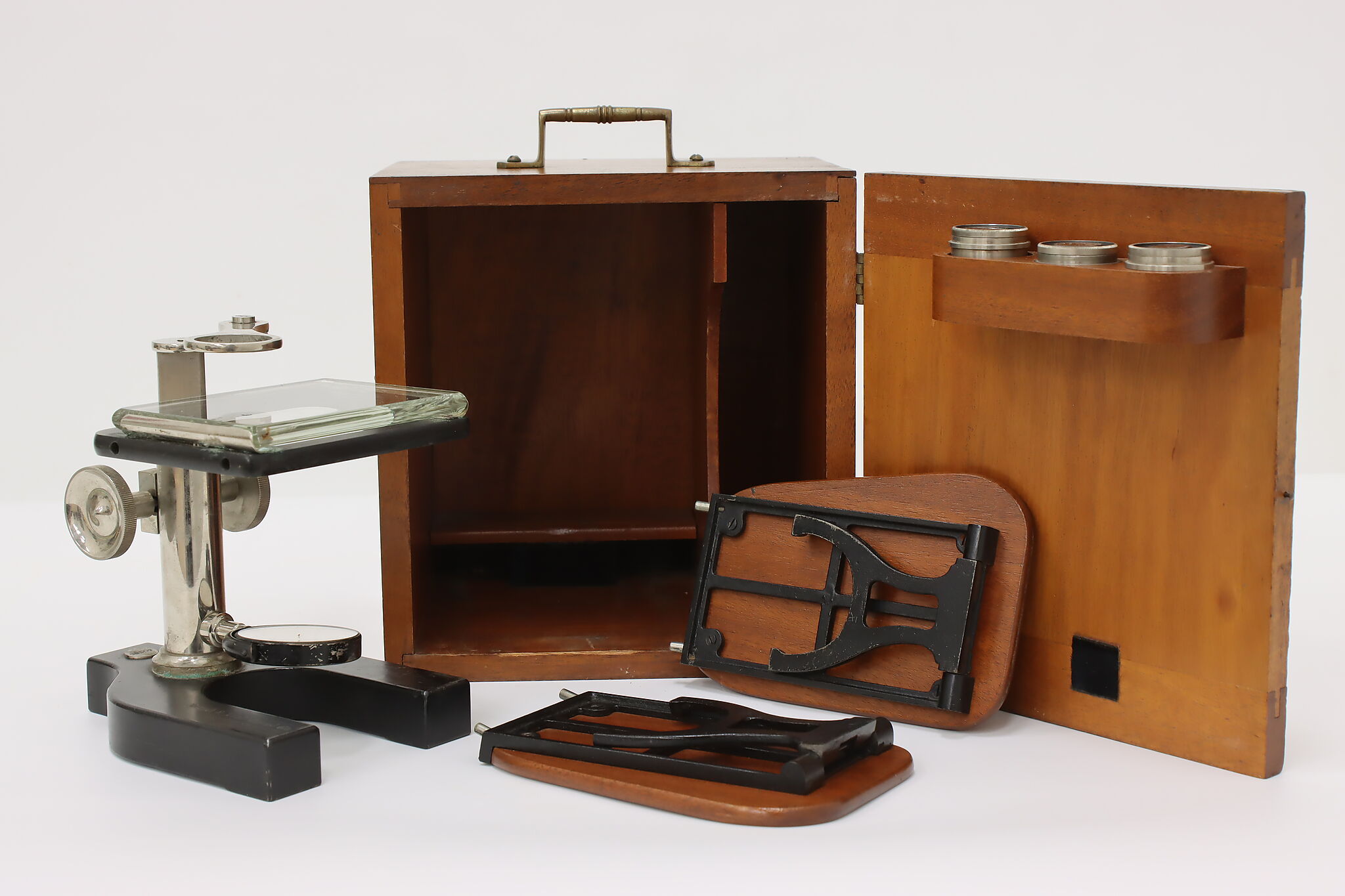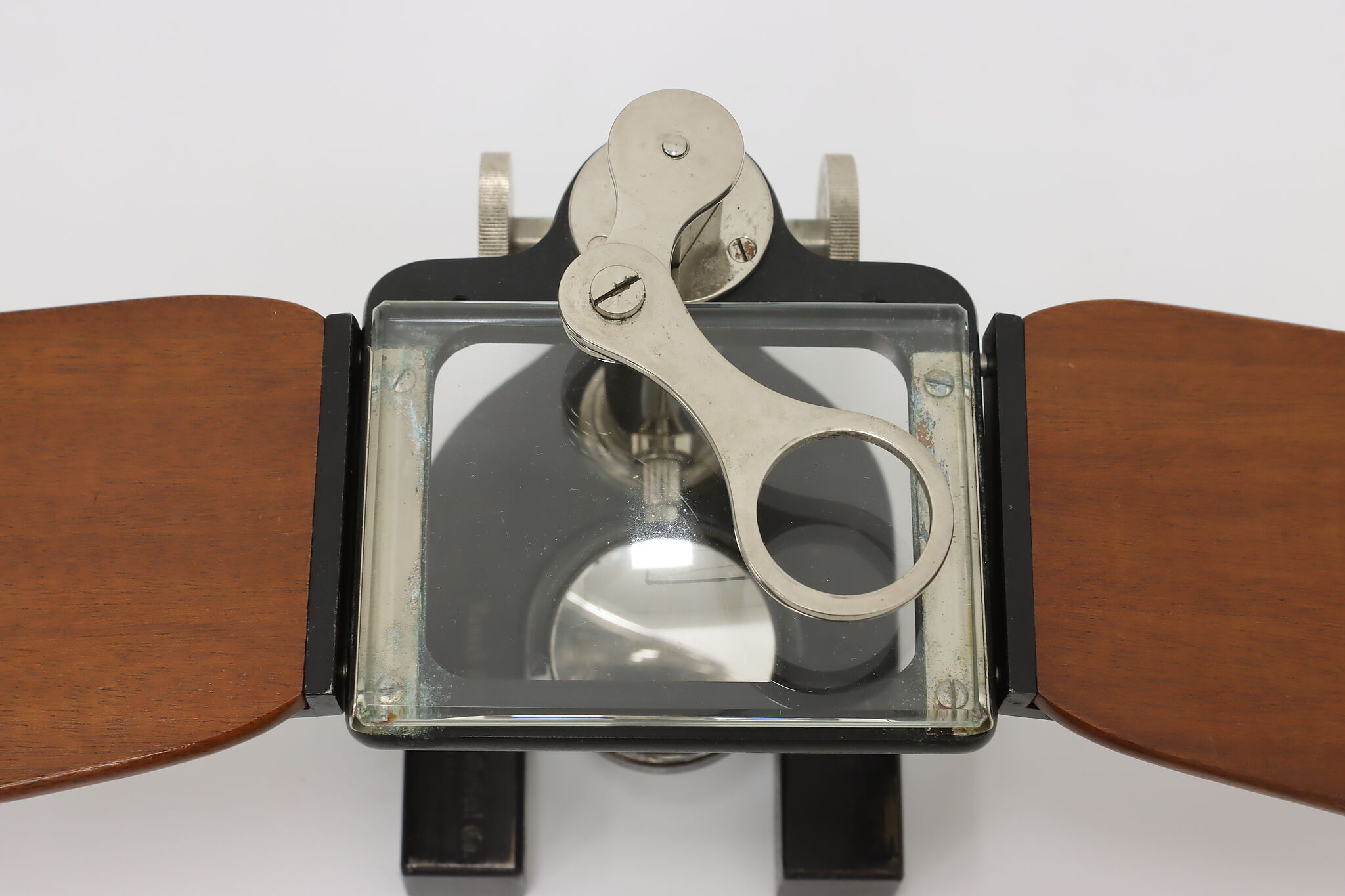 This charming laboratory microscope was used for dissection and includes two arms to hold specimens.