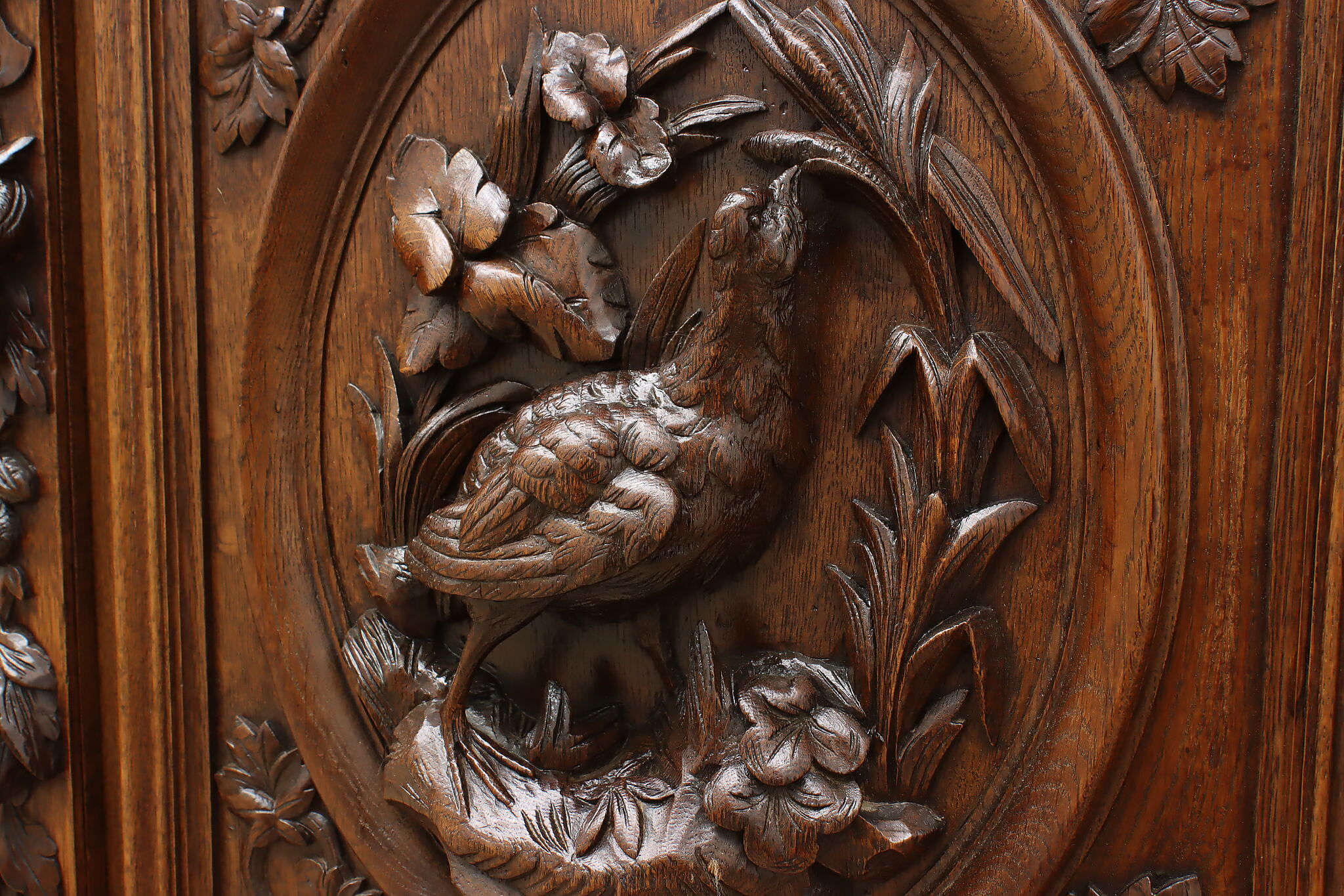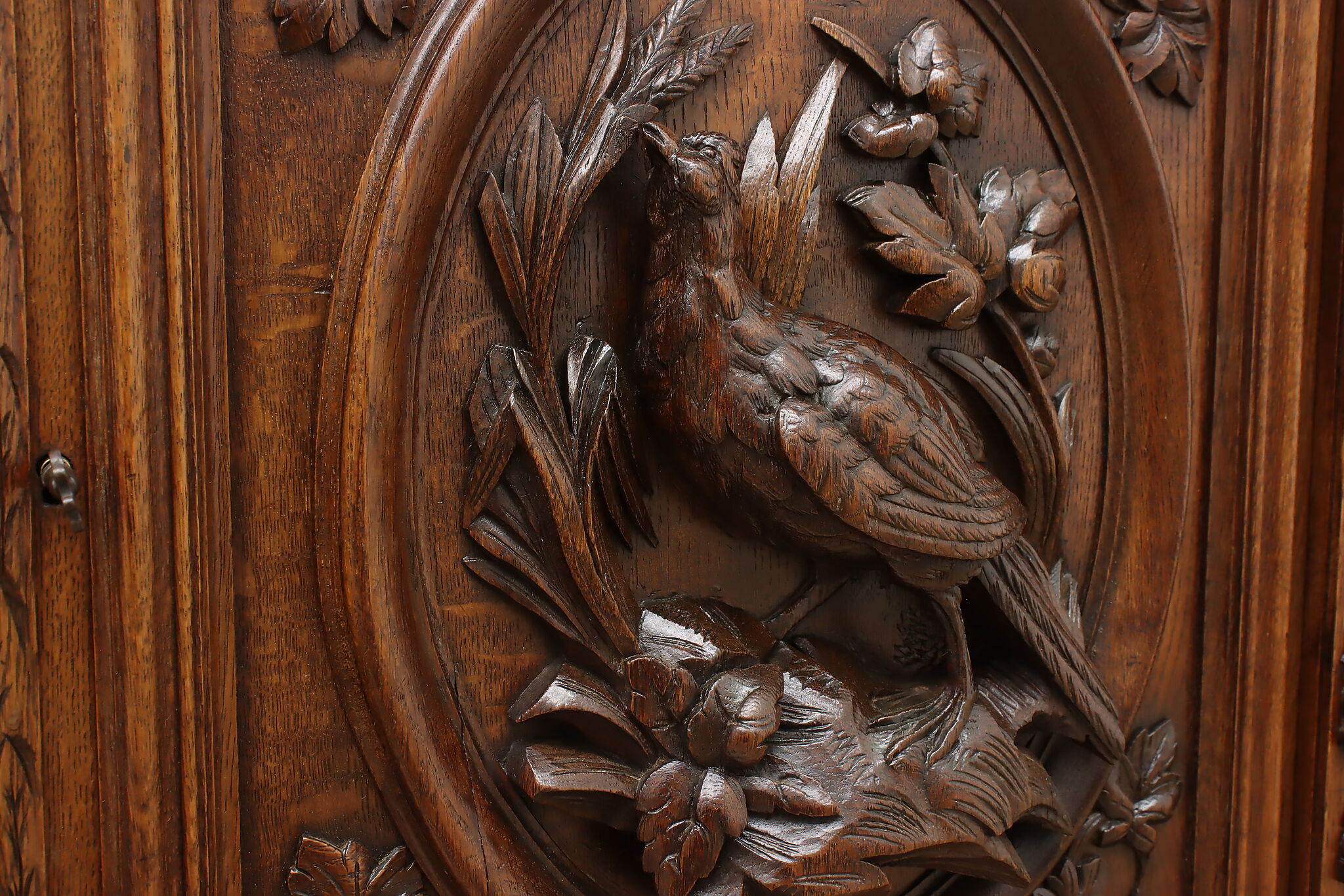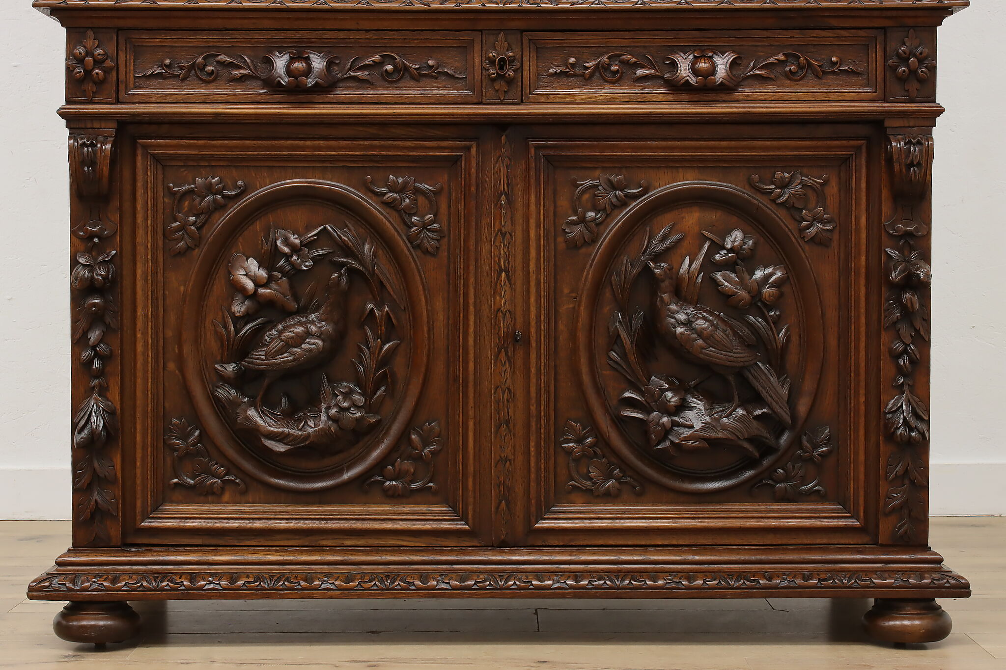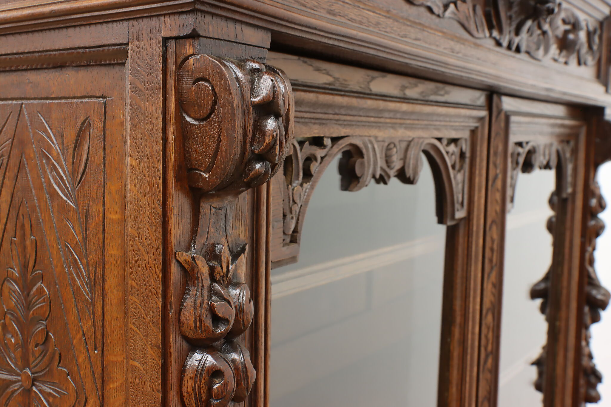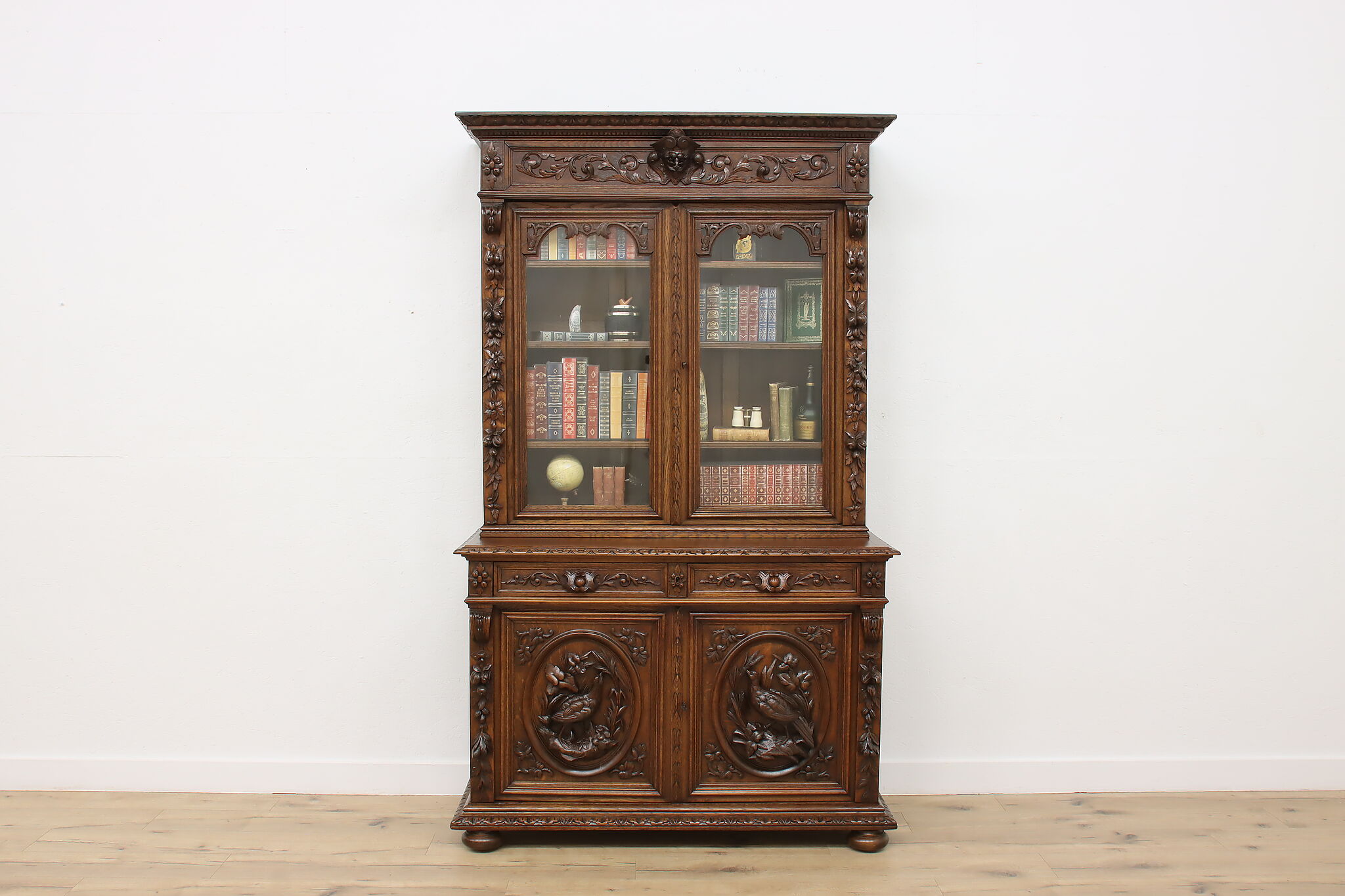 Gorgeously carved in the mystical Black Forest, this cabinet is the perfect piece to use as a bar, china display, or bookcase!