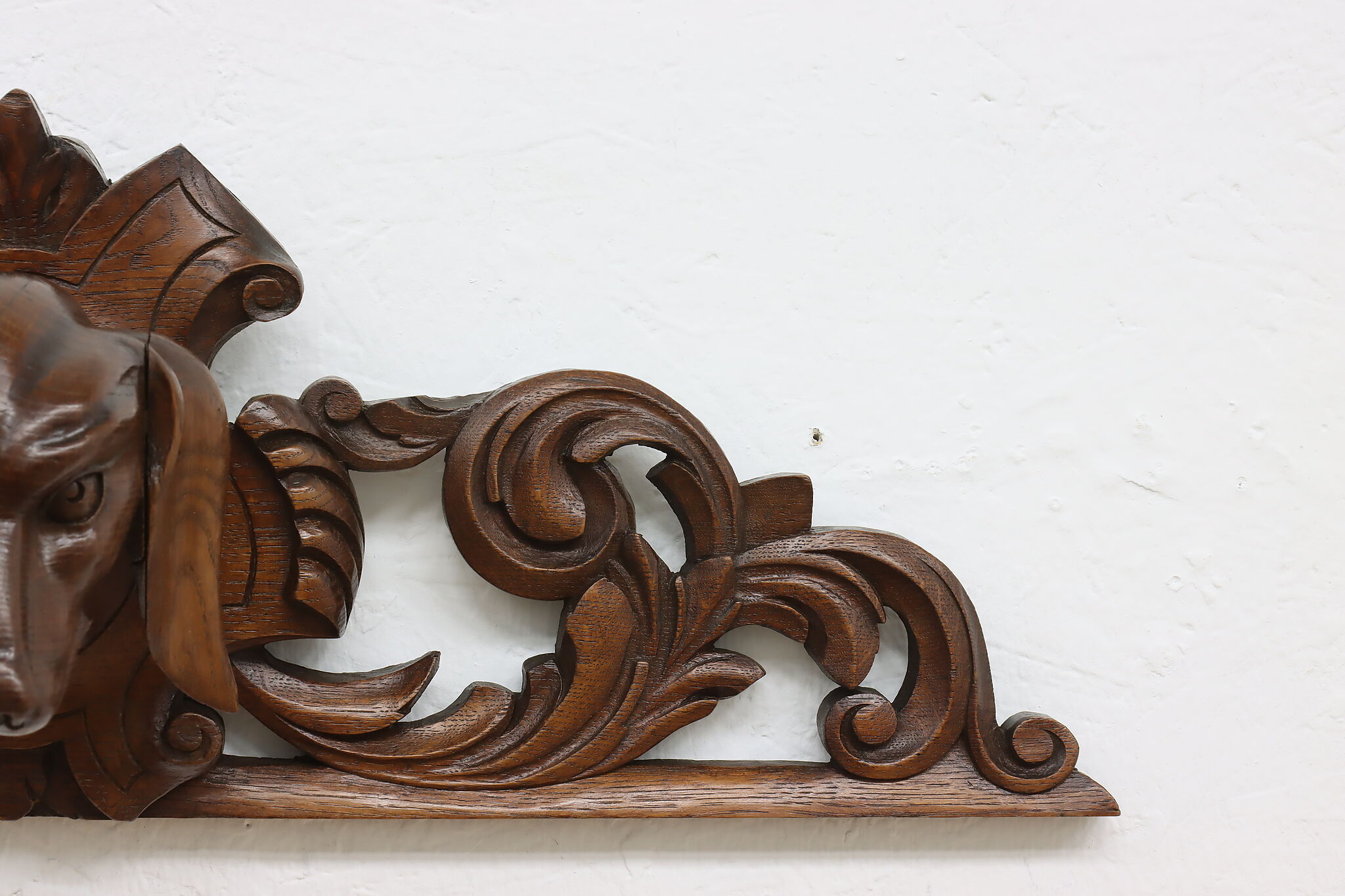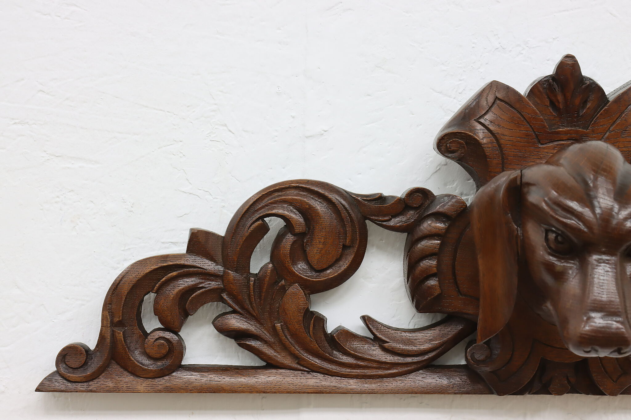 The hunting dog sculpture on this architectural salvage crest is the perfect compliment to a hunting cabin or lodge wall.