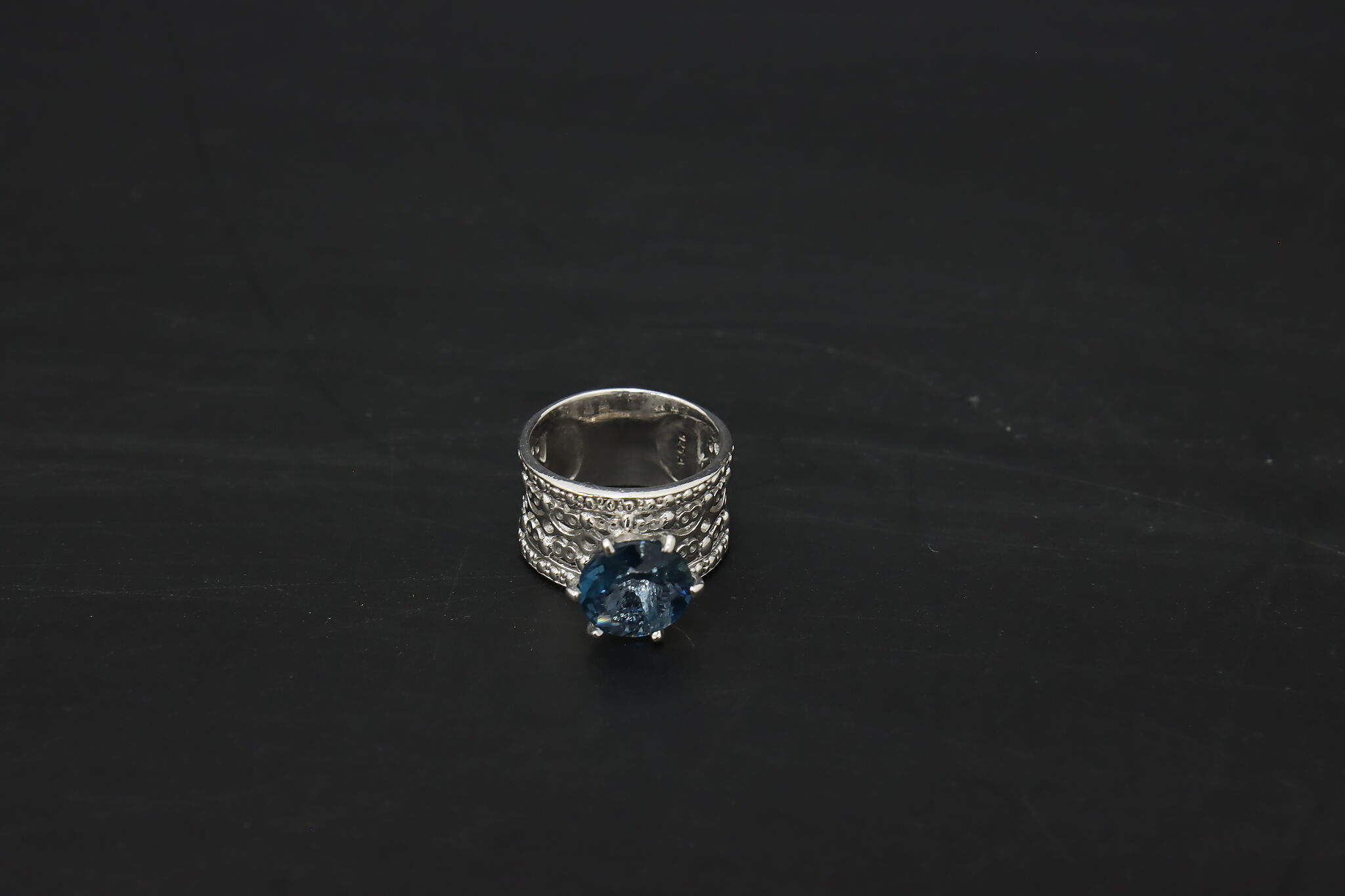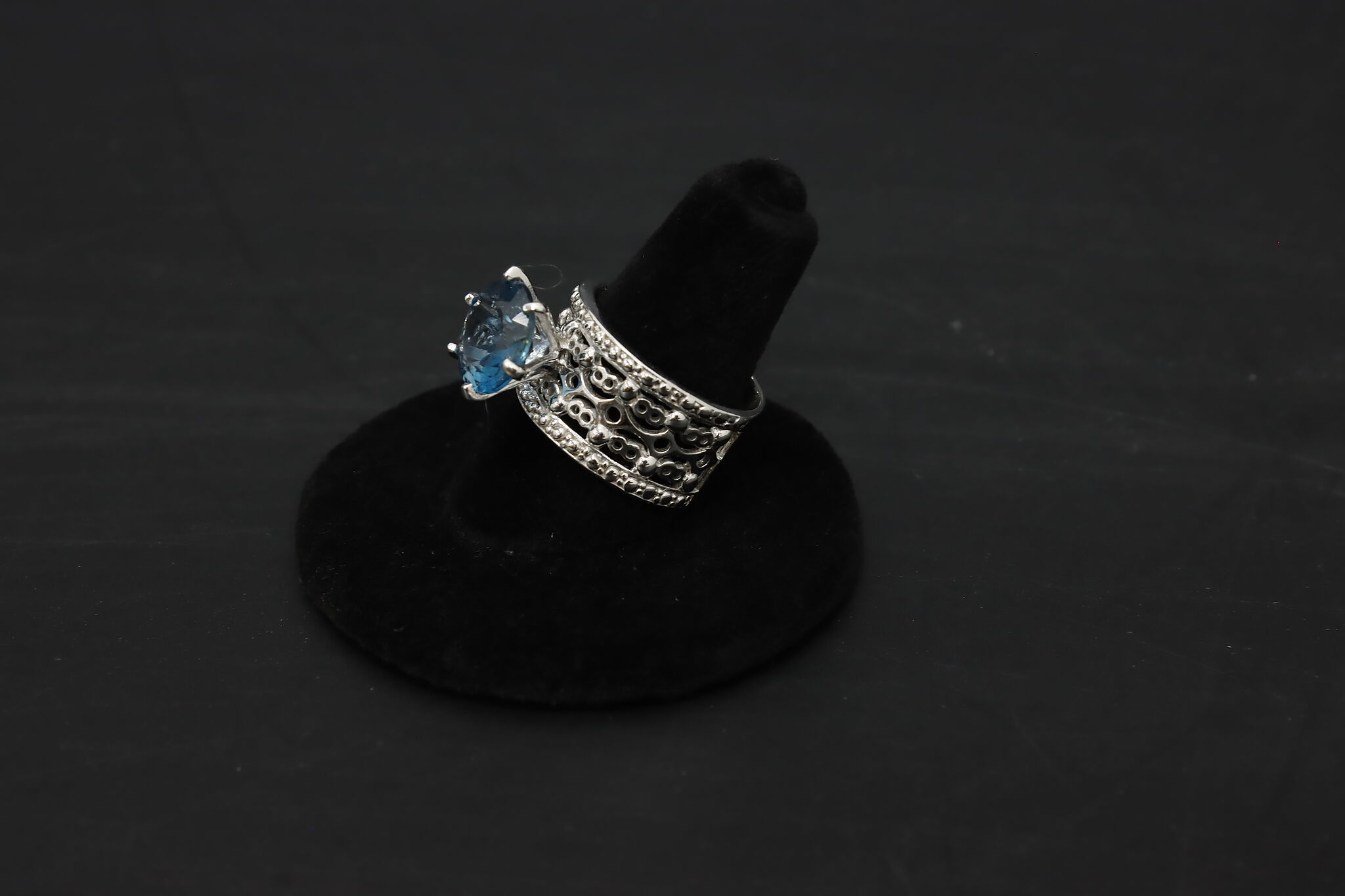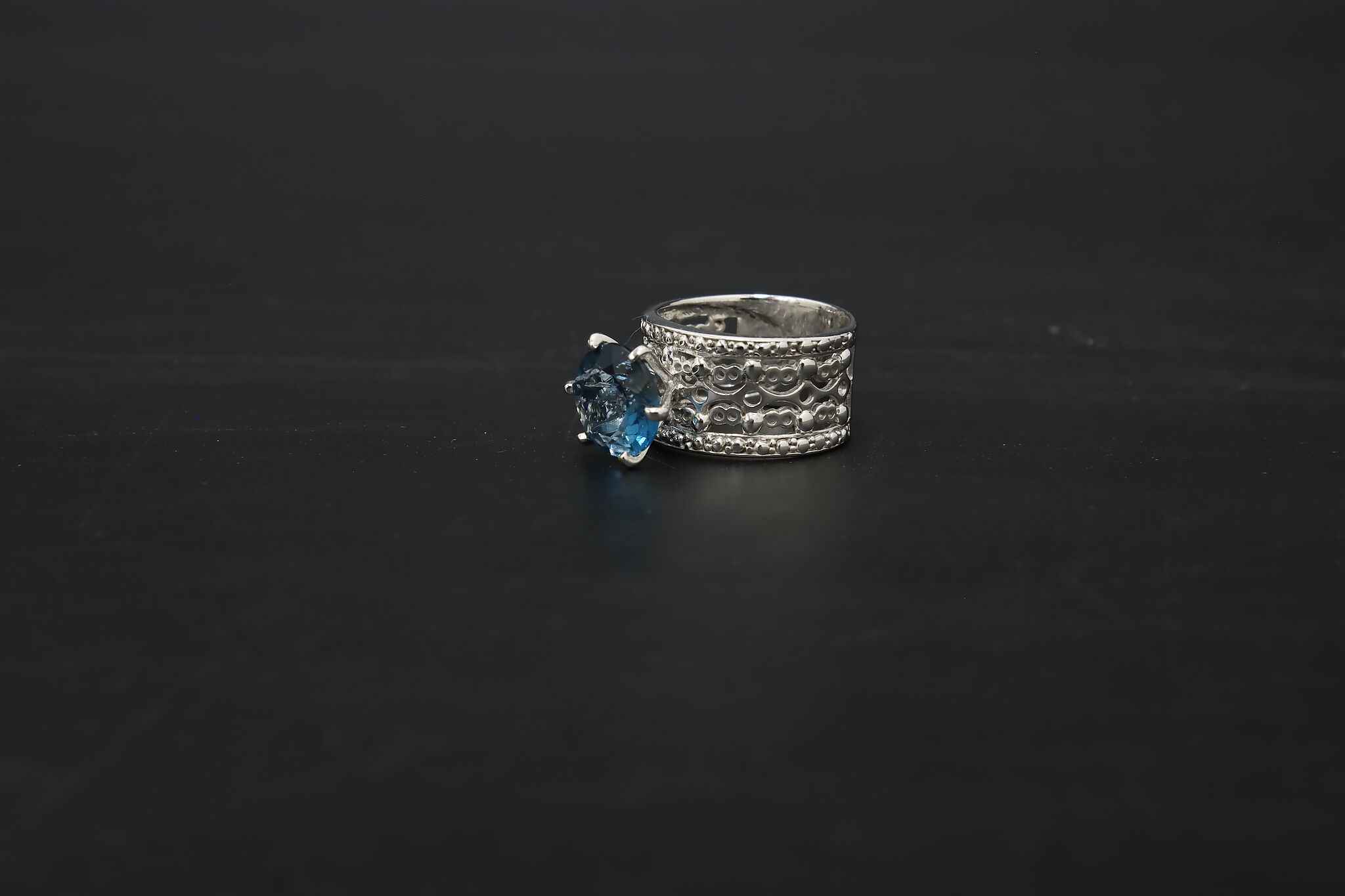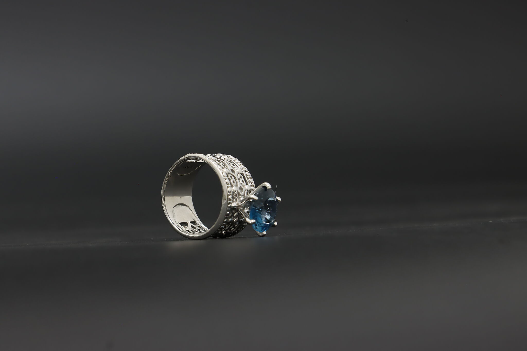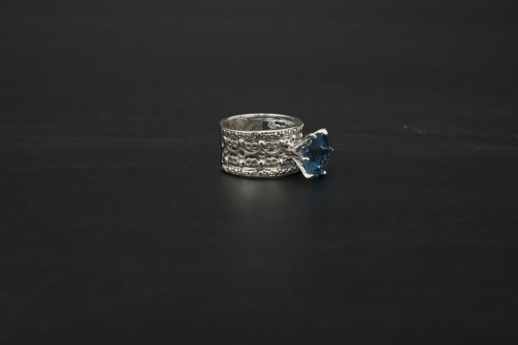Add a pop of color to your daily outfit with this ring and its beautiful blue cubic zirconia gemstone.