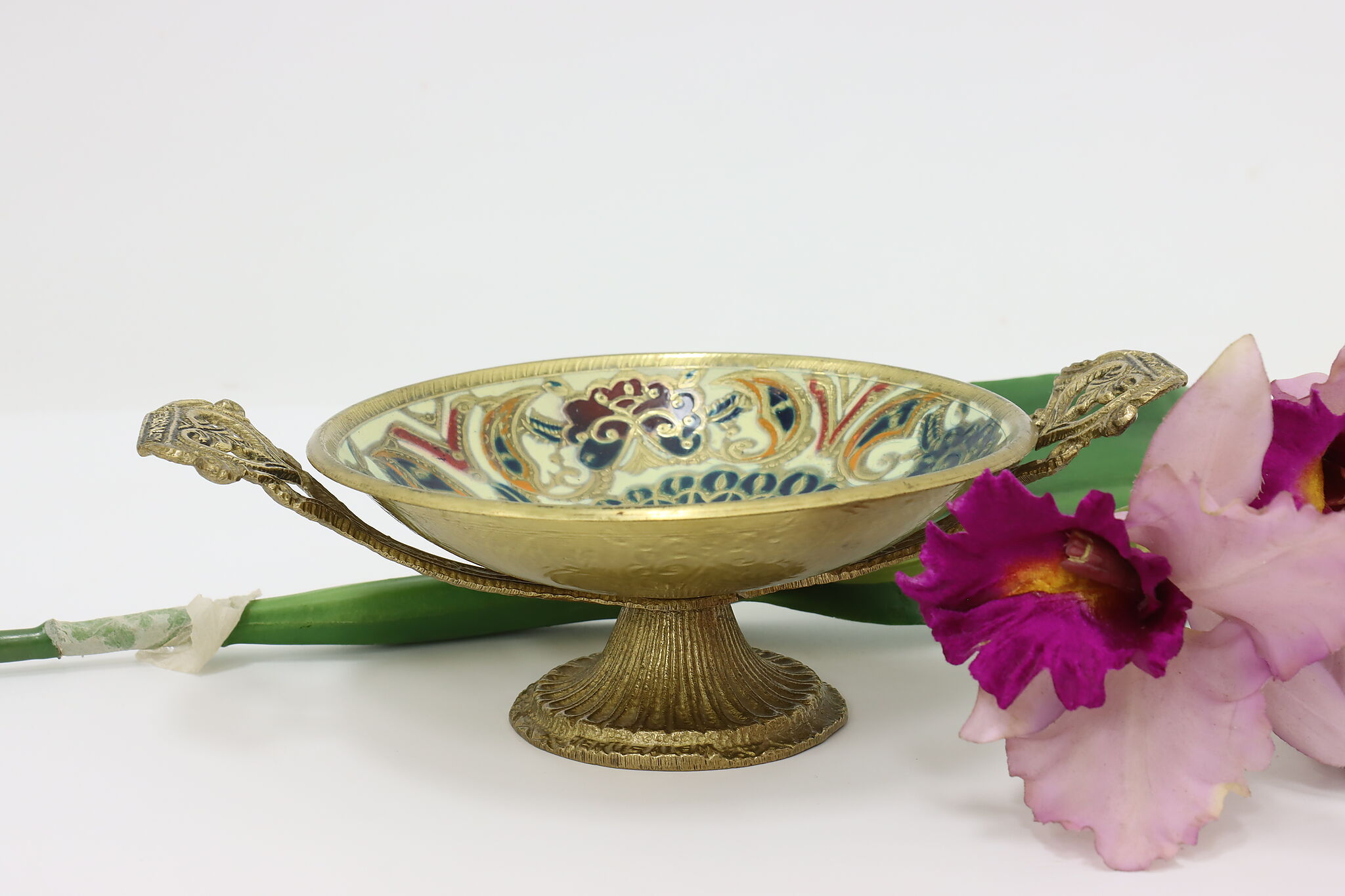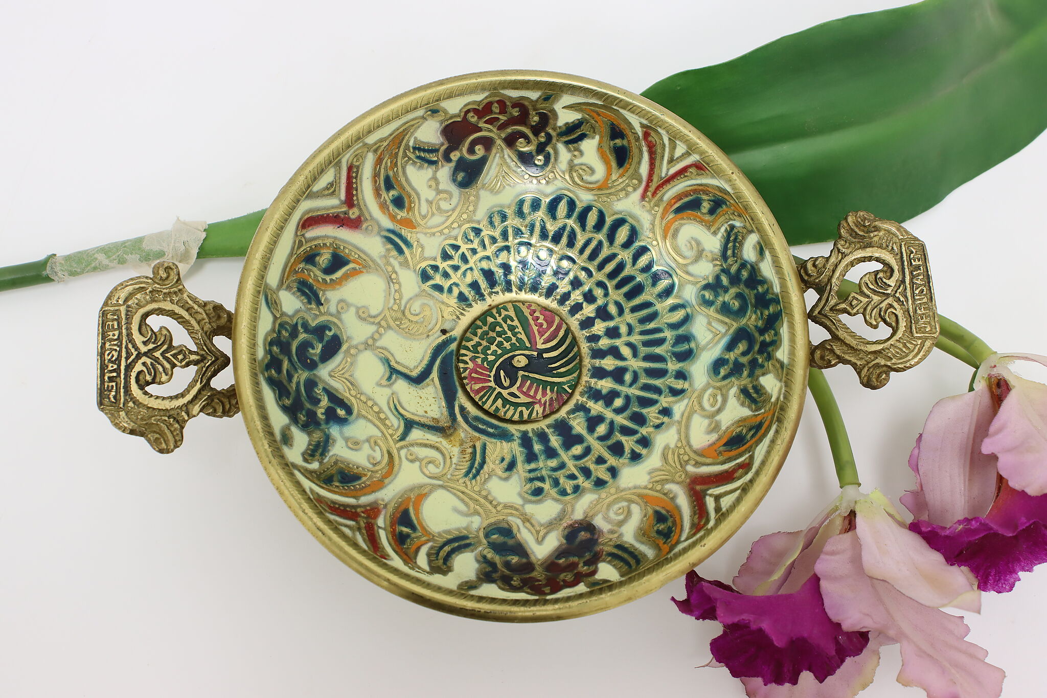 This beautiful tazza or jewelry dish has a hand-painted image of a peacock making it a darling gift for a loved one.