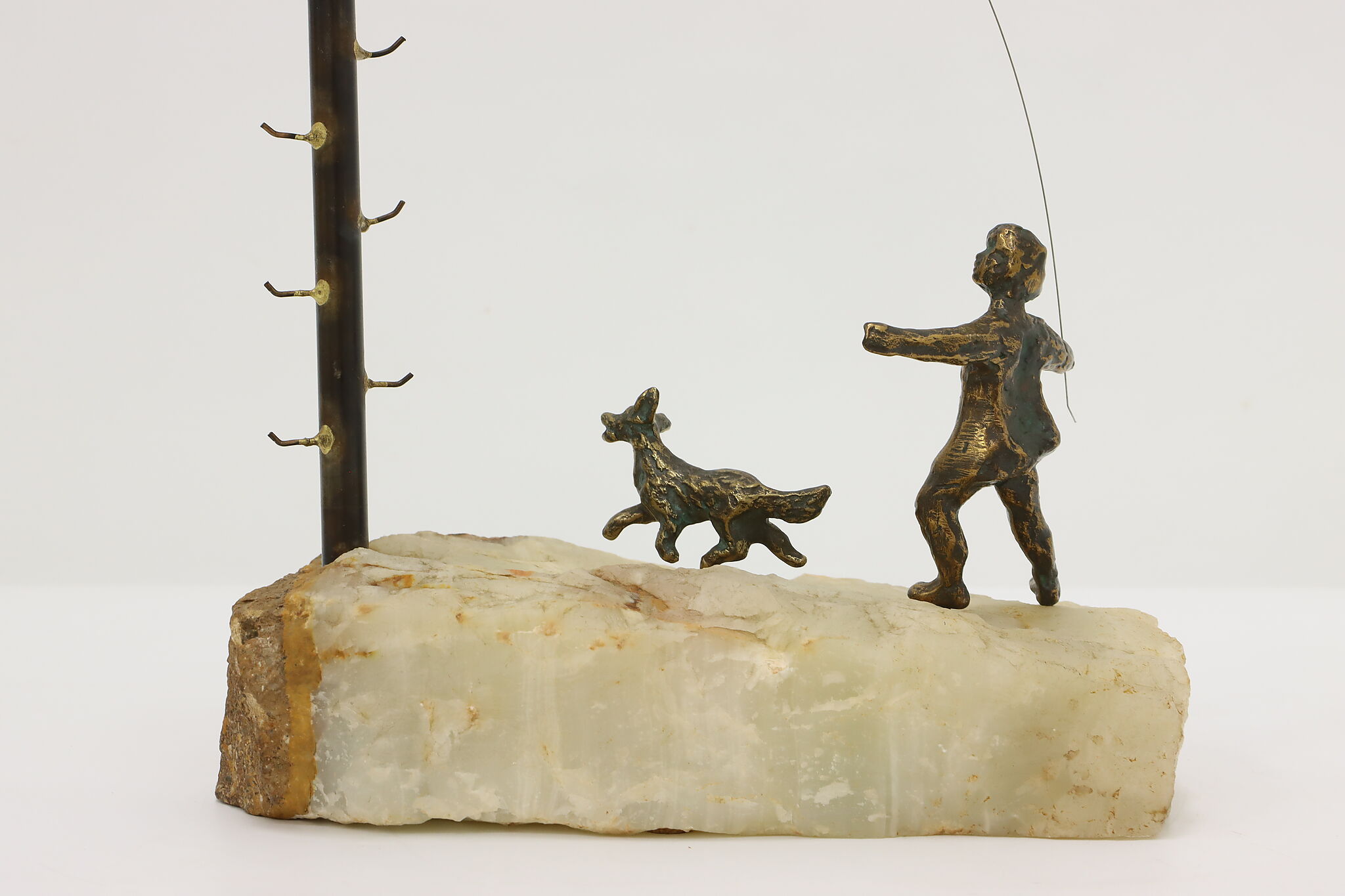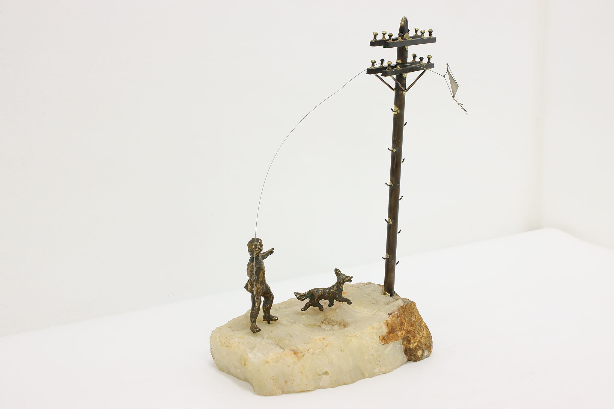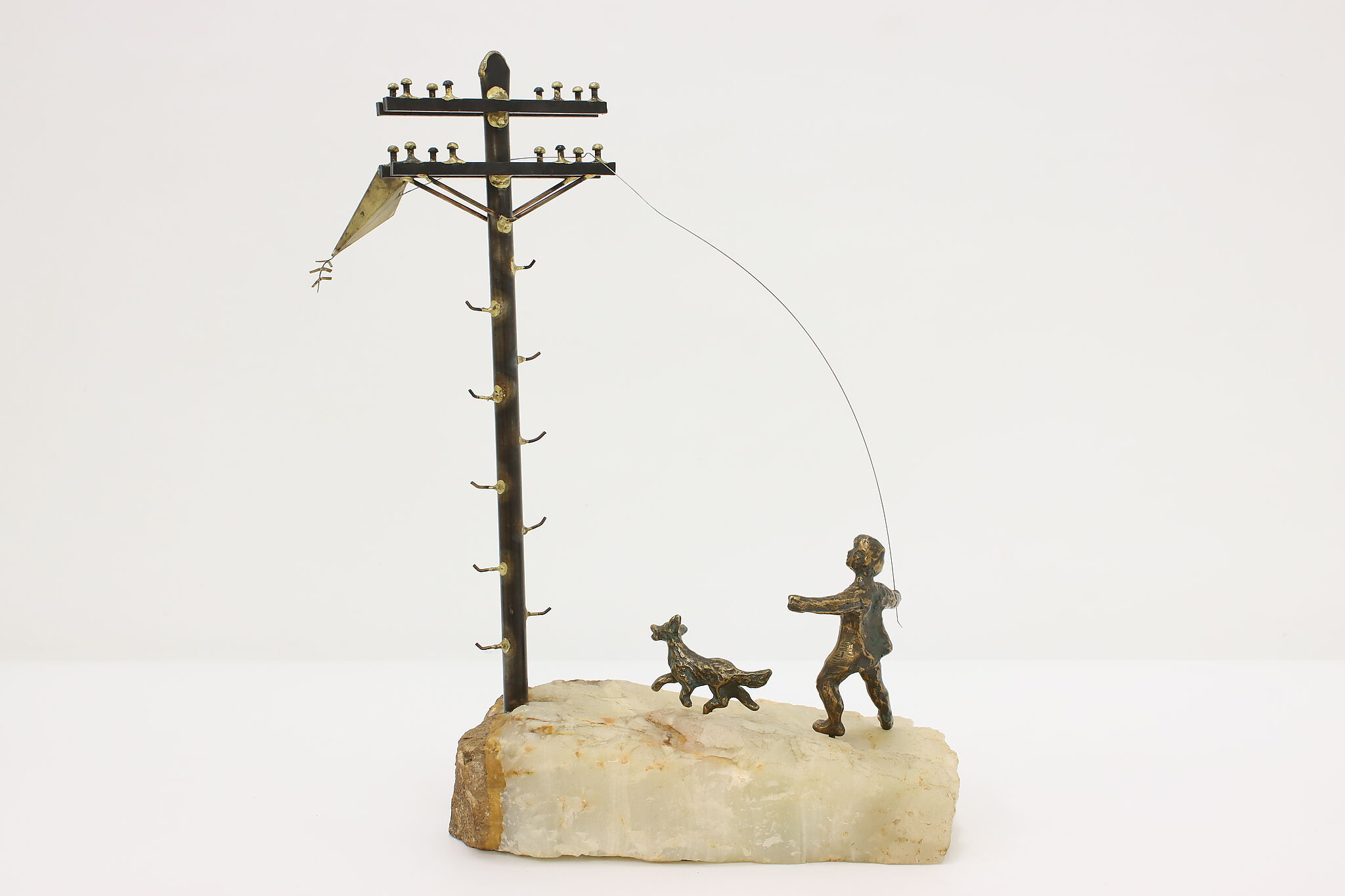 Let this charming sculpture help you remember childhood days of flying kites and chasing dogs!