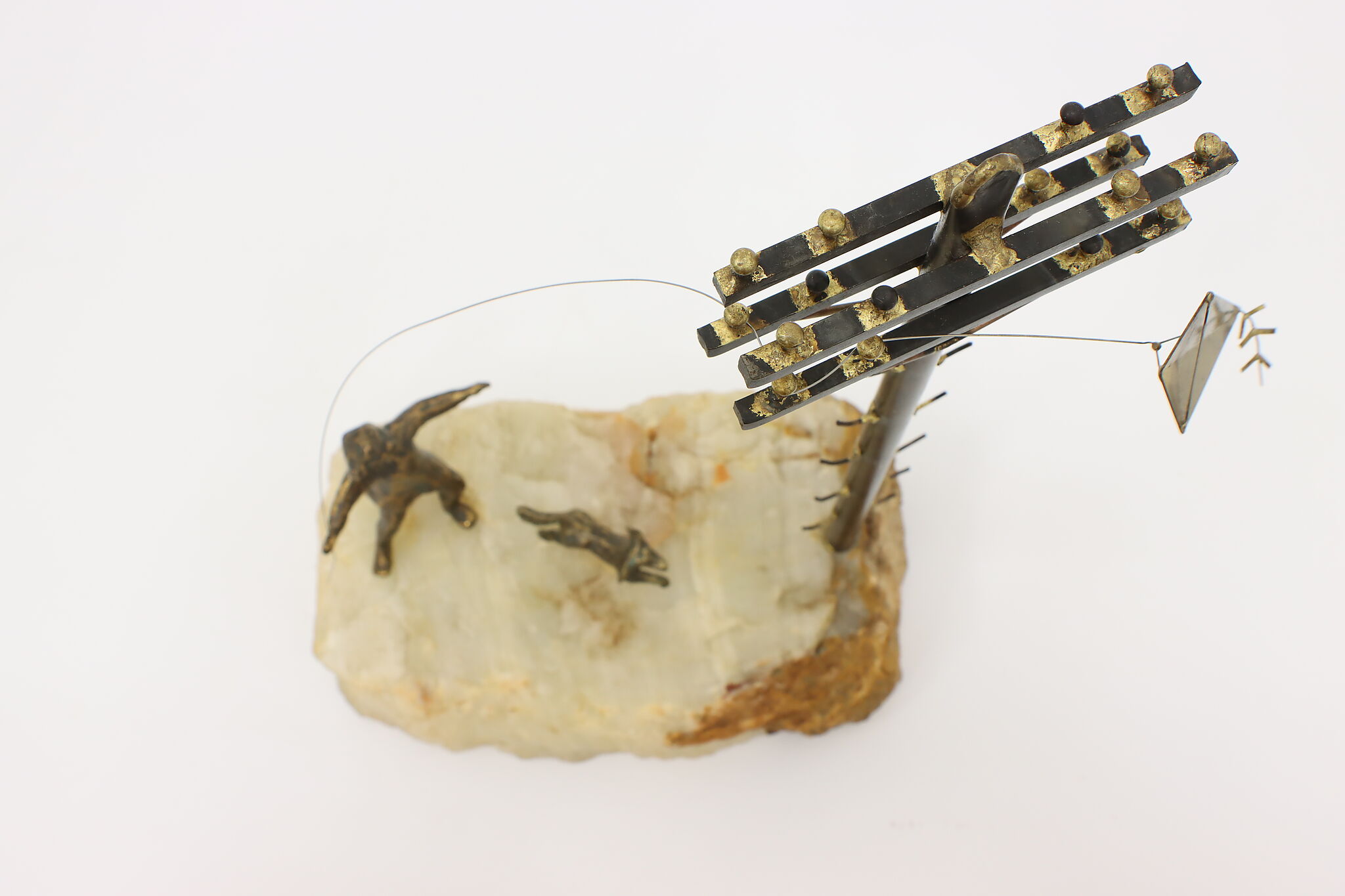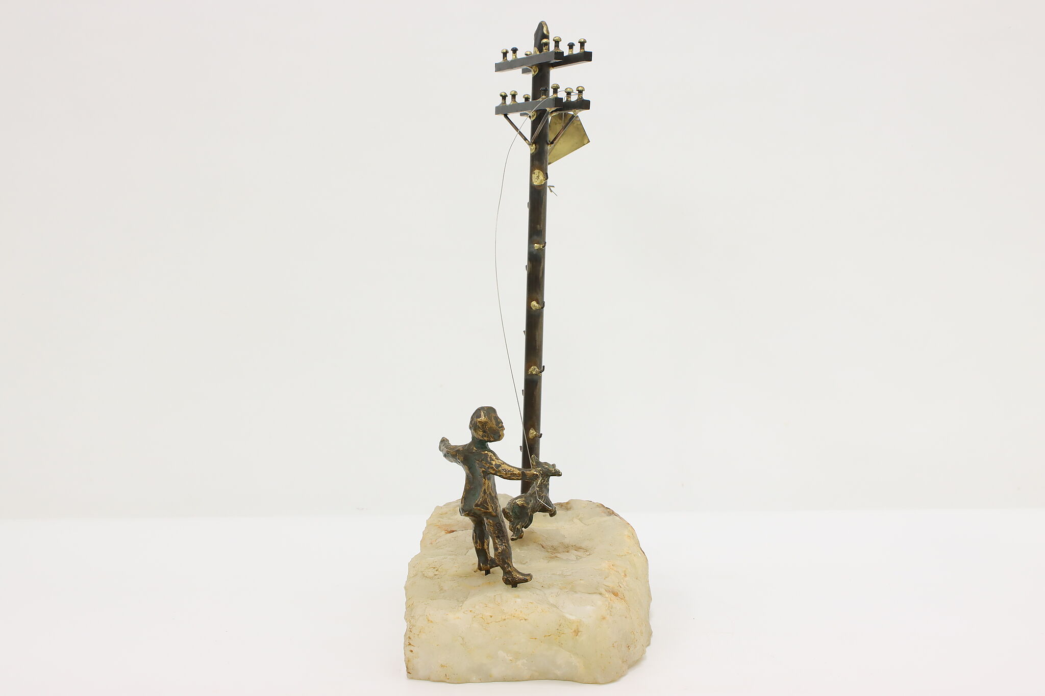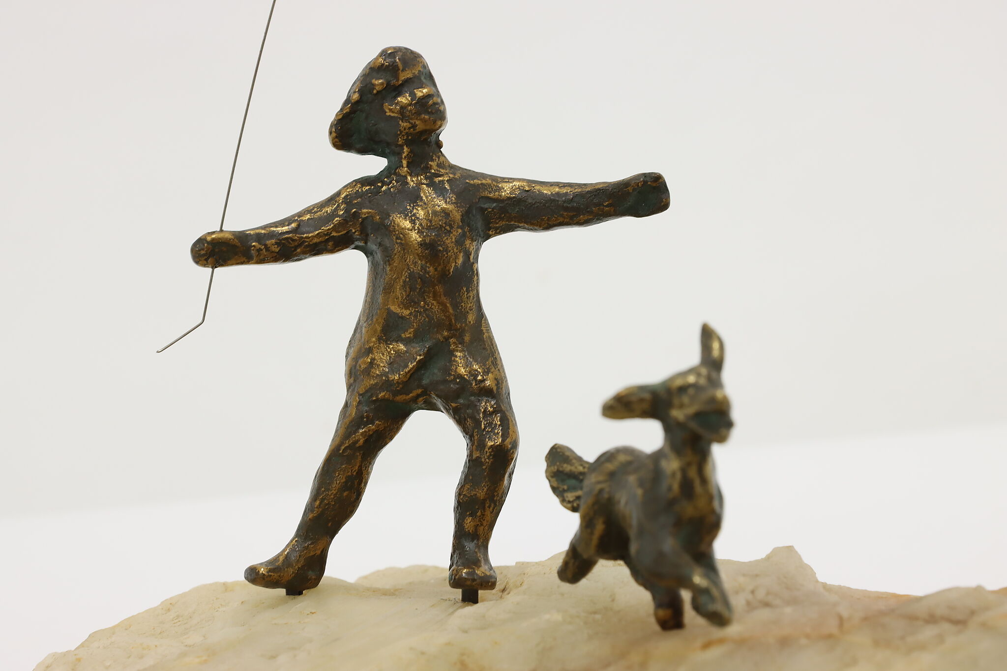 Let this charming sculpture help you remember childhood days of flying kites and chasing dogs!