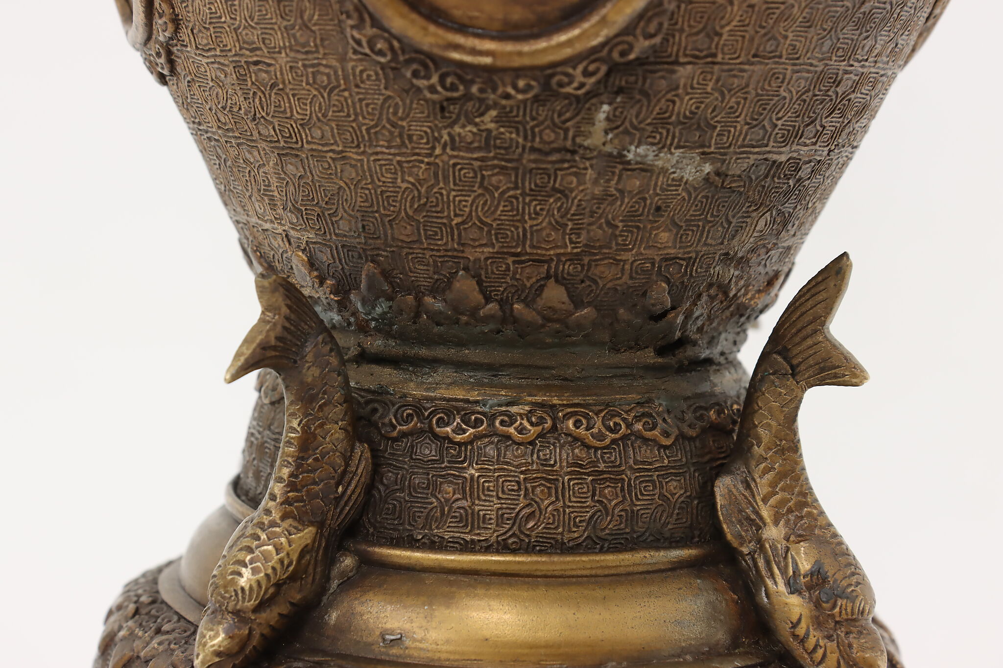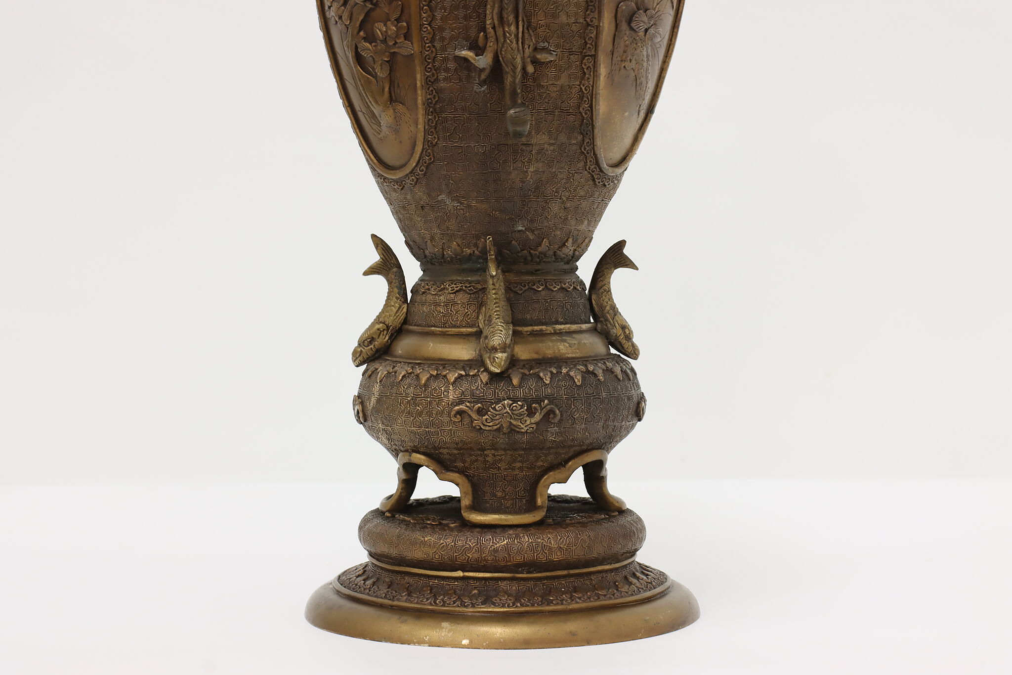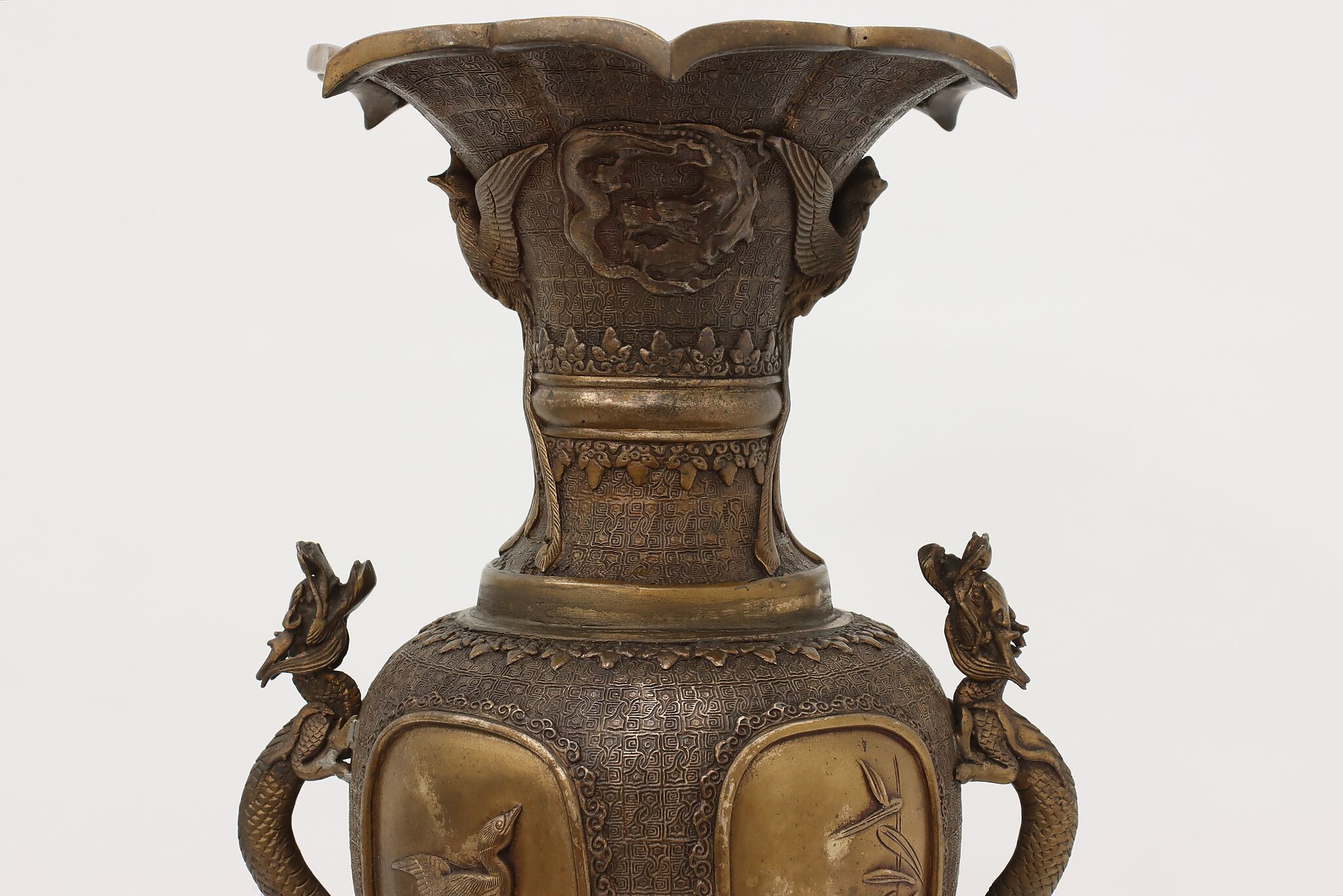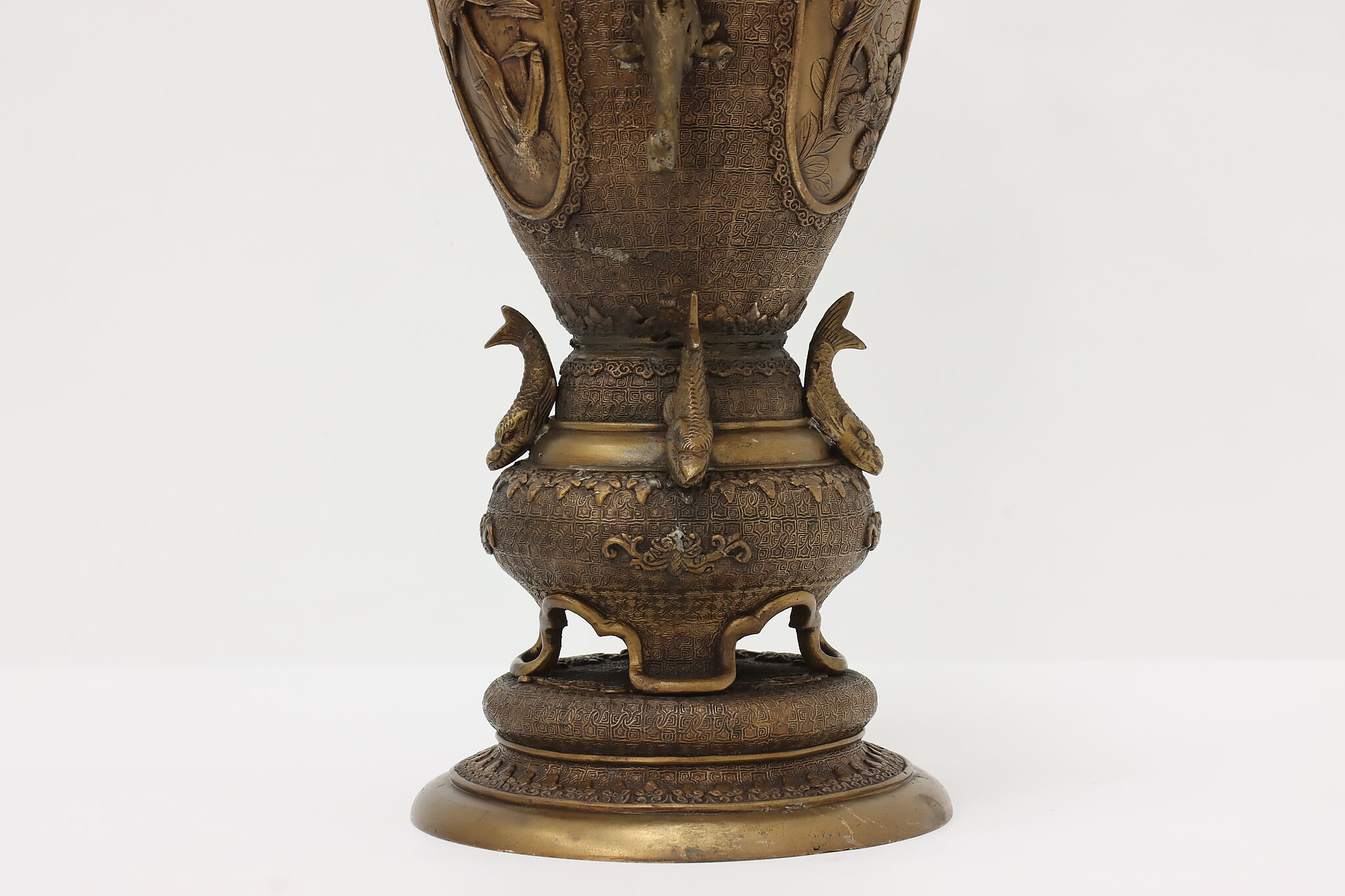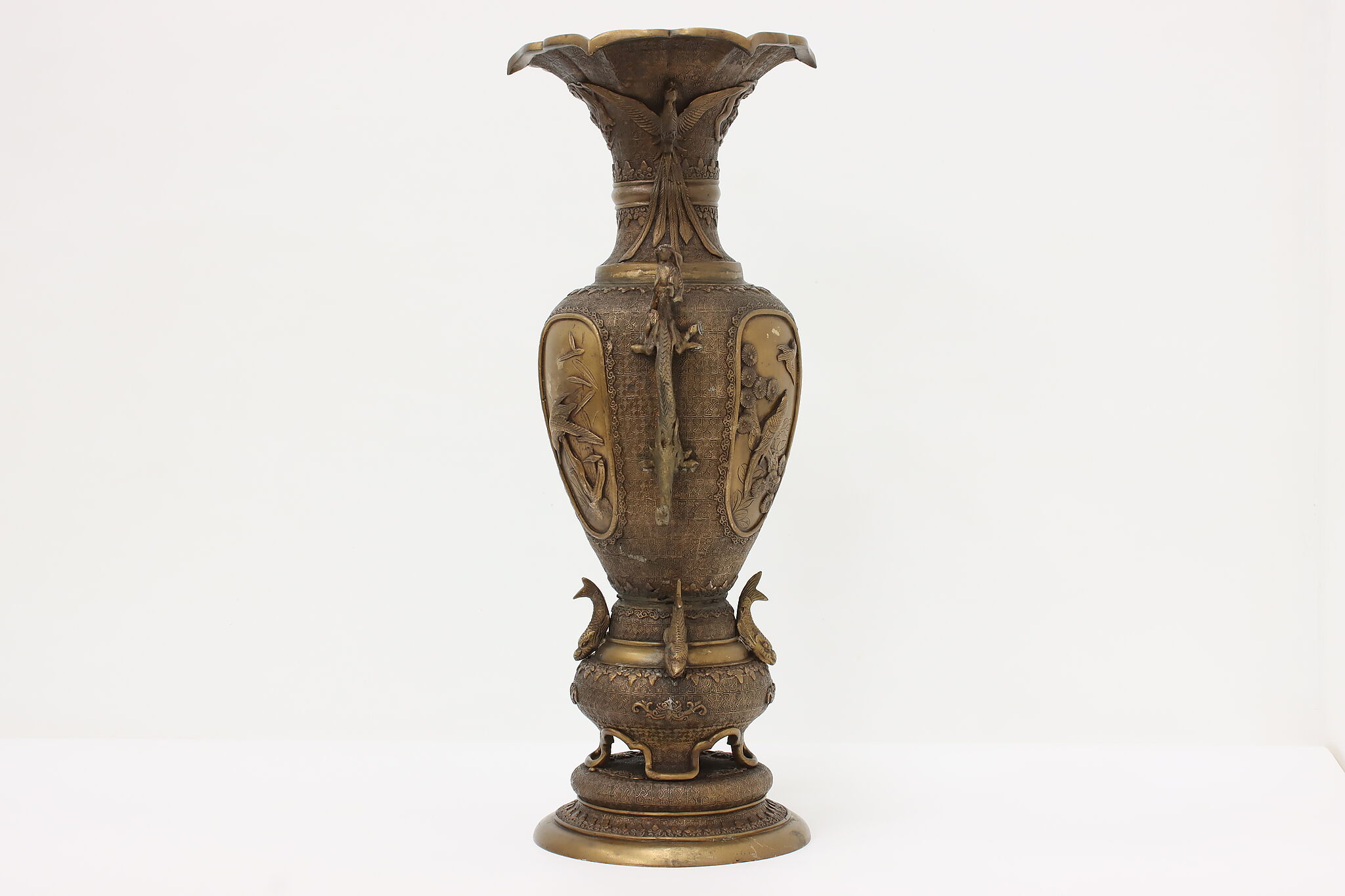 This gorgeous Meiji period flower vase has dragon, phoenix, and koi fish figures. In many Asian cultures, especially Japanese, these creatures hold immense power. Dragons and phoenixes are protectors, while koi fish represent perseverance and luck.