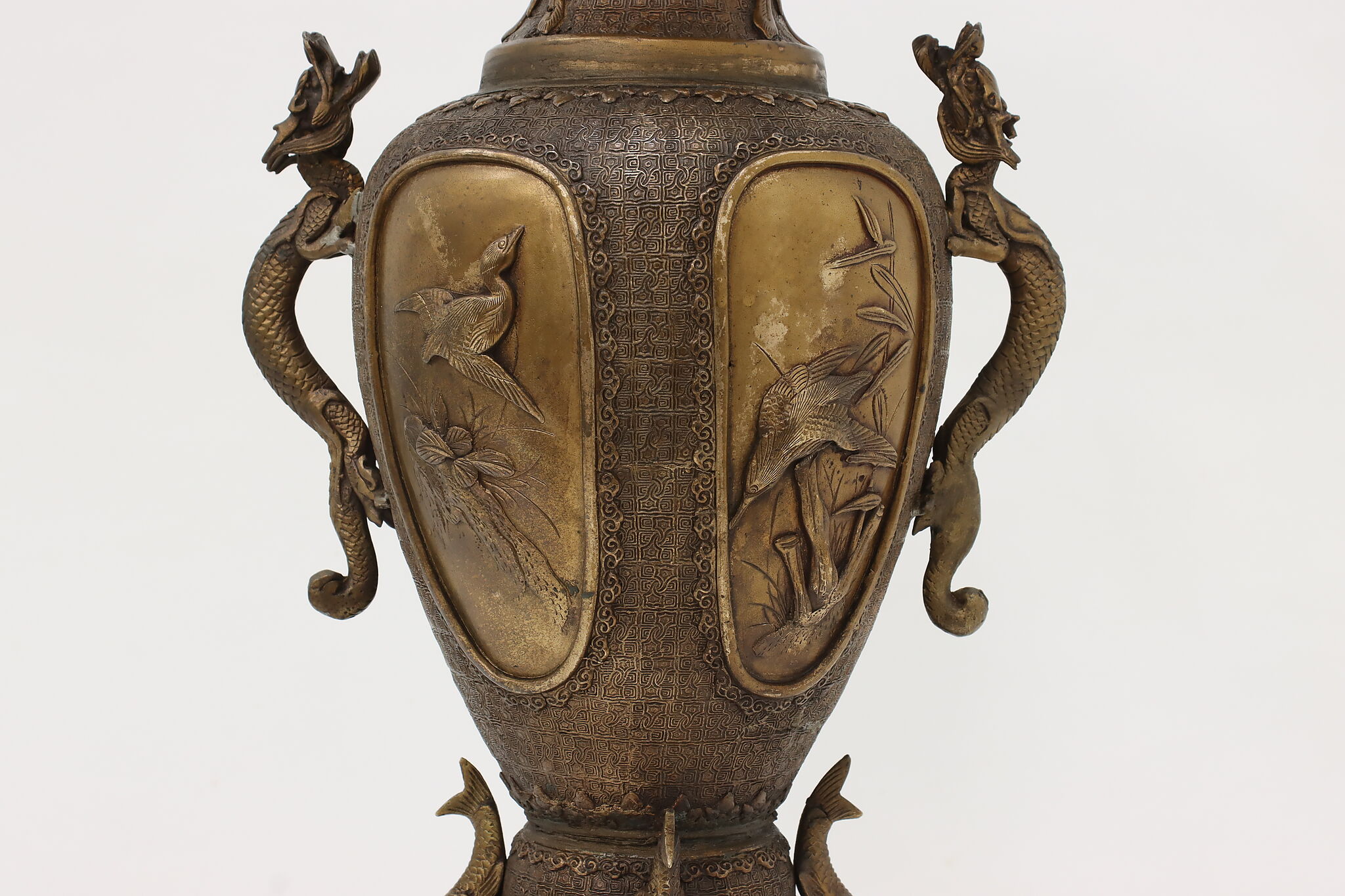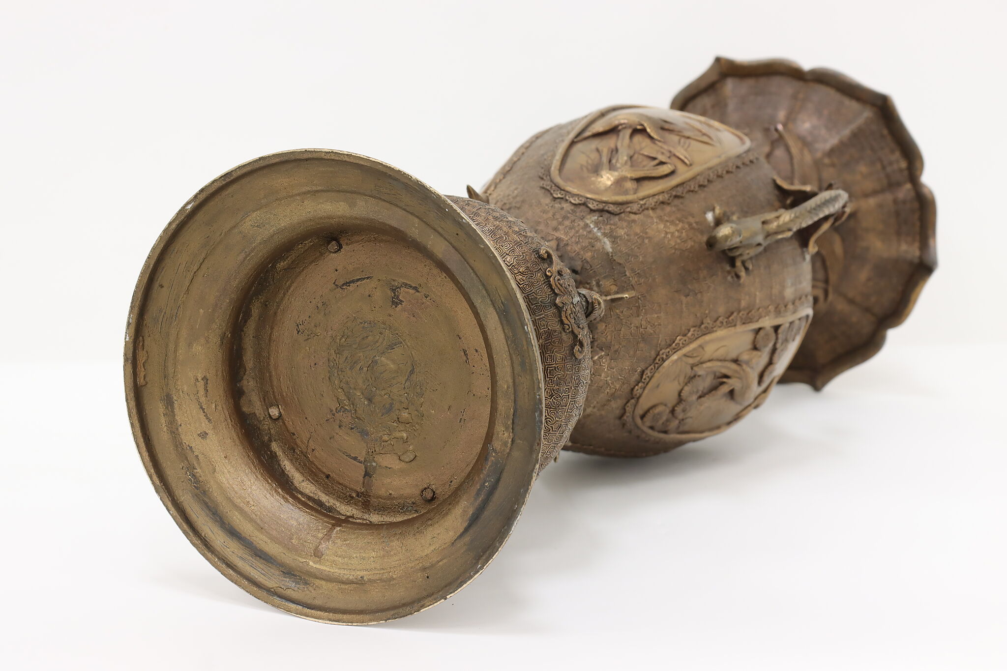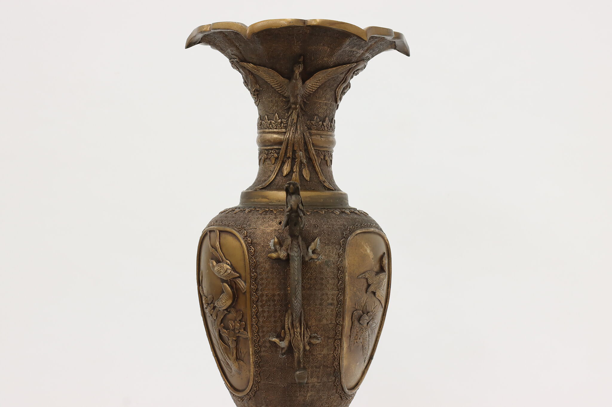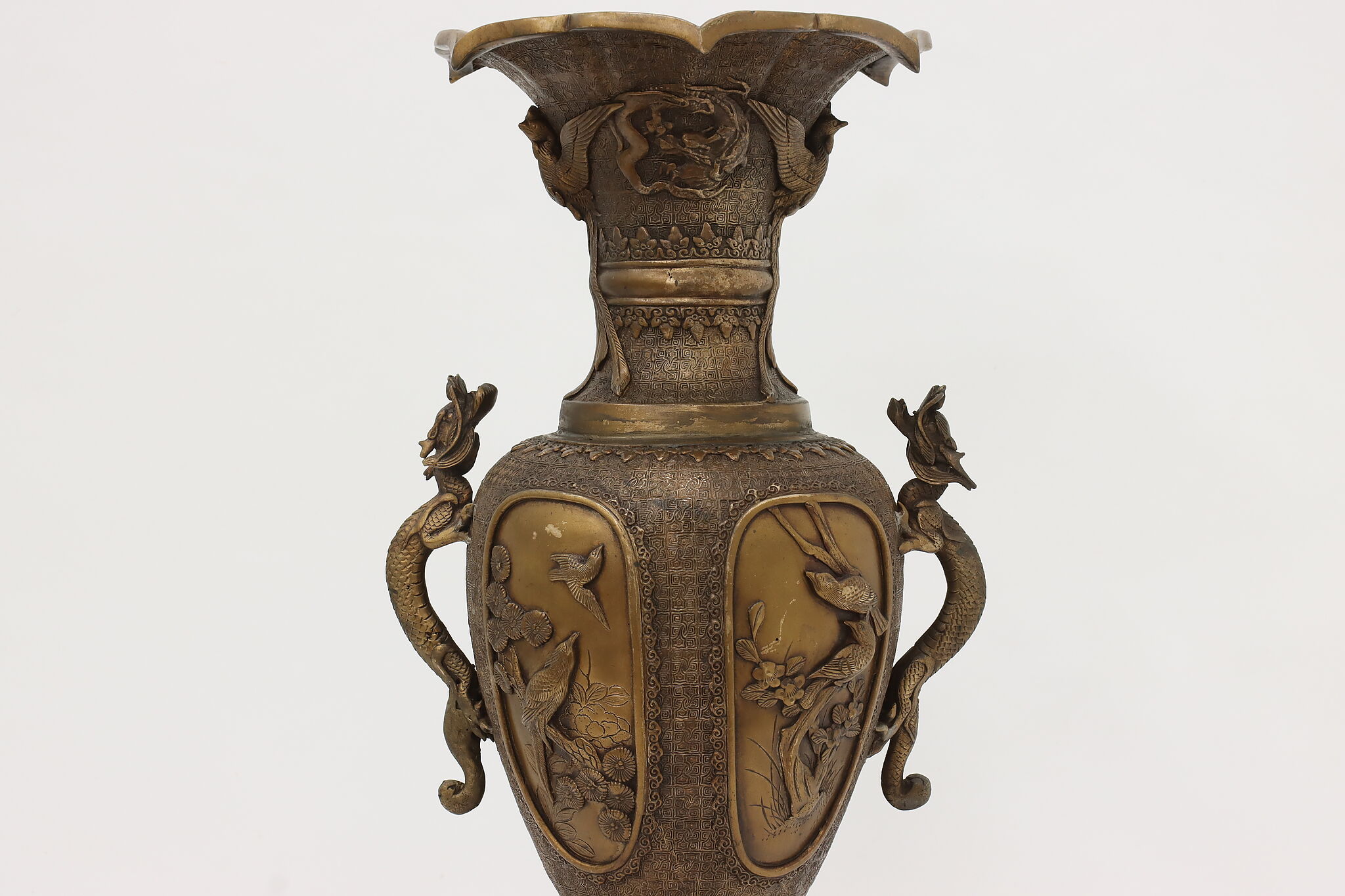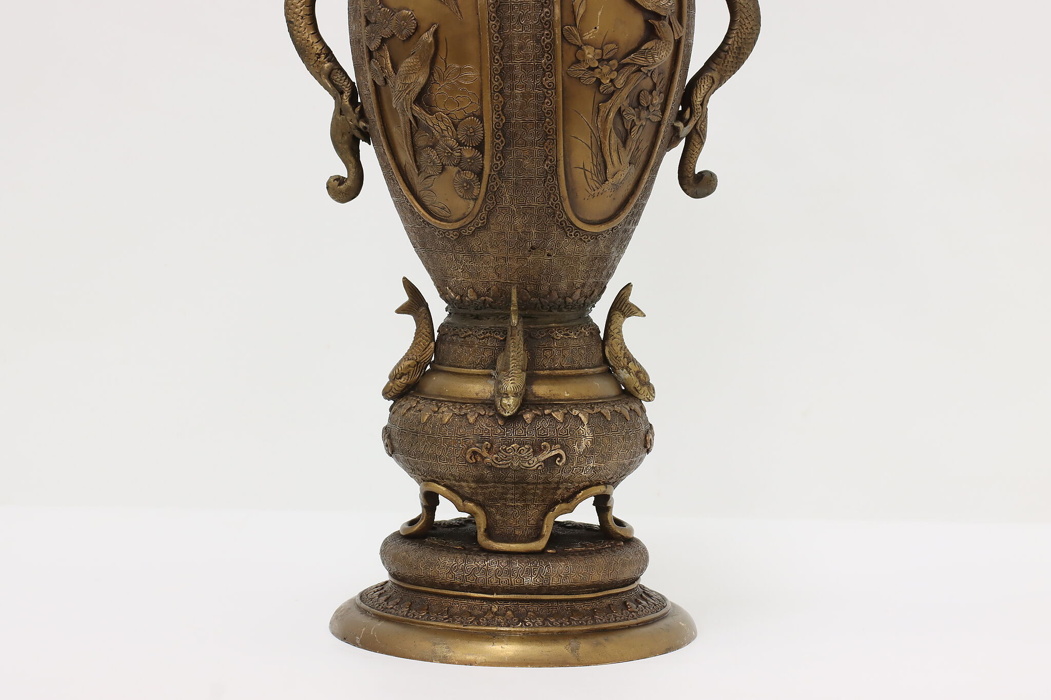 This gorgeous Meiji period flower vase has dragon, phoenix, and koi fish figures. In many Asian cultures, especially Japanese, these creatures hold immense power. Dragons and phoenixes are protectors, while koi fish represent perseverance and luck.