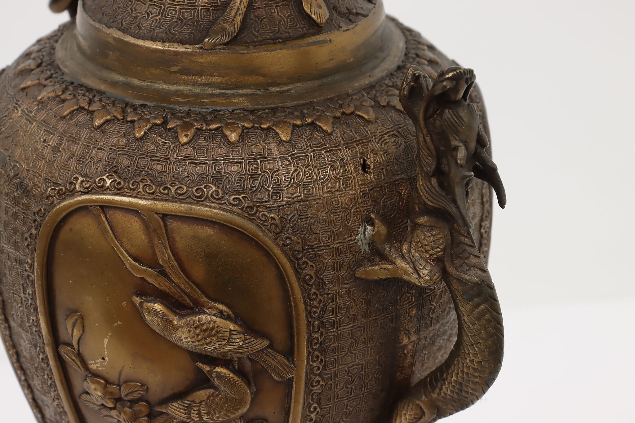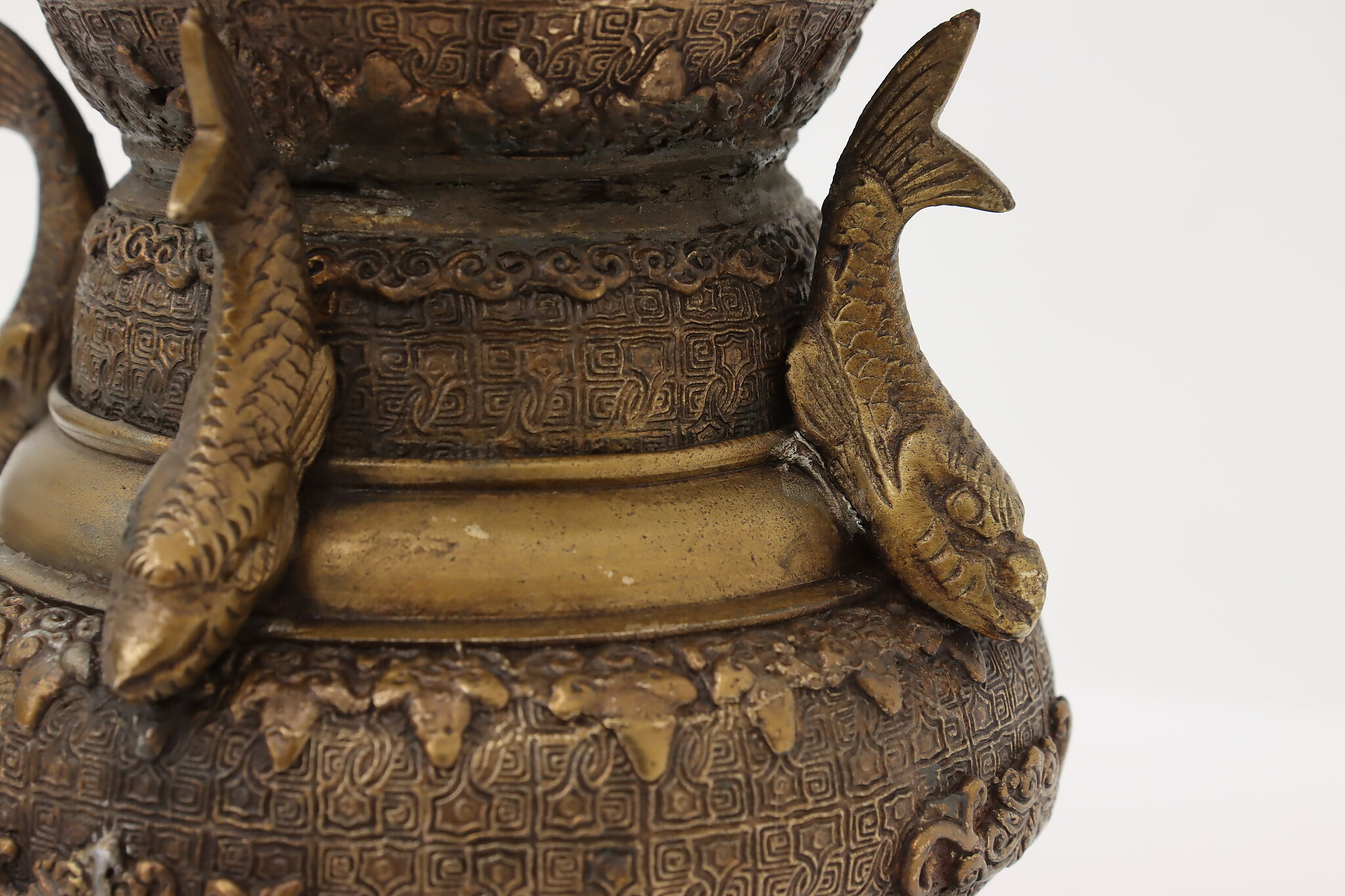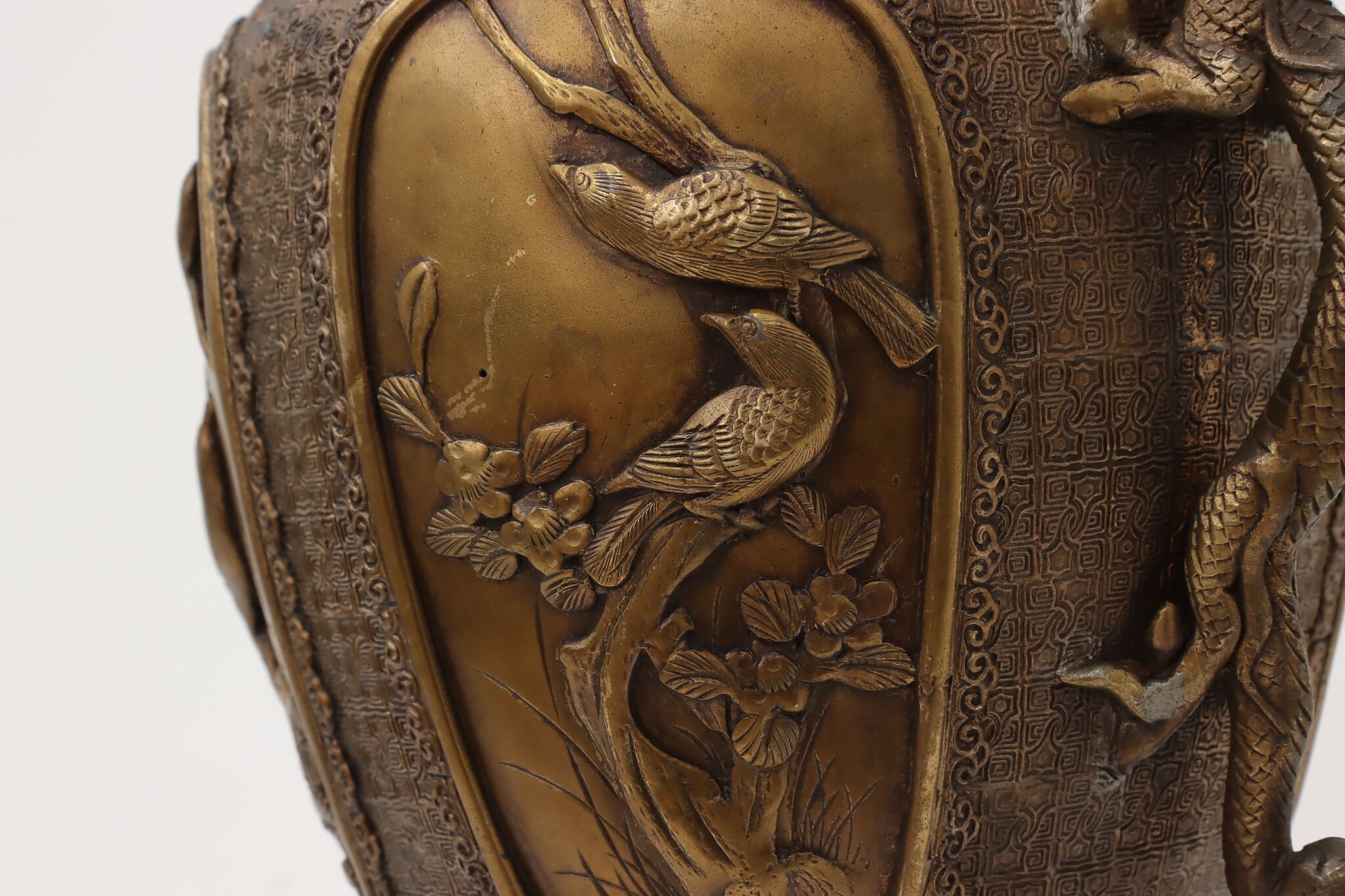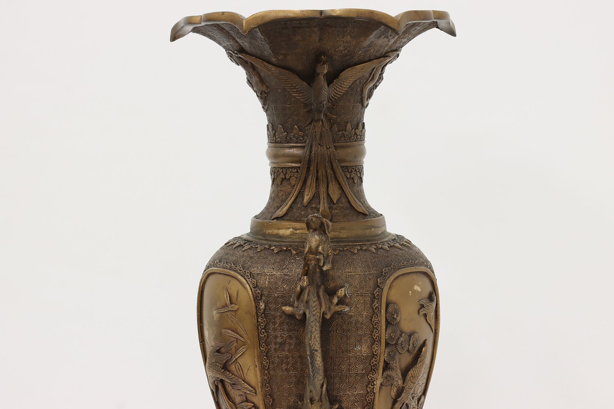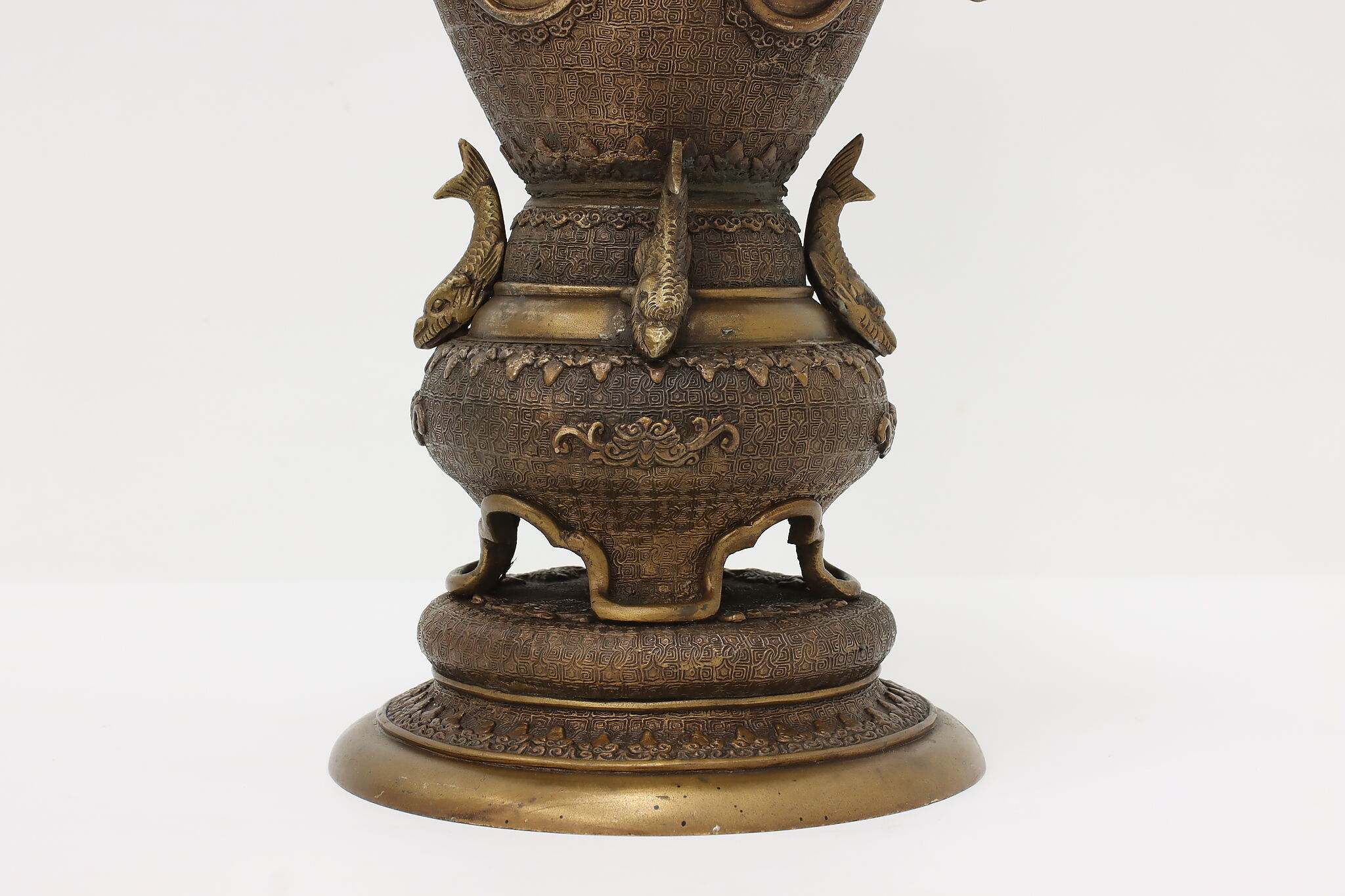This gorgeous Meiji period flower vase has dragon, phoenix, and koi fish figures. In many Asian cultures, especially Japanese, these creatures hold immense power. Dragons and phoenixes are protectors, while koi fish represent perseverance and luck.