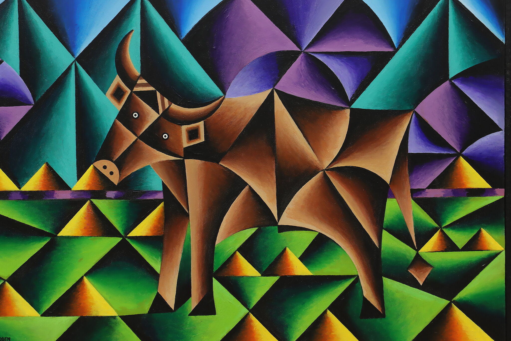 The wonderfully talented Wisconsin artist, Bruce Bodden, created this vibrant painting of a bull.