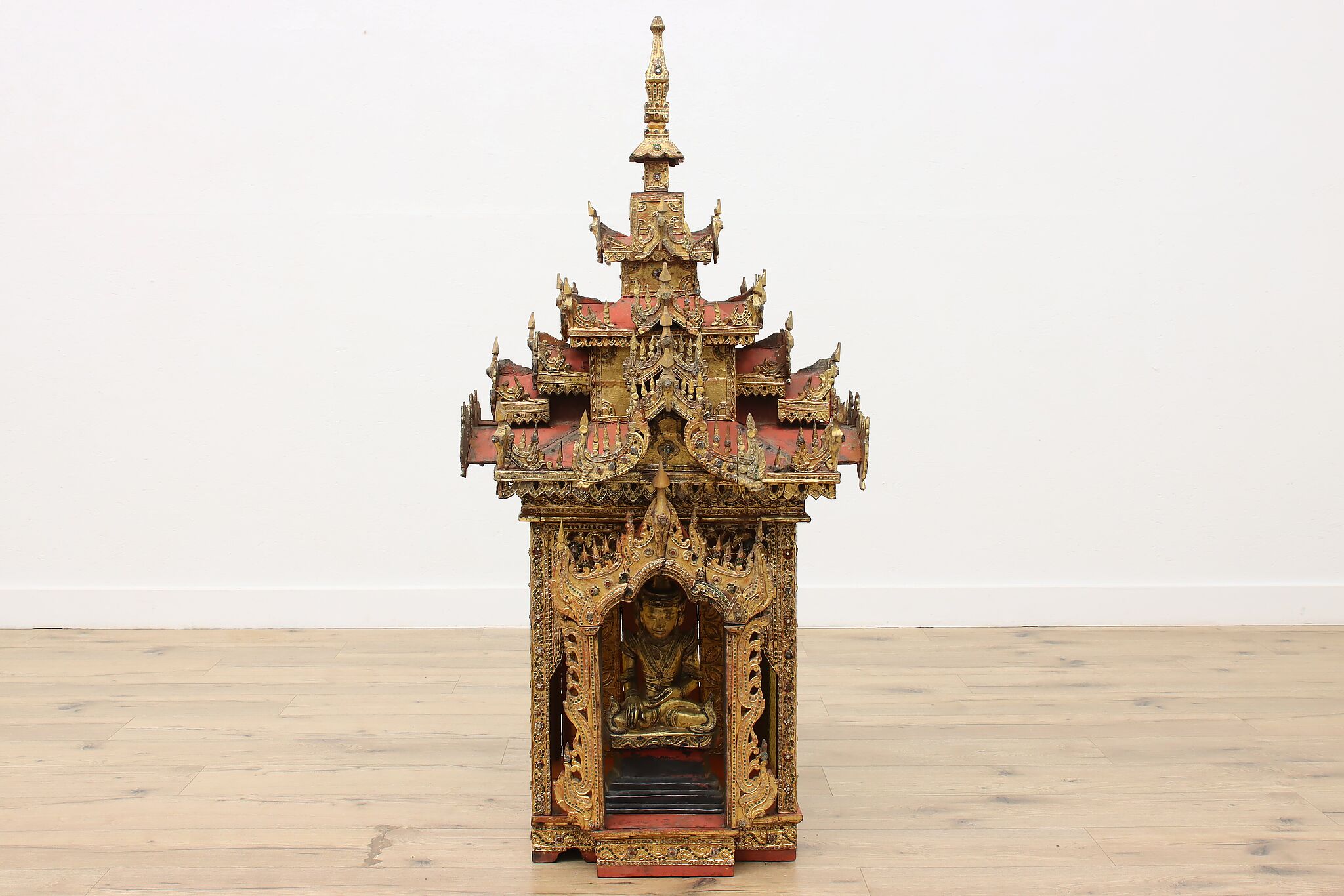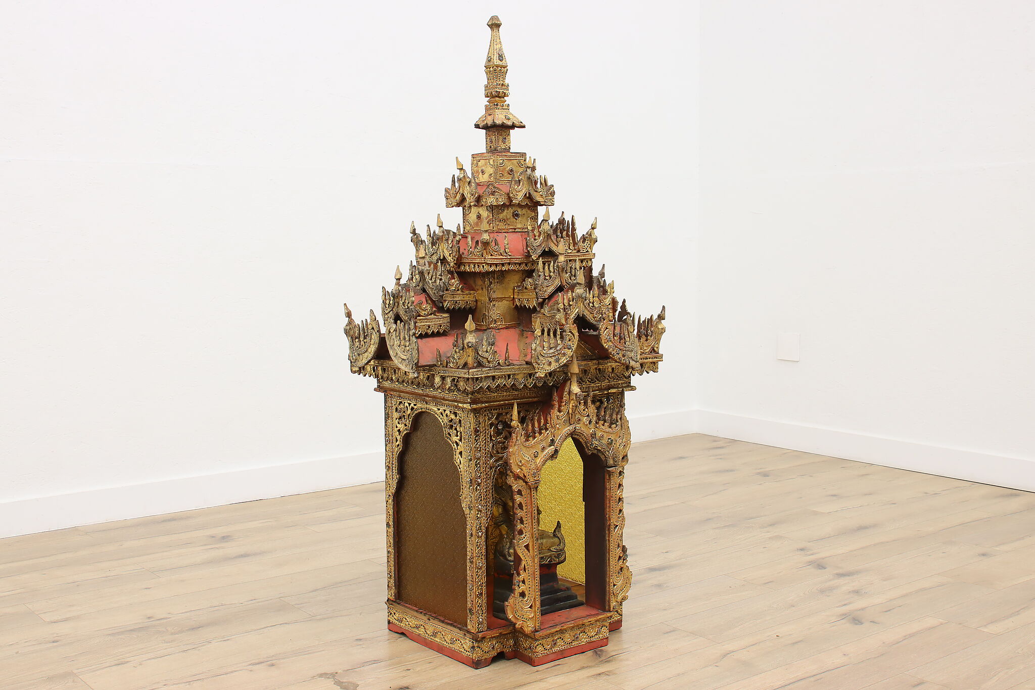 Originating in Burma, now Myanmar, this gorgeous throne or shrine is an important piece in Buddhist religion and would be a stunning addition to your home.